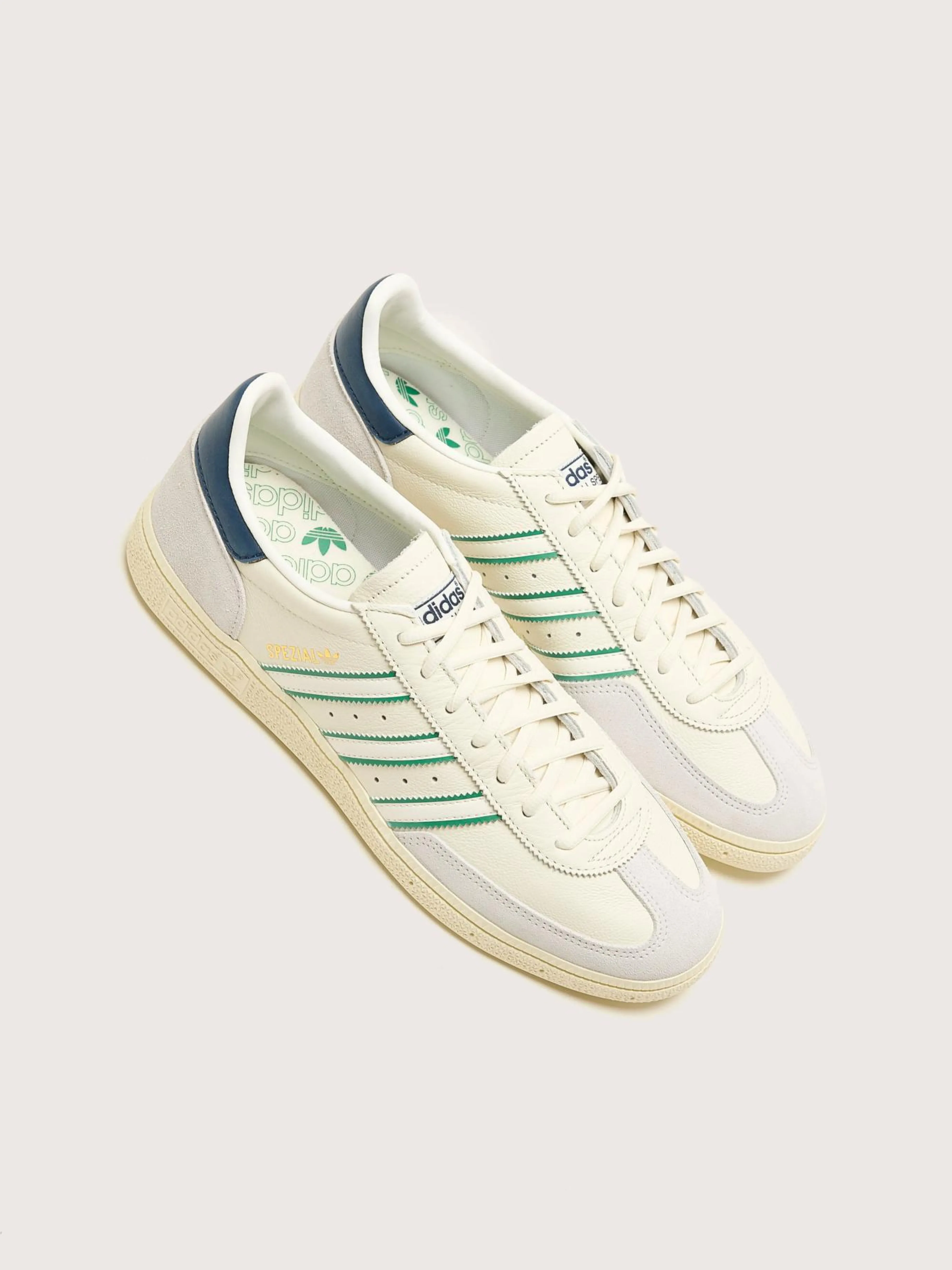 De low-profile Adidas Handball Spezial sneakers hebben een premium suède bovenwerk, opvallende details en een T-neus.