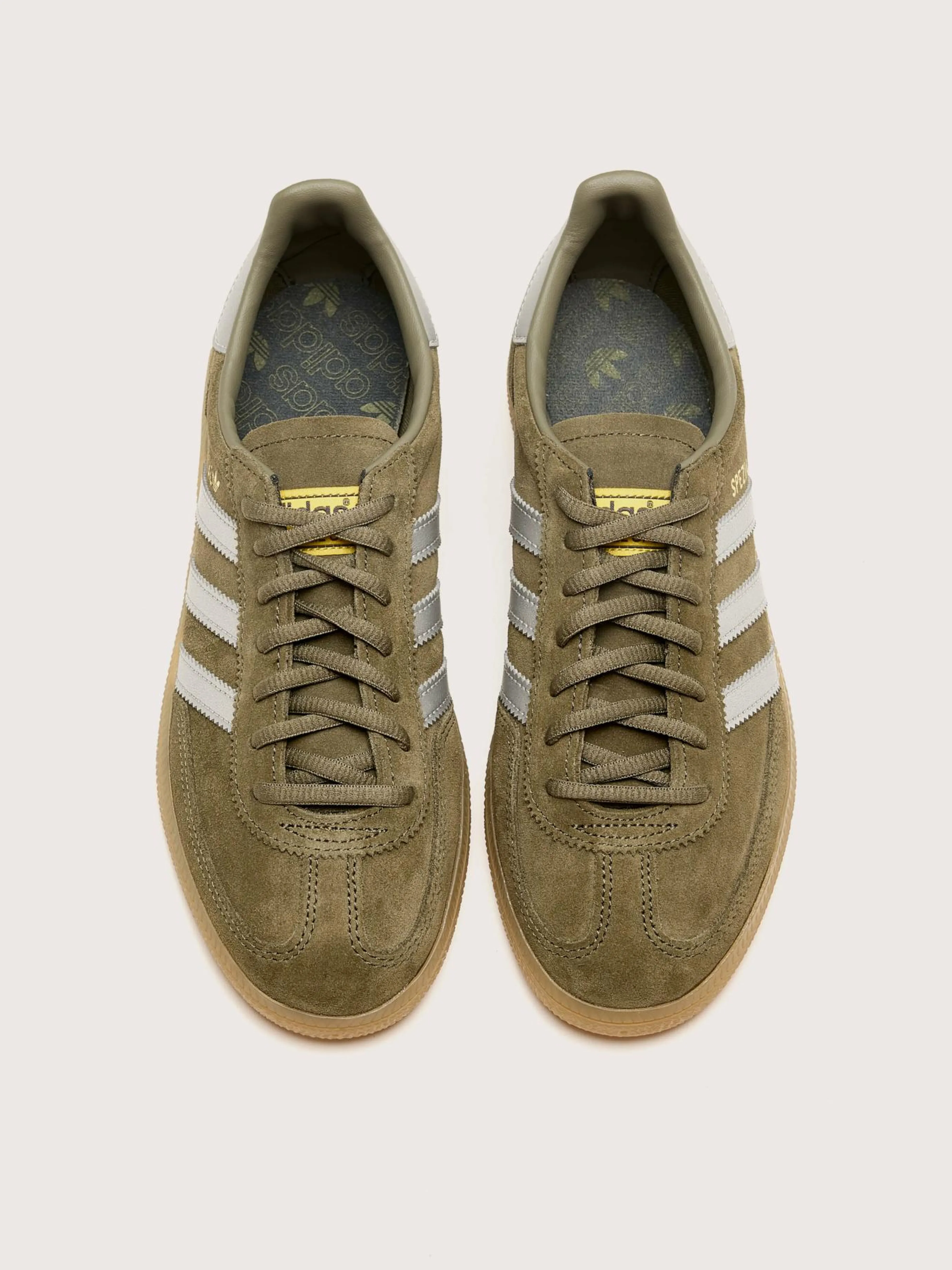 De low-profile Adidas Handball Spezial sneakers hebben een premium suède bovenwerk, opvallende details en een T-neus.