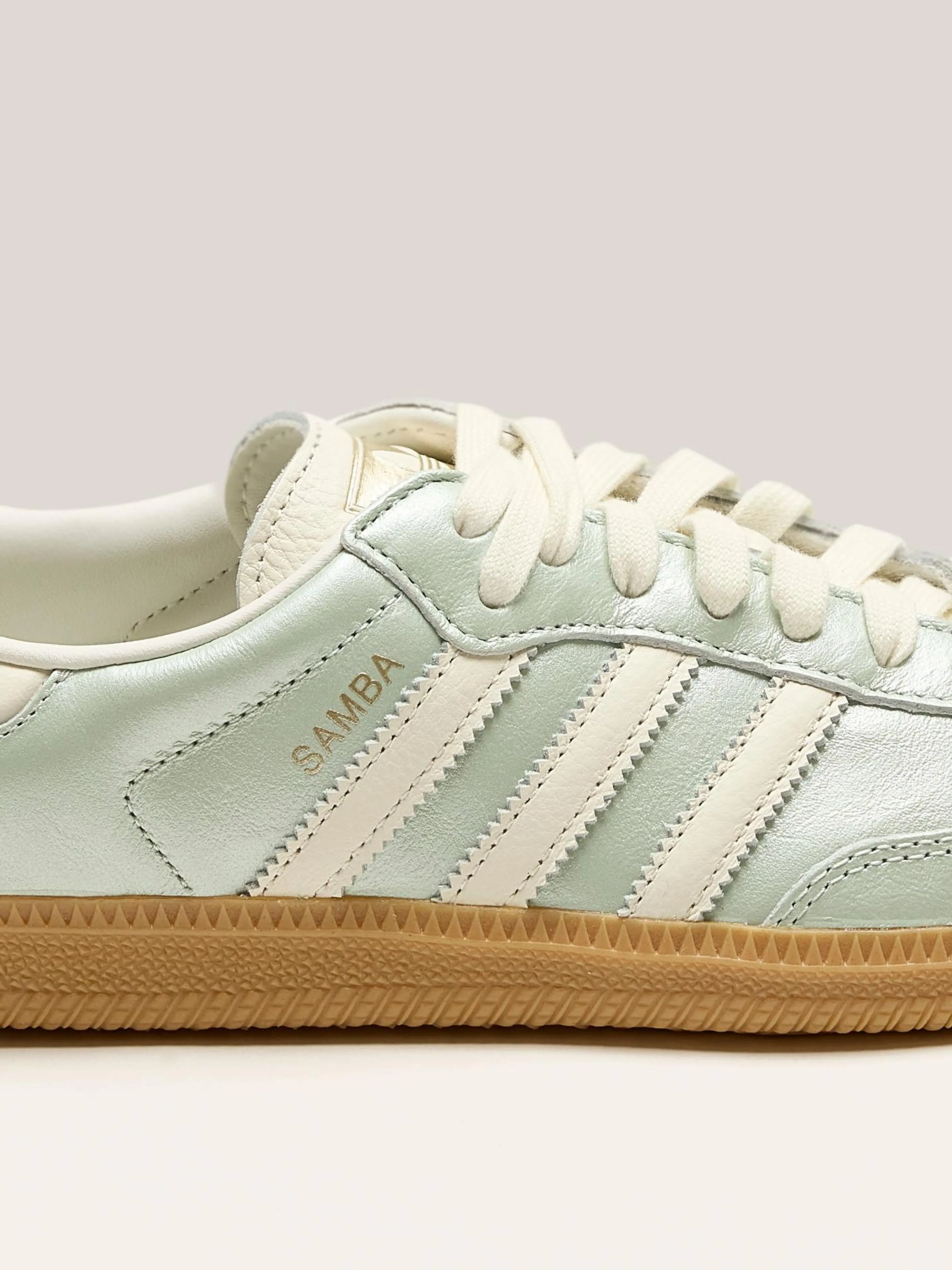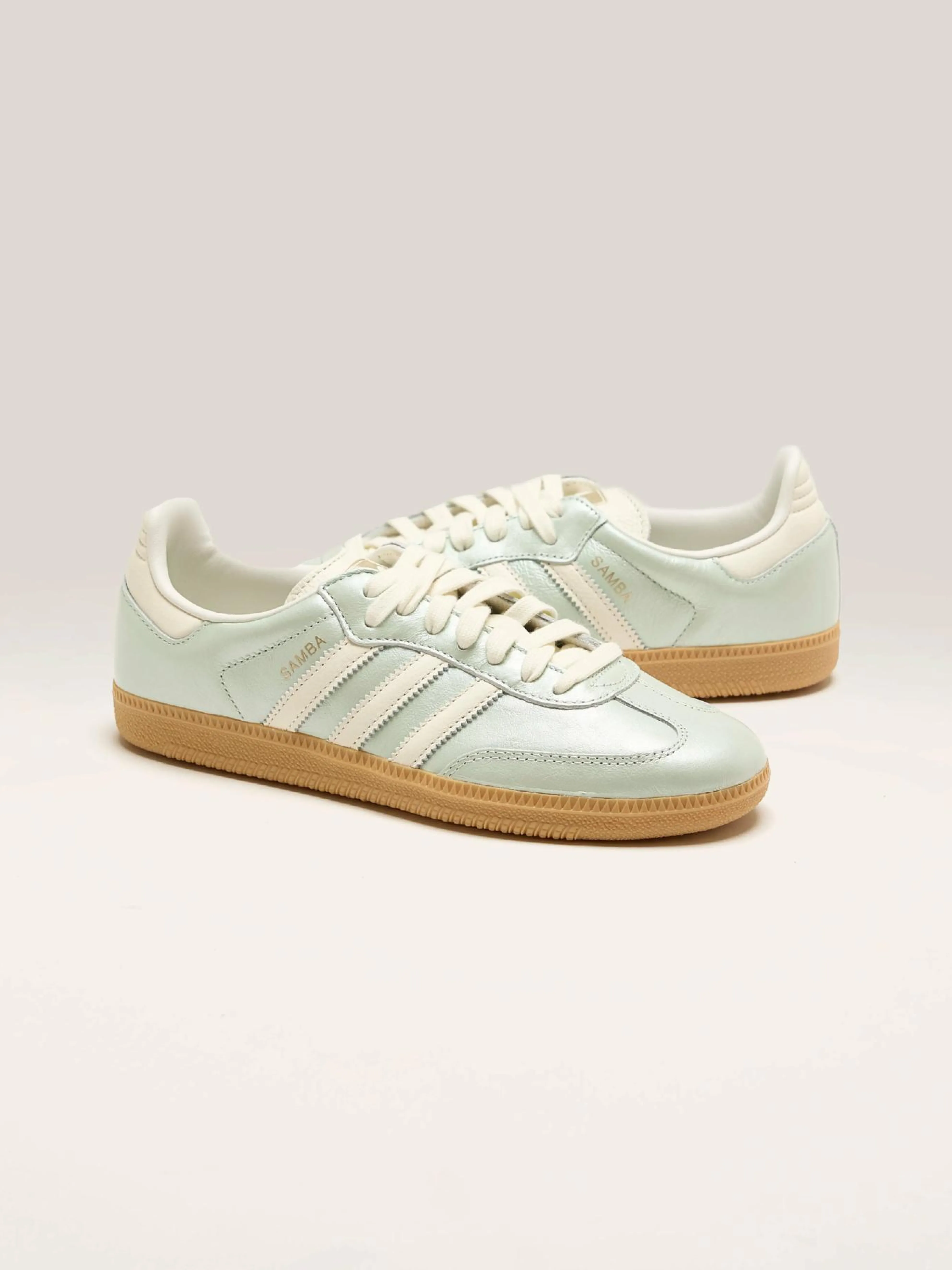De iconische Adidas Samba OG sneakers hebben een glad lederen bovenwerk en een duurzame rubberen buitenzool.