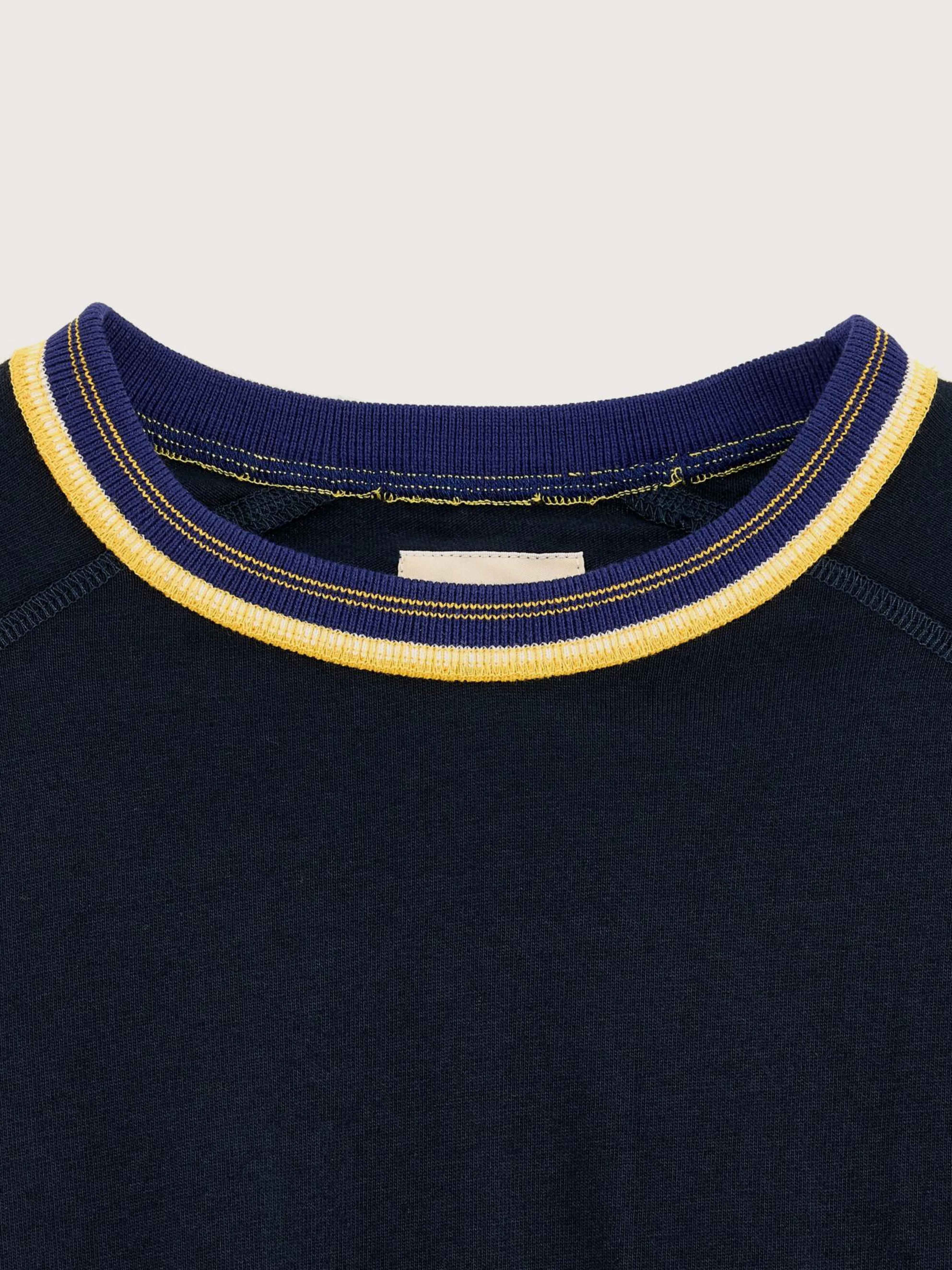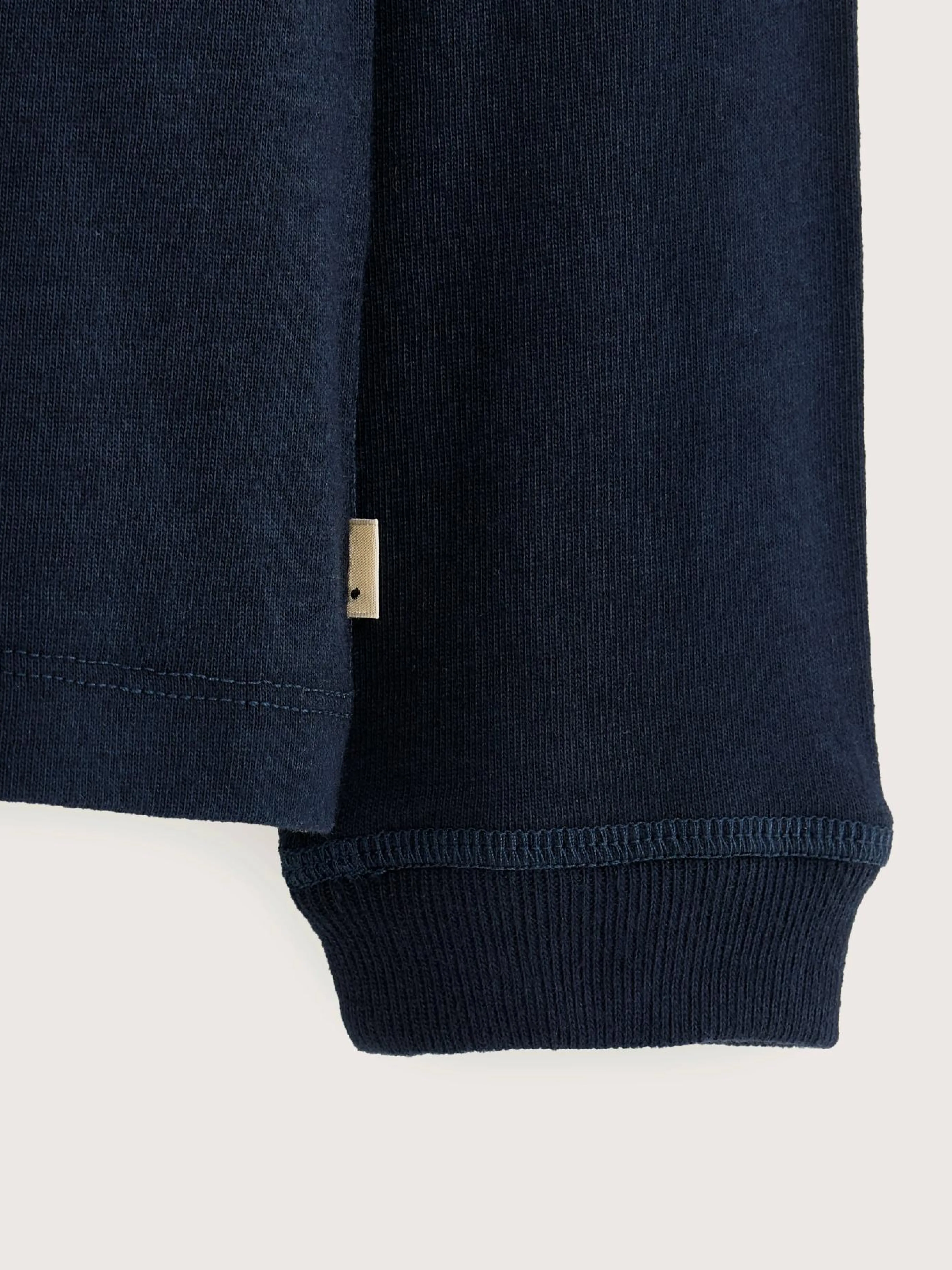 Klassiek, recht T-shirt met lange mouwen, van marineblauwe katoenjersey.