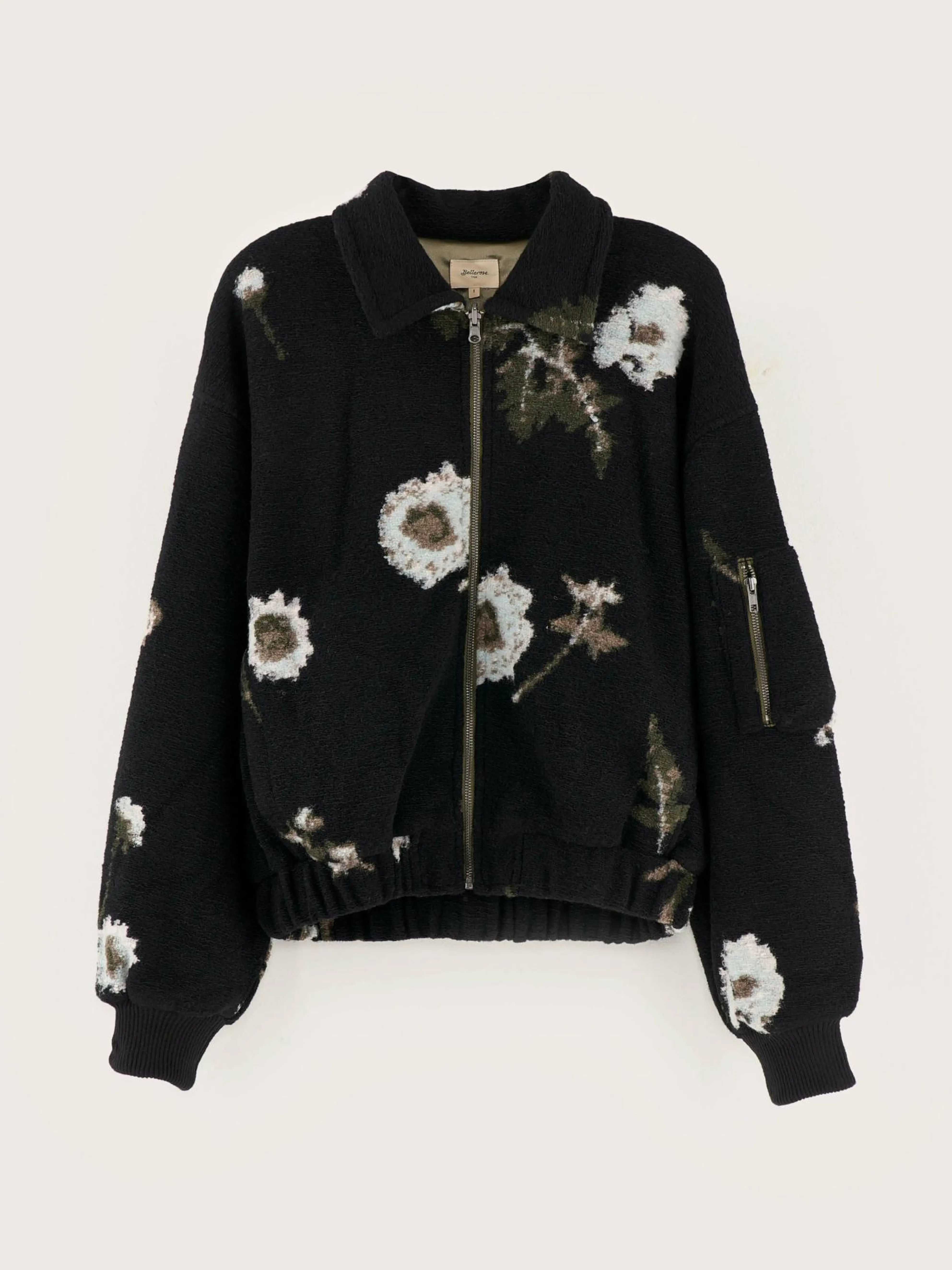Sweatshirtjas in bomberstijl, van fleecestof met bloemenprint.