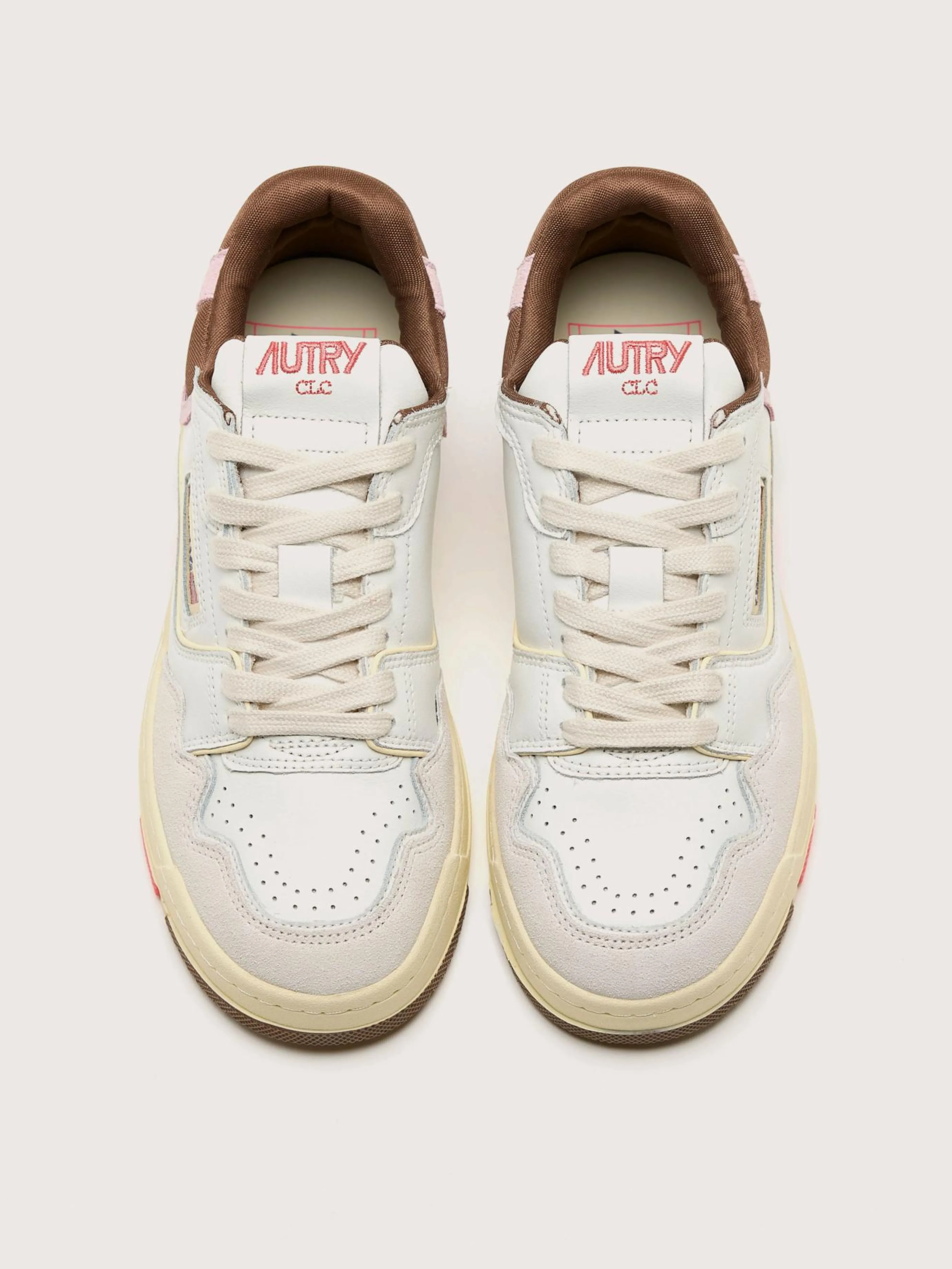 De Autry CLC Low zijn op basketbal geïnspireerde sneakers met een lederen en suède bovenwerk, een gewatteerde kraag van mesh en een verhoogde rubberen zool.