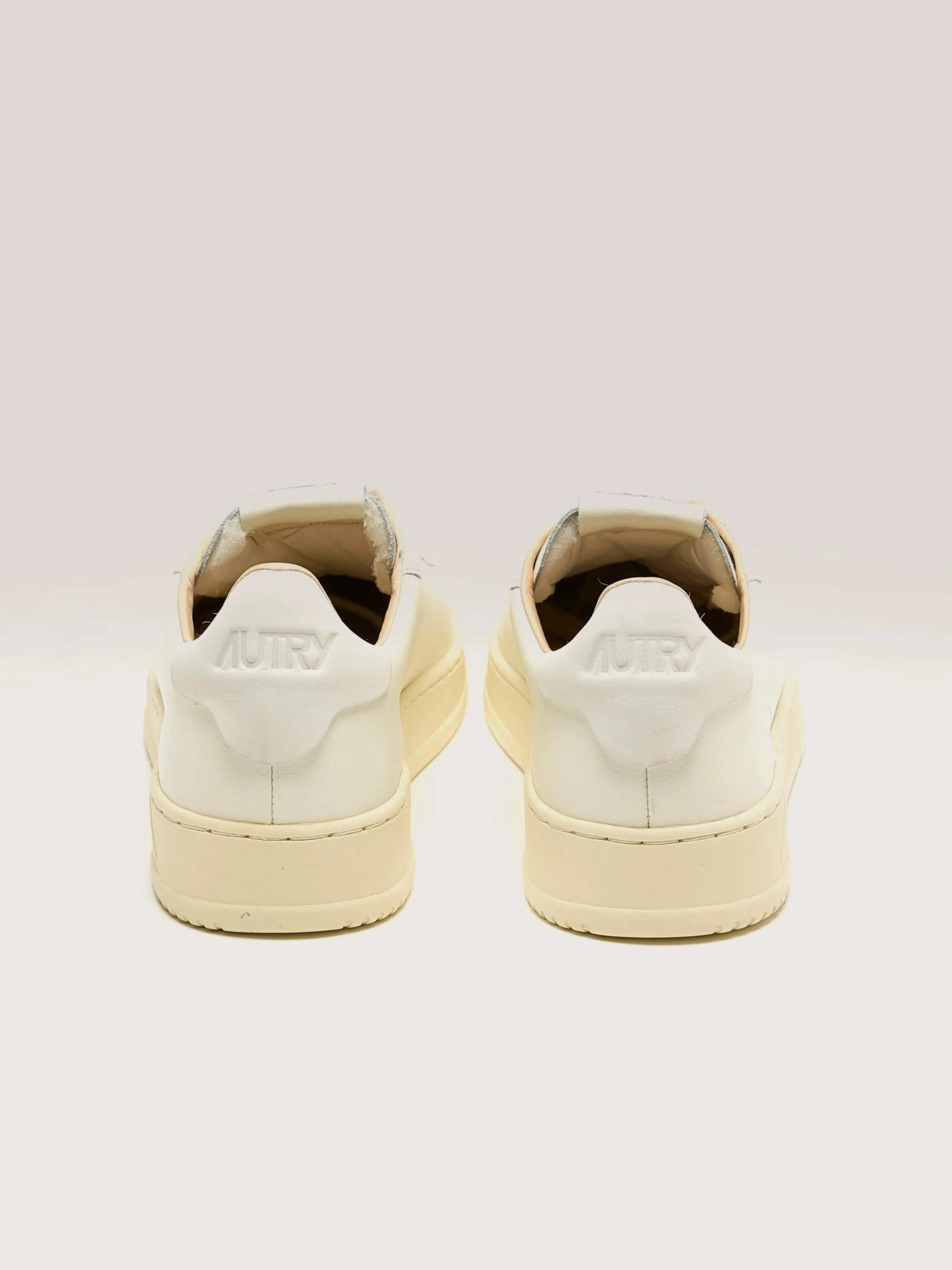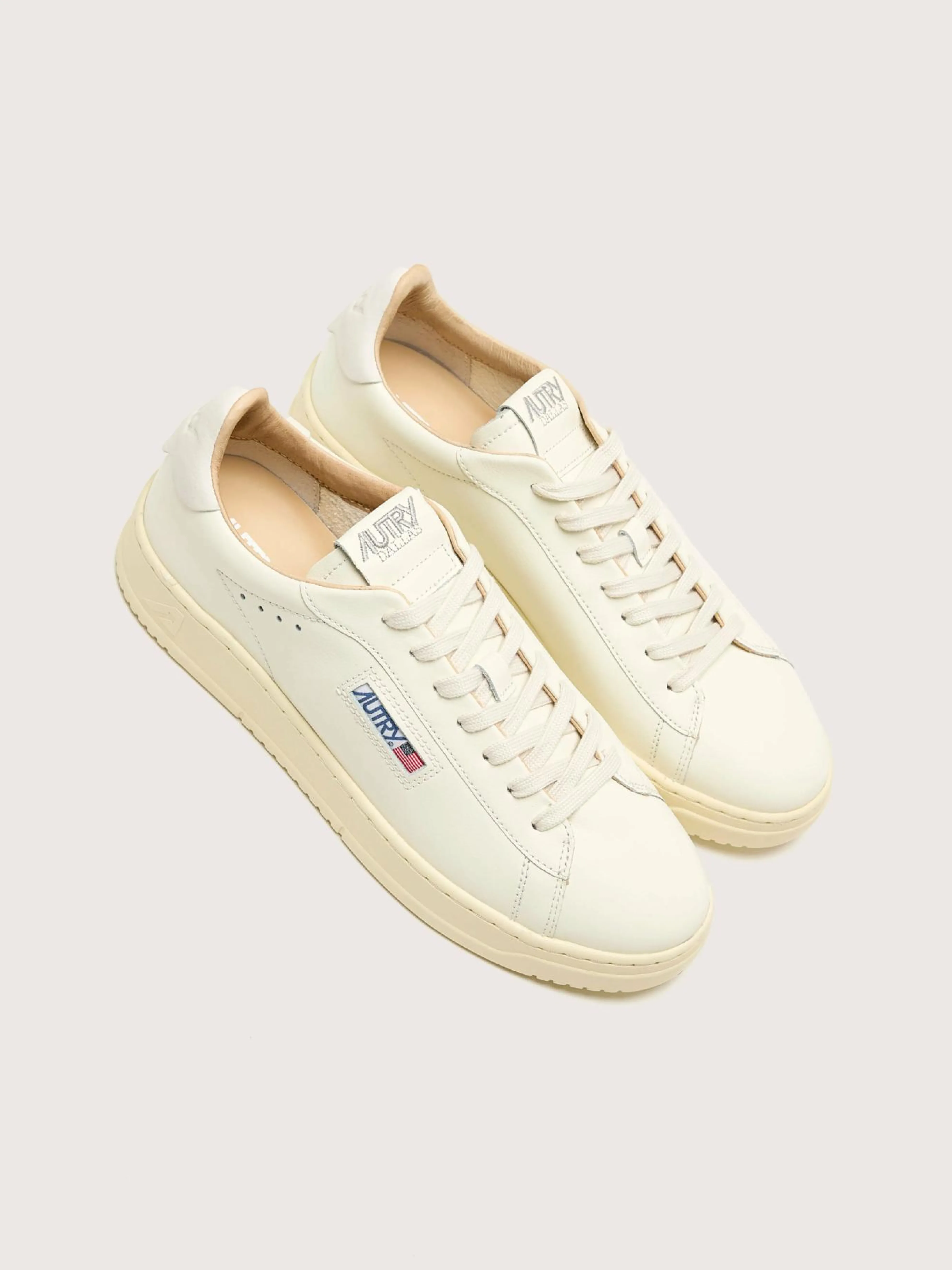 De Autry Dallas Low sneakers hebben een laag, compact profiel gemaakt van wit-op-wit zacht nubuckleder.