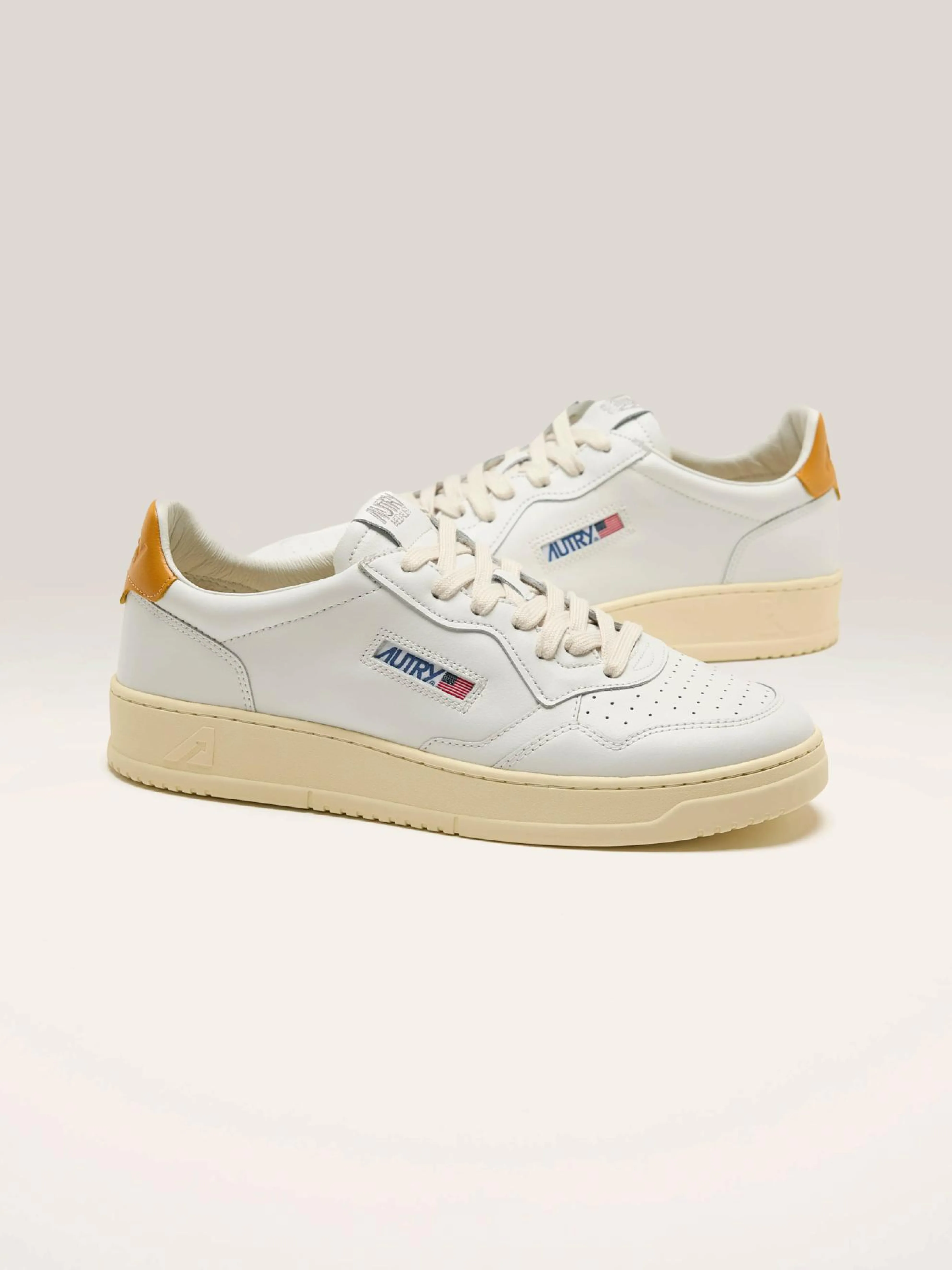 De Autry Medalist Low lifestyle sneakers hebben een sportief silhouet in wit leder met een gouden lederen hiellipje.