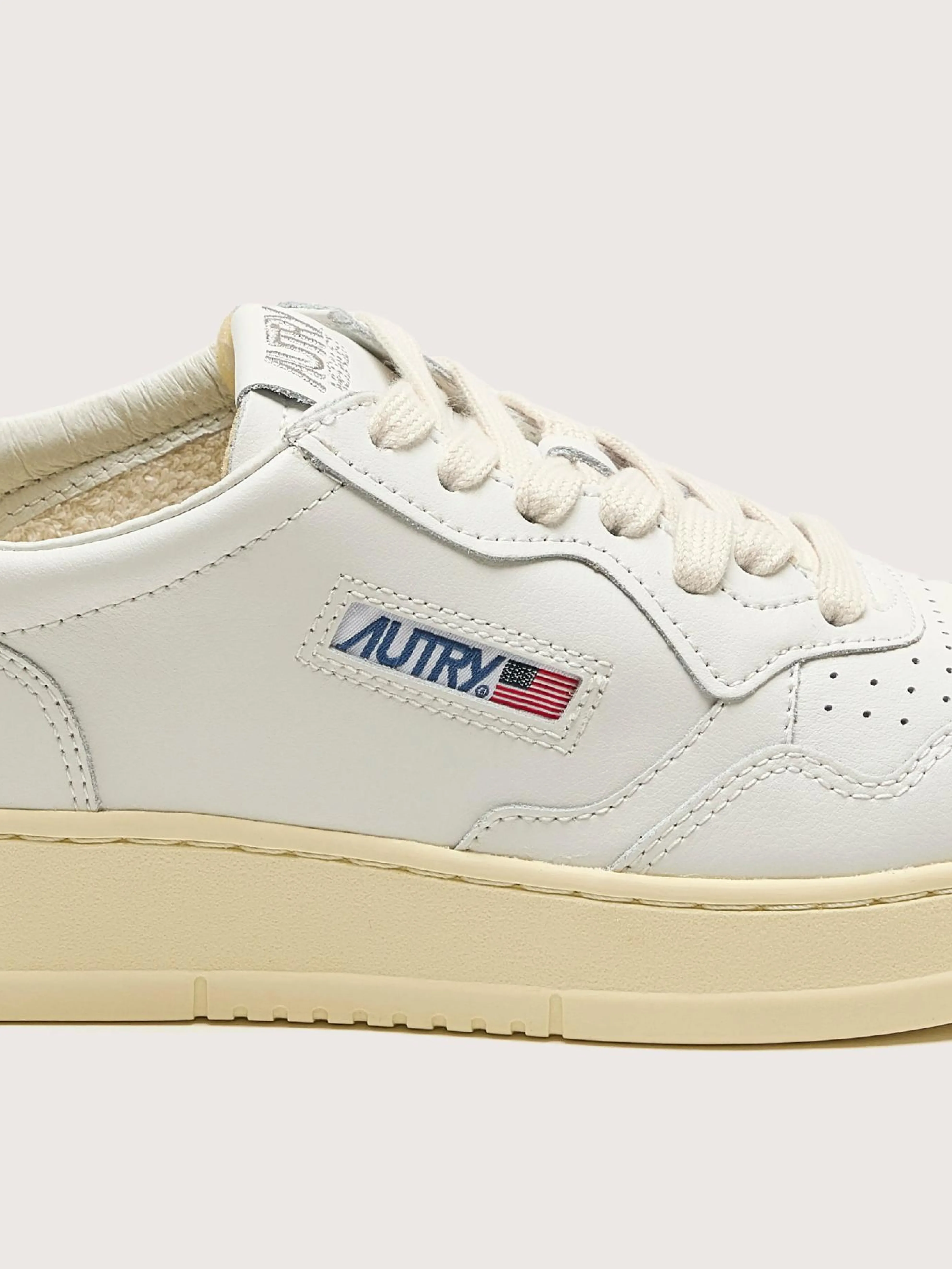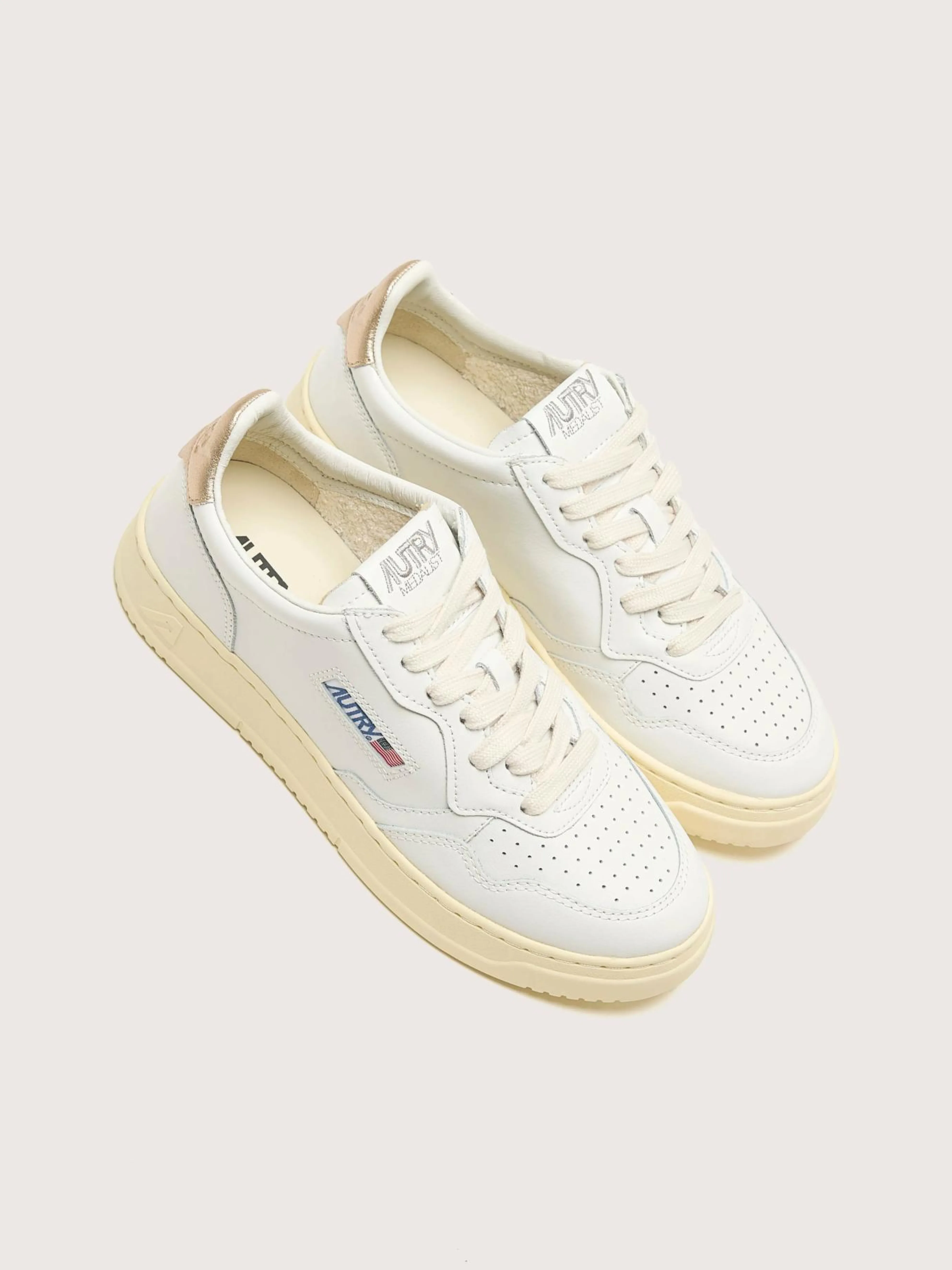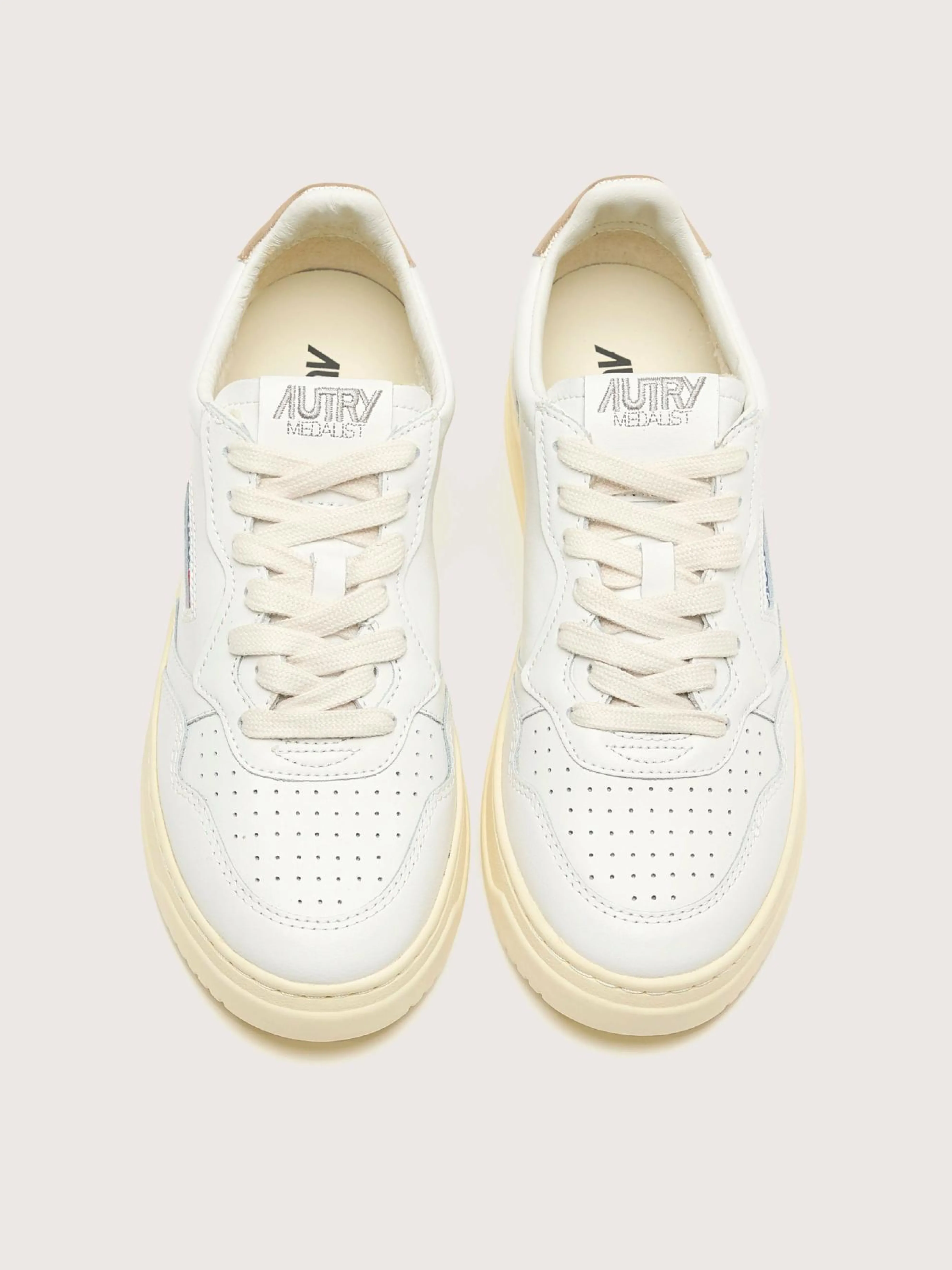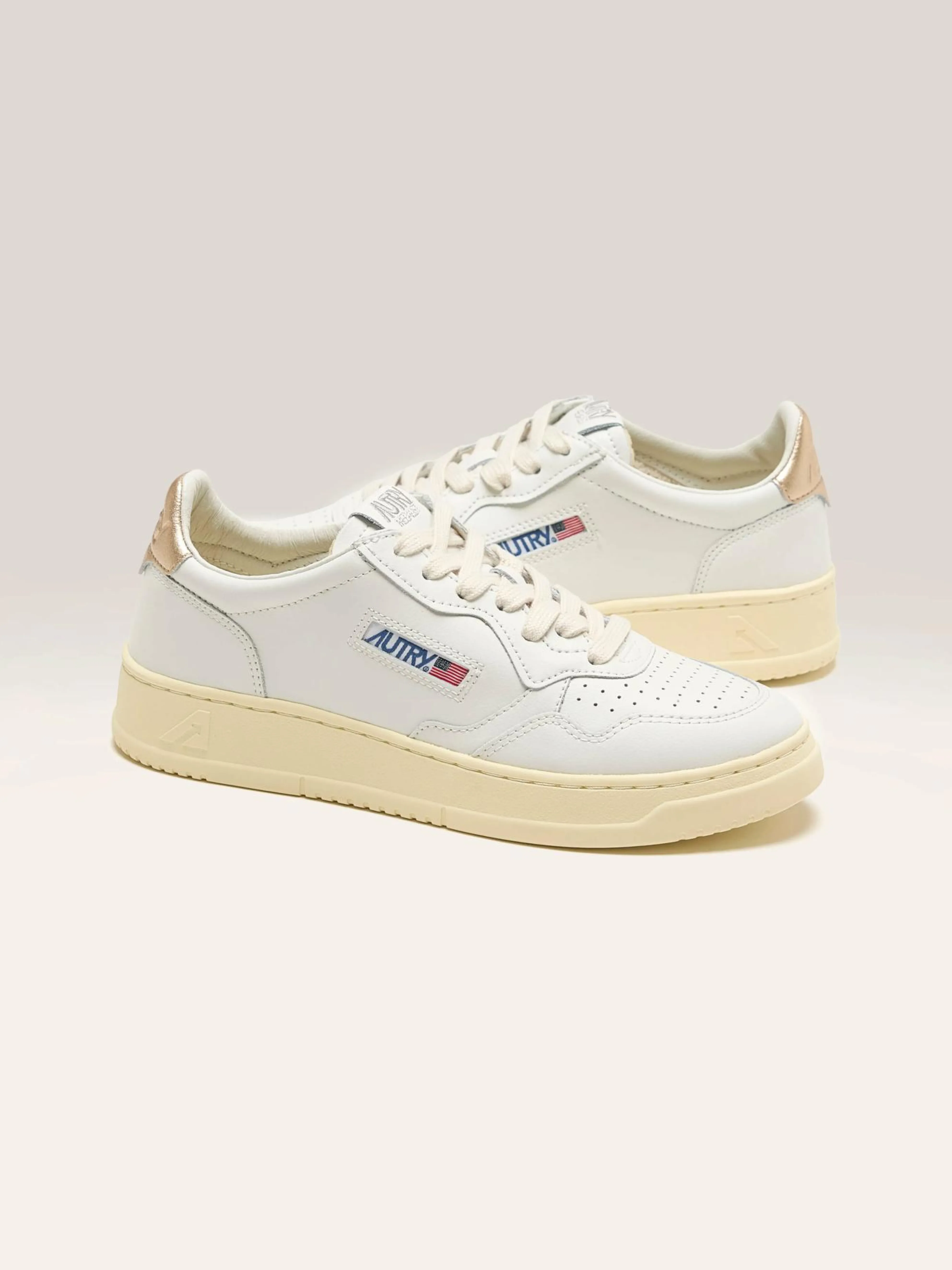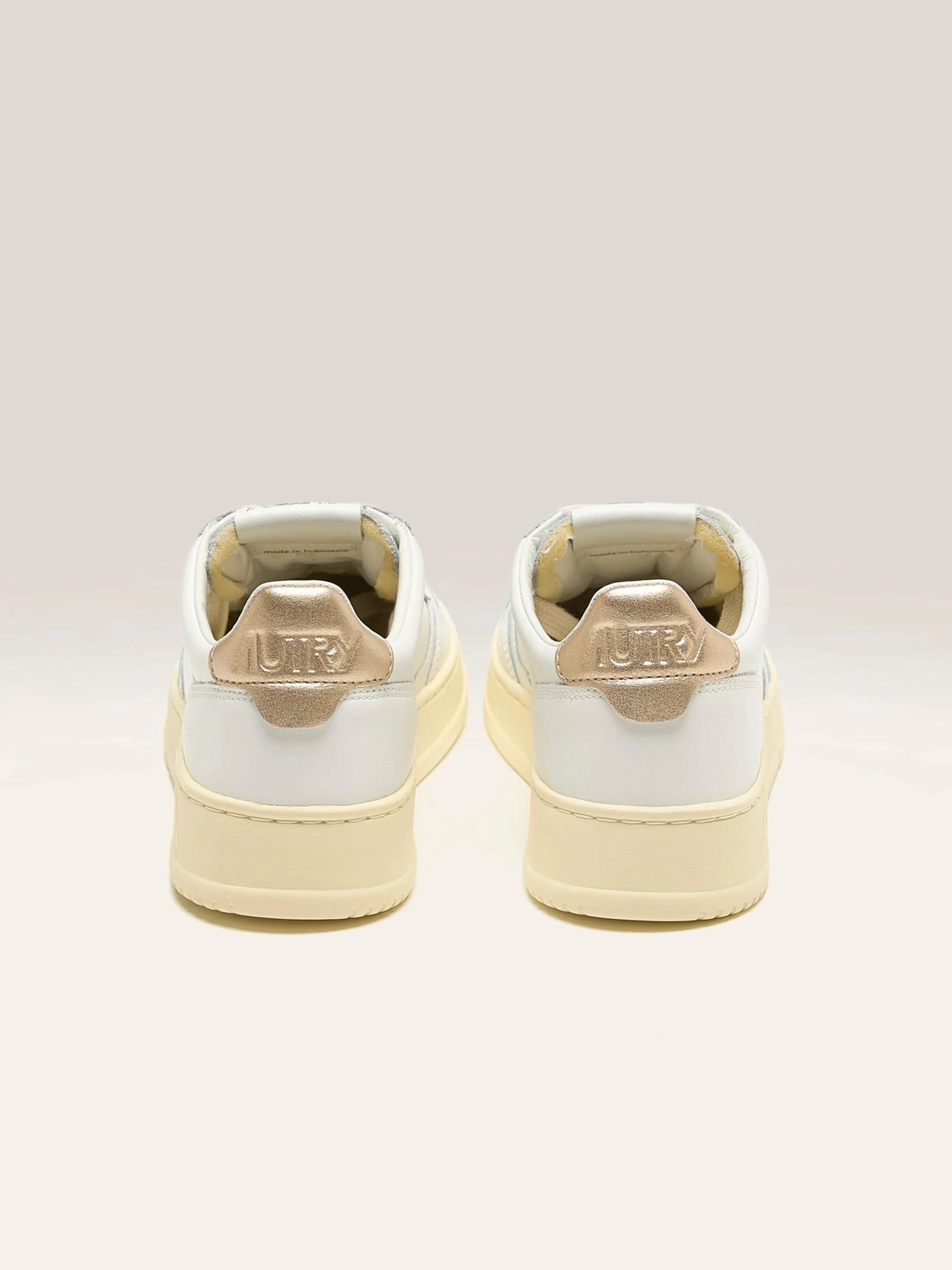 De Autry Medalist Low lifestyle sneakers hebben een sportief silhouet in wit leder met een gouden lederen hiellipje.