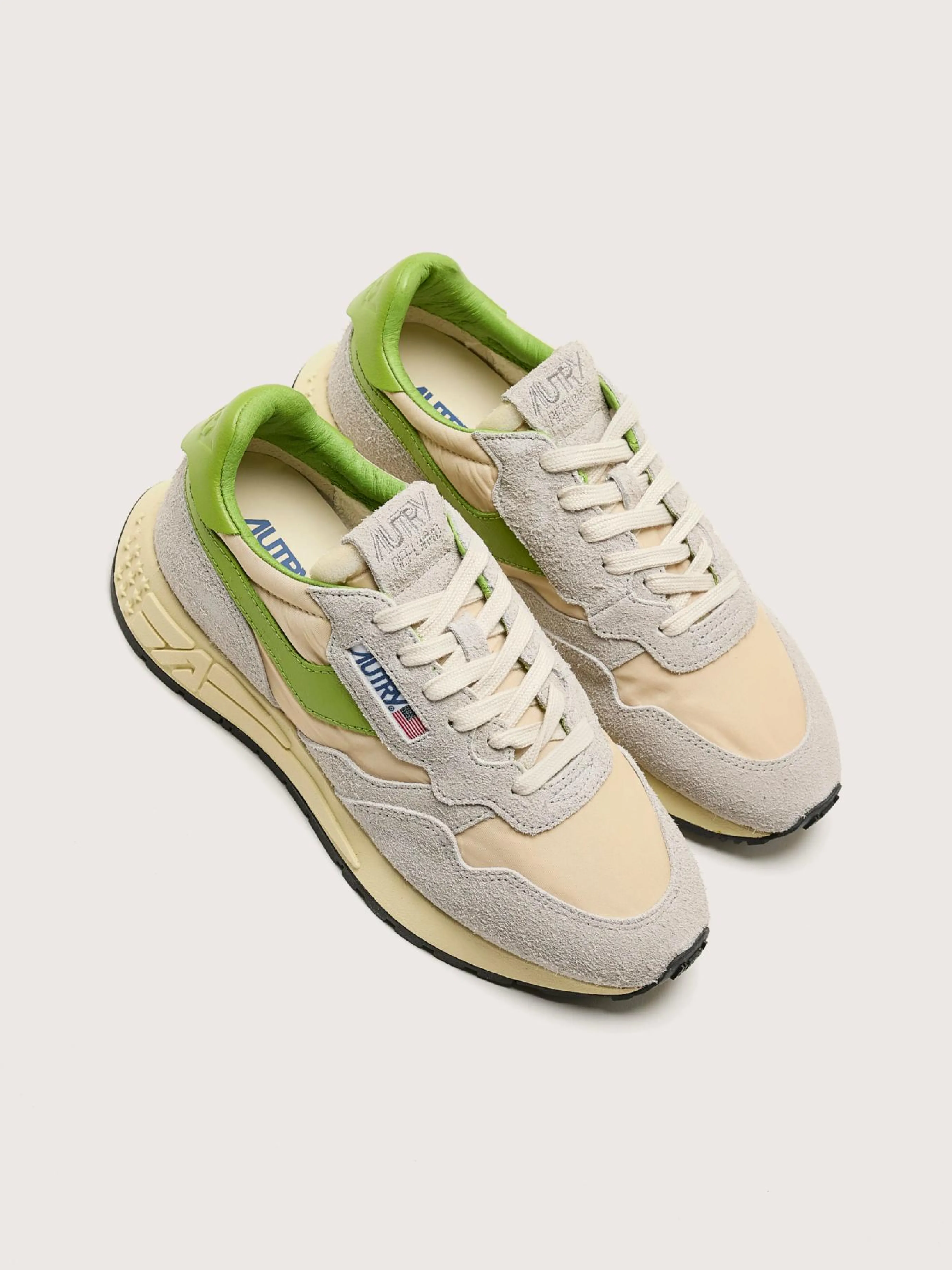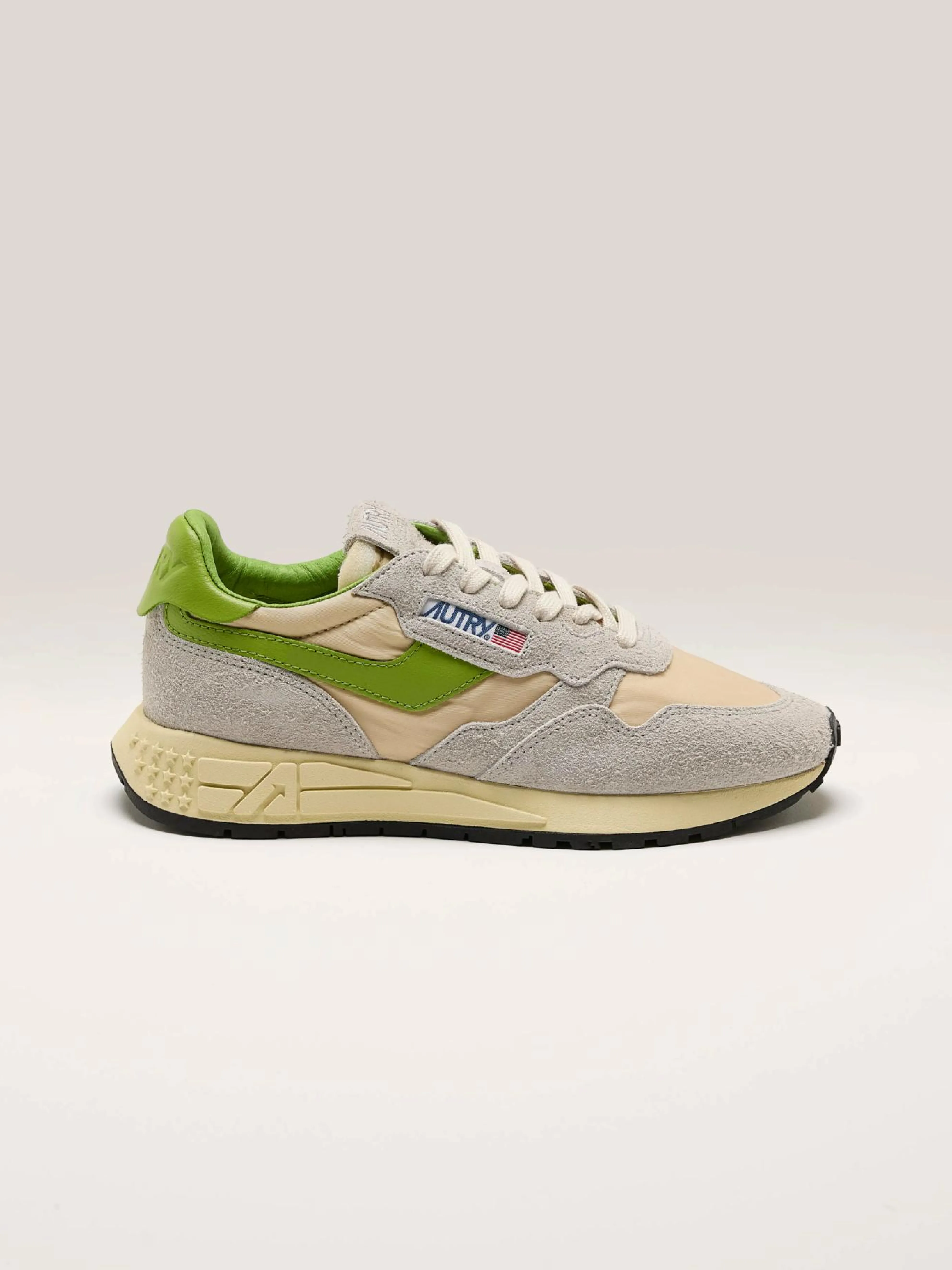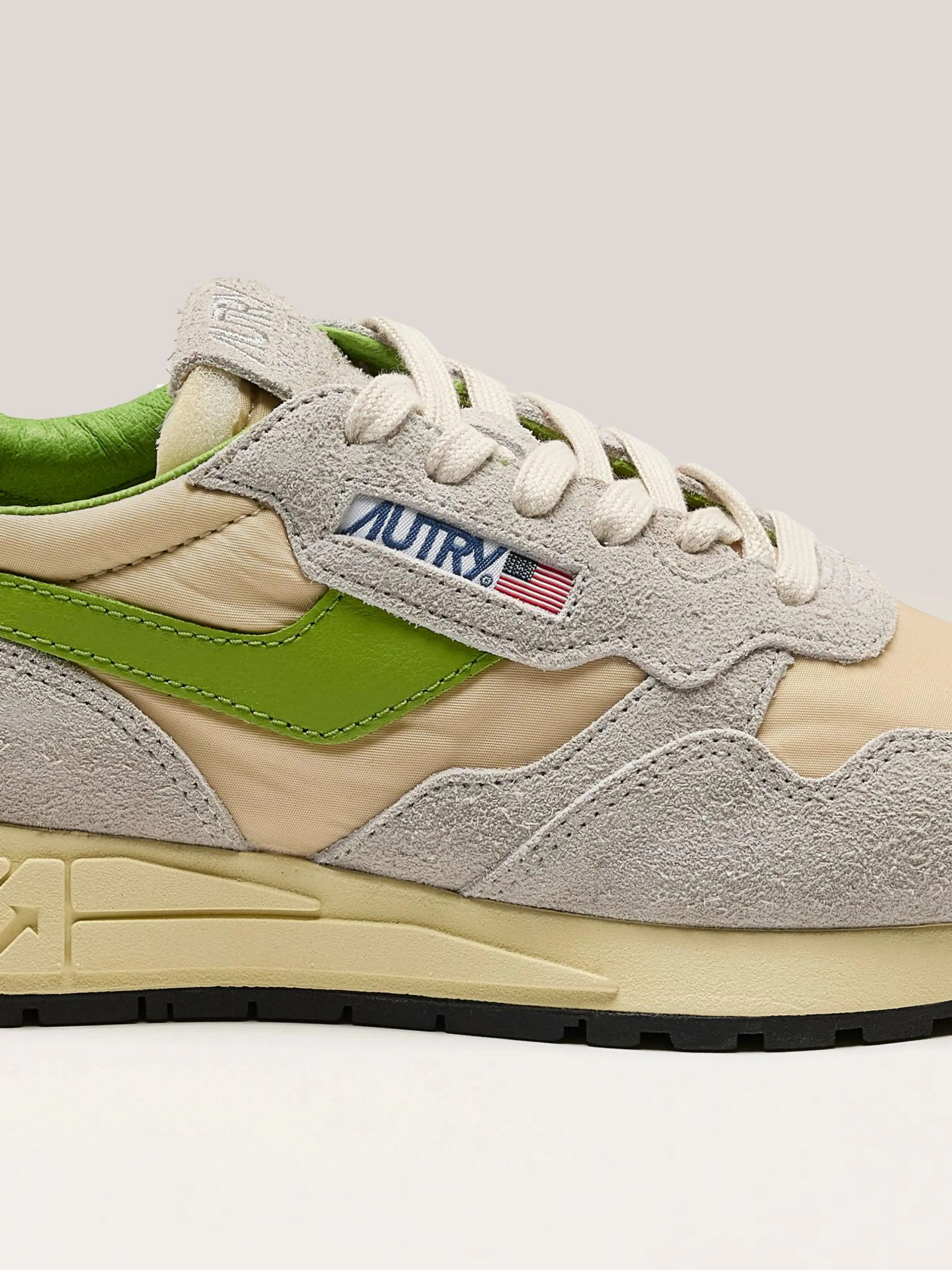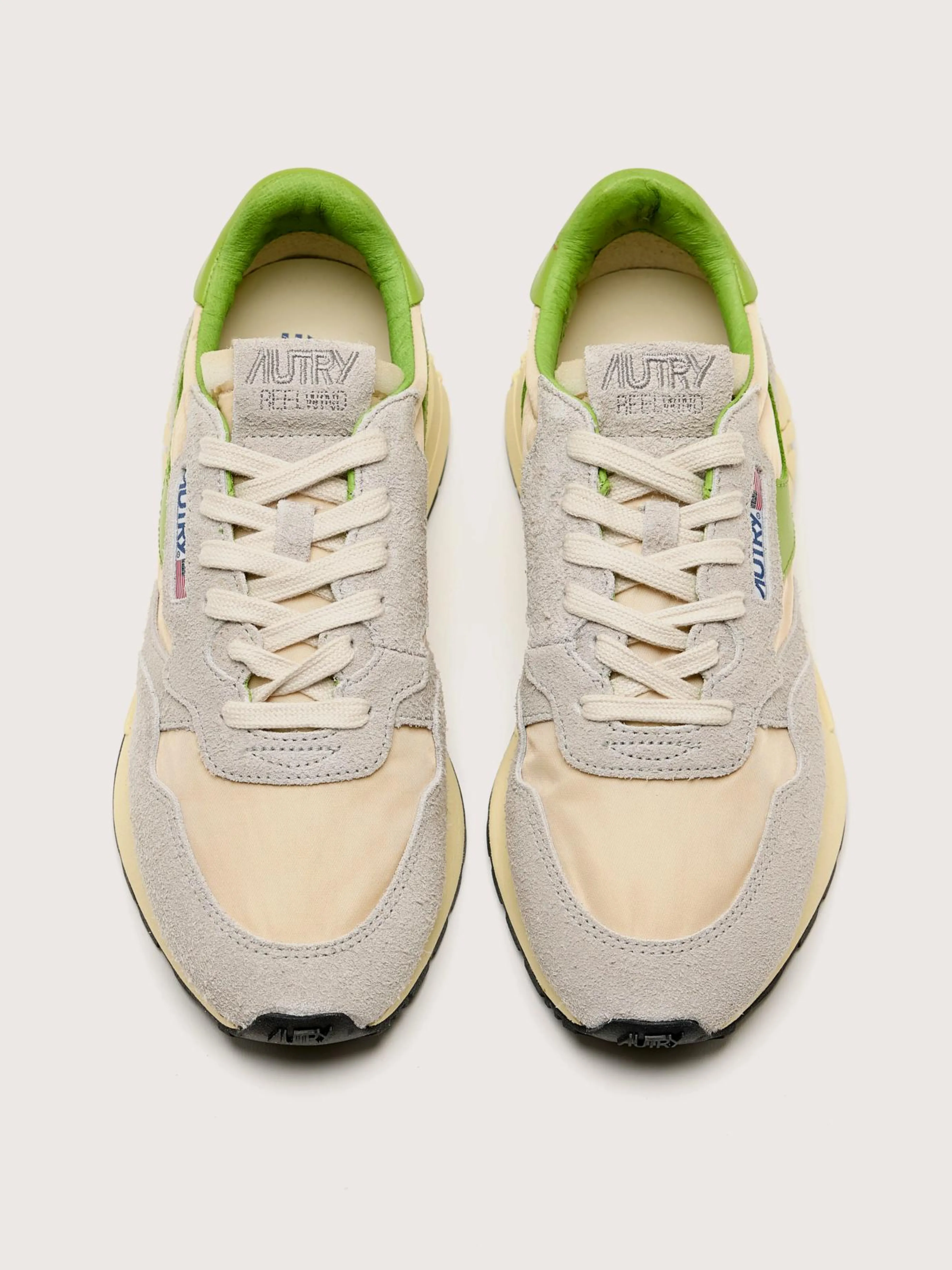 De Autry Reelwind low-top sneakers zijn een unieke vintage esthetiek en een combinatie van nylon, leder en suède.