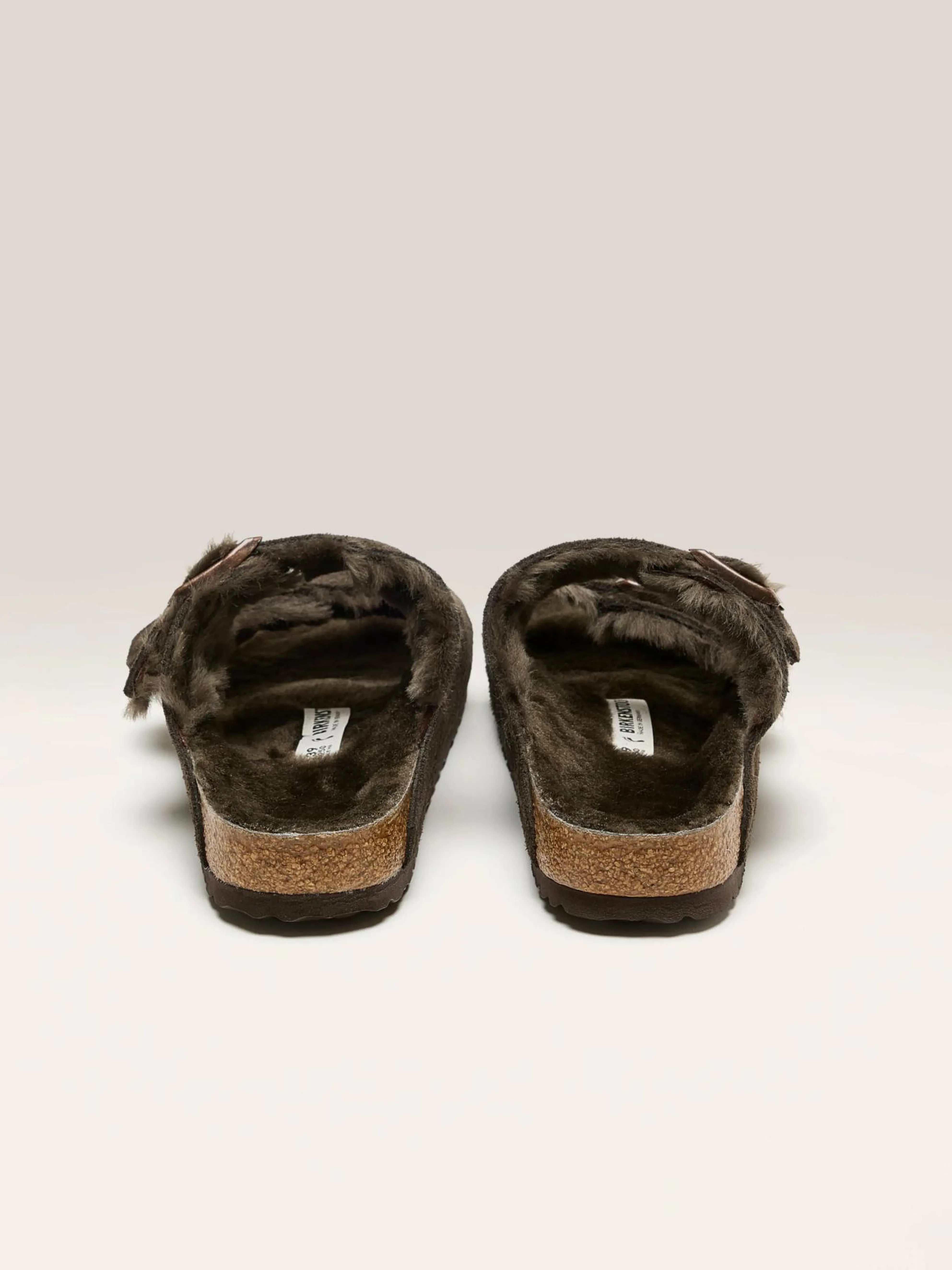 De Birkenstock Arizona Shearling sandalen hebben een suède bovenwerk en een anatomisch gevormd voetbed gevoerd met zacht lamsvel.