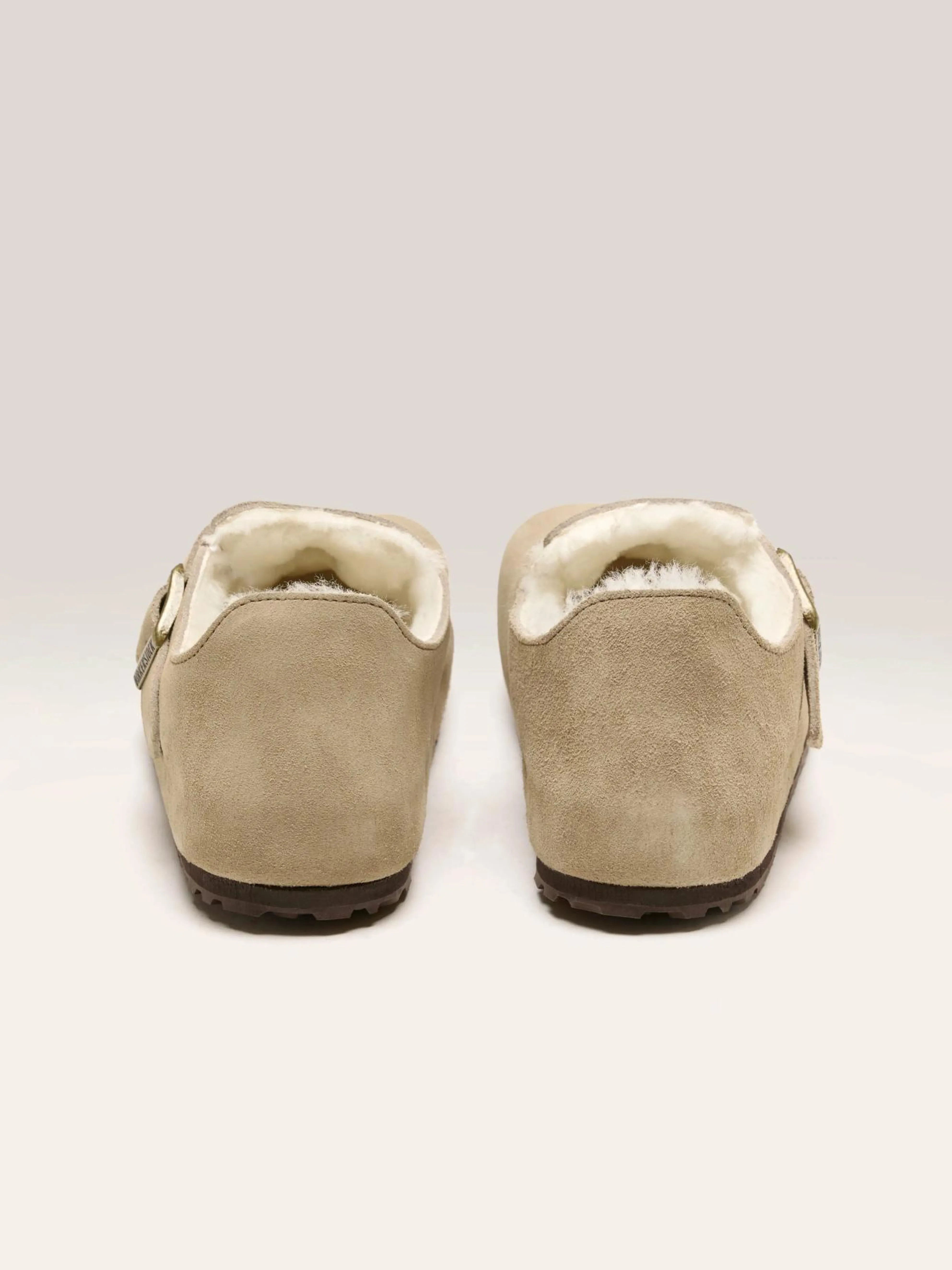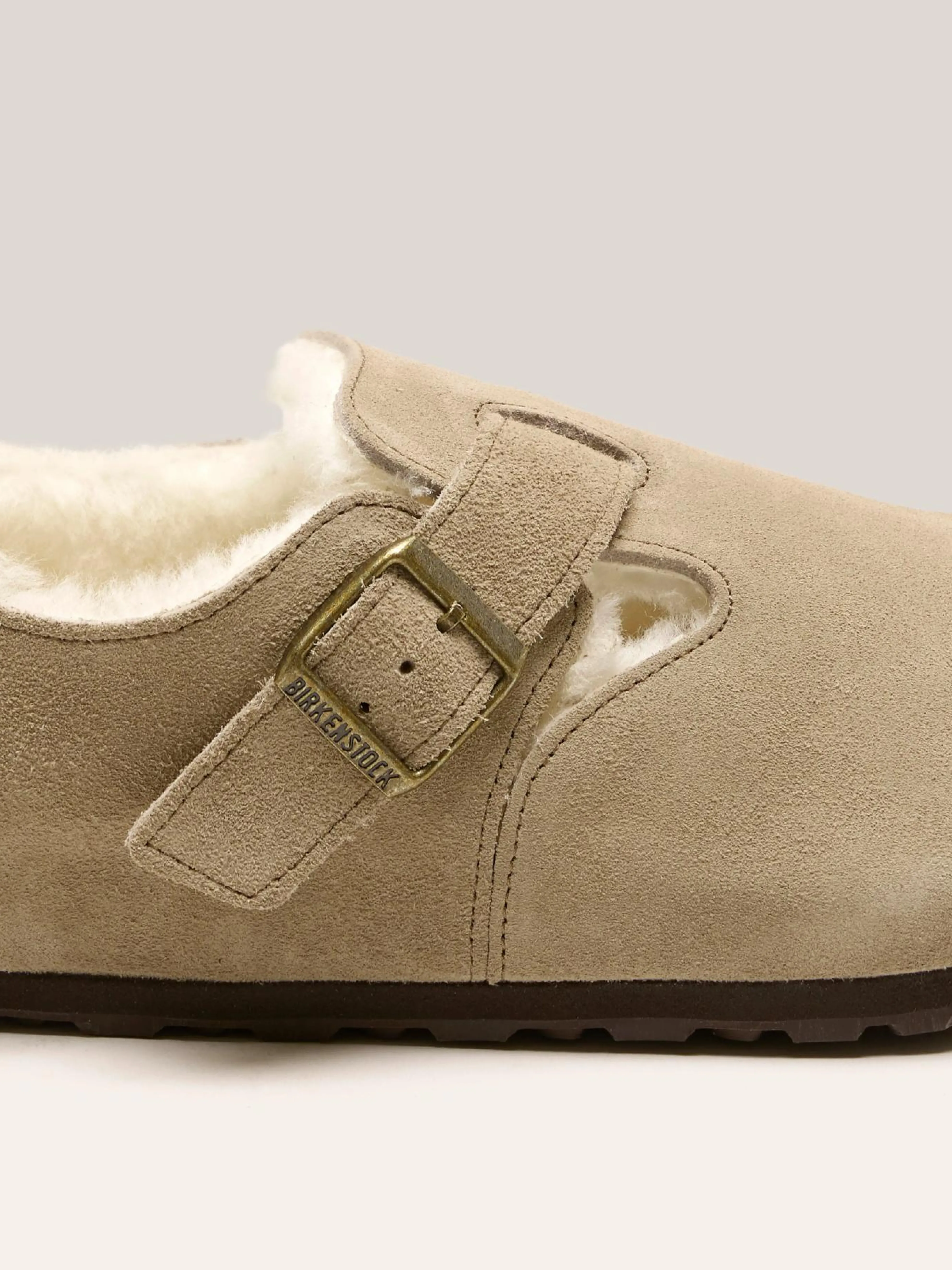 De Birkenstock London Shearling schoennen zijn gemaakt van zacht suède en hebben een warme voering van lamsvel.