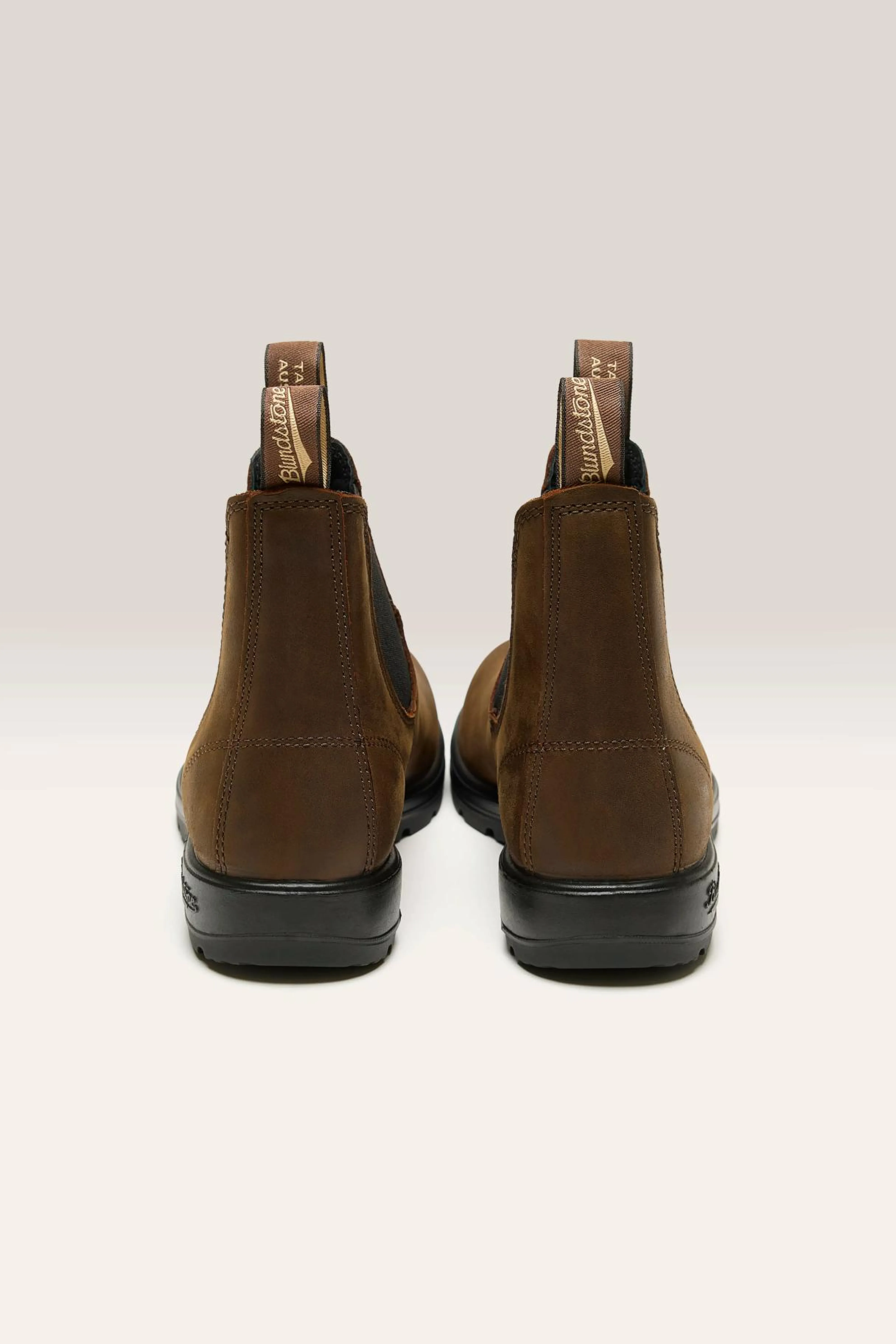 The Blundstone #1609 classic Chelsea boots feature antique brown premium water-resistant leather with elastic side panels and SPS Max Comfort system.