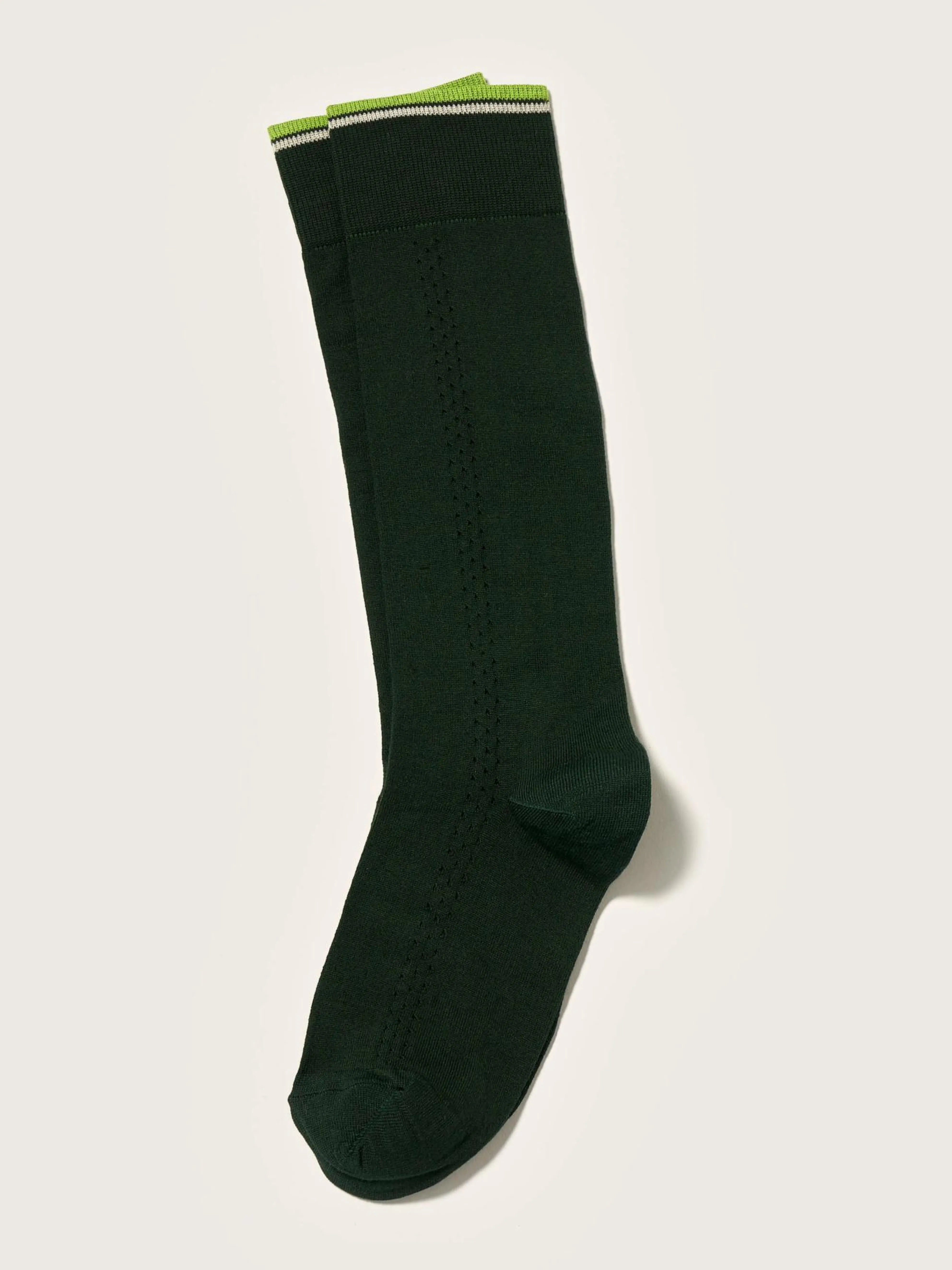 Opengewerkte, flesgroene kniekousen met traforatodetails