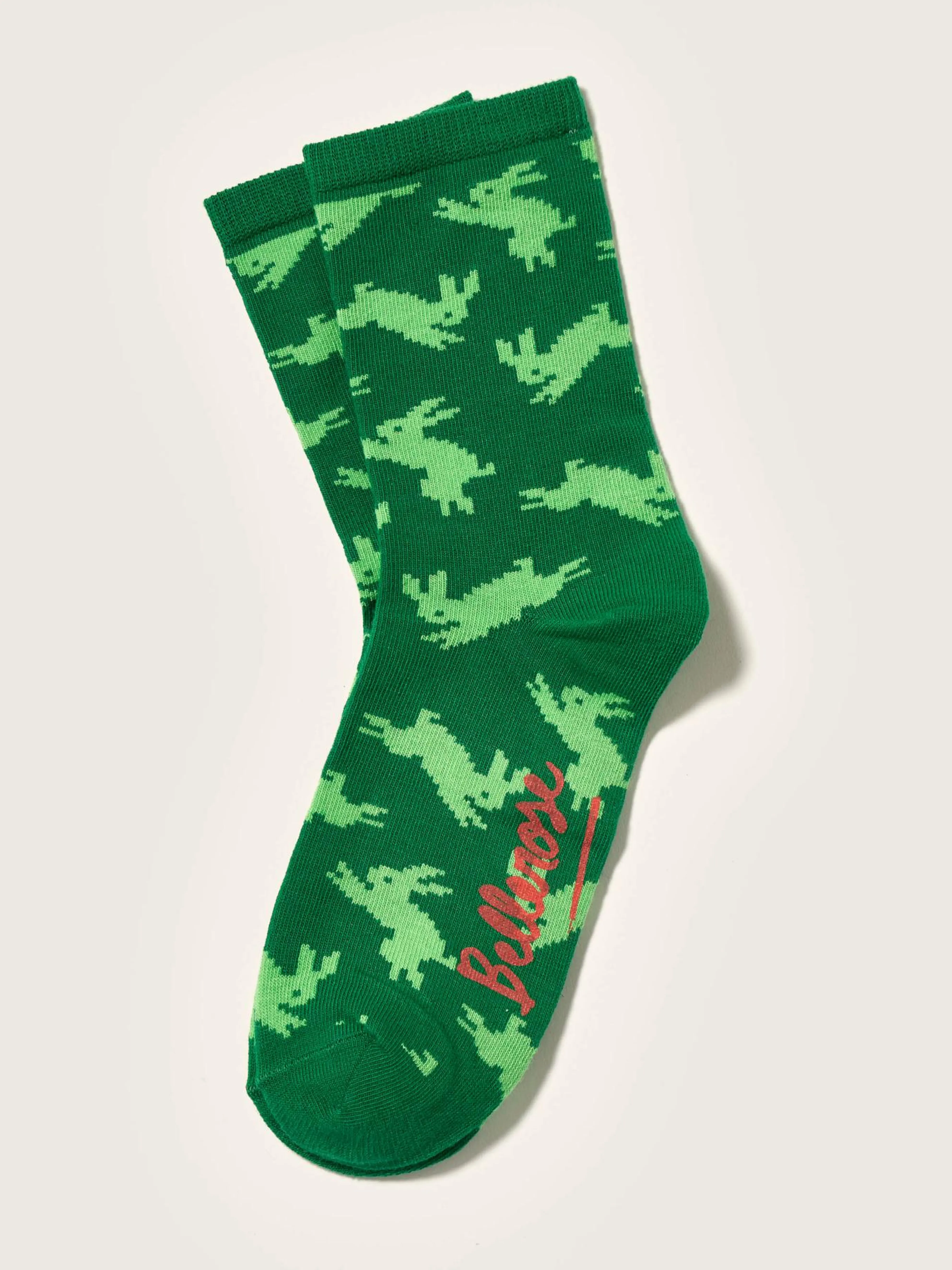Klassieke sokken met jacquard konijnpatroon en Bellerose x The Animal Observatory-print op de voetzolen.