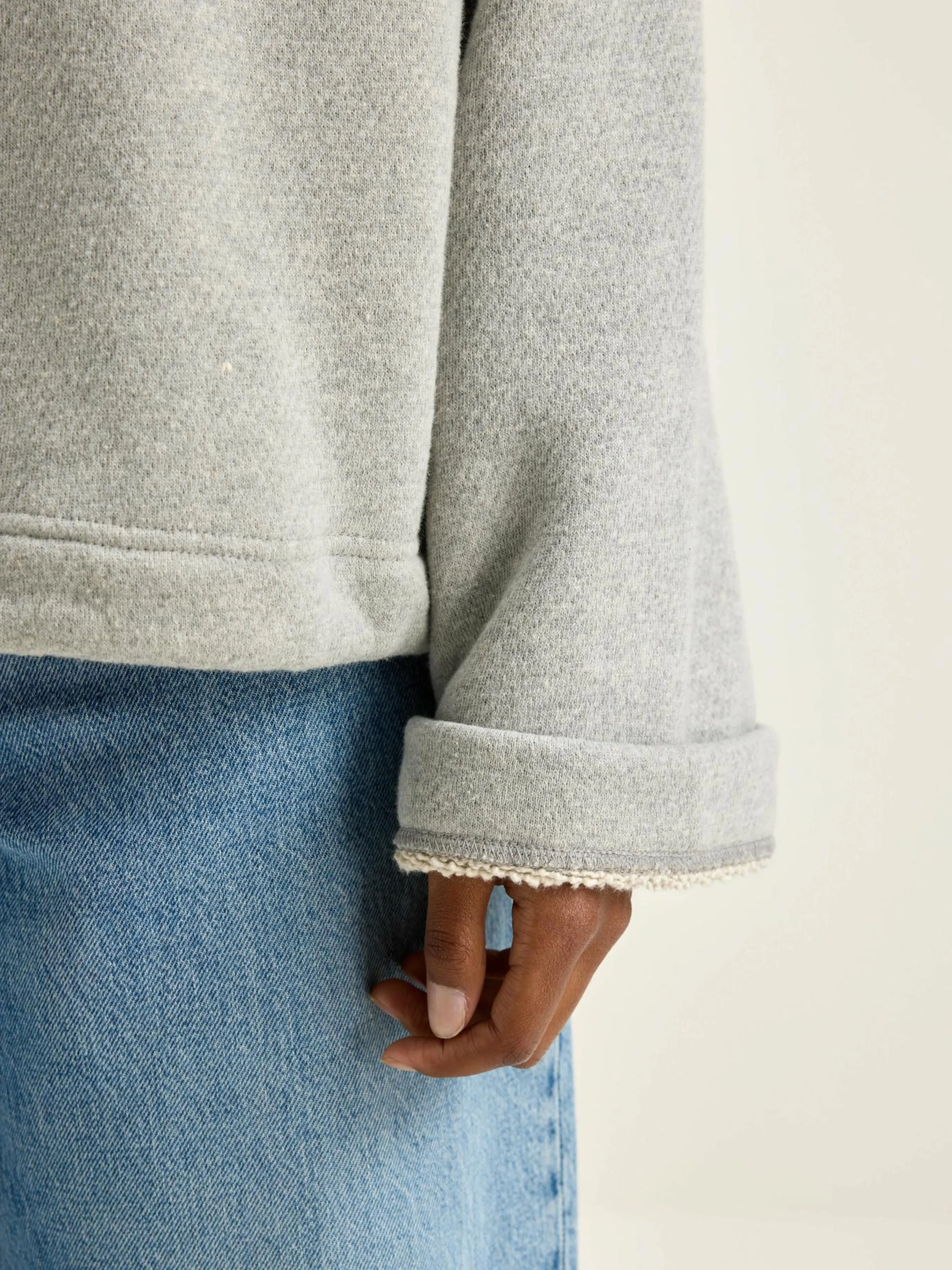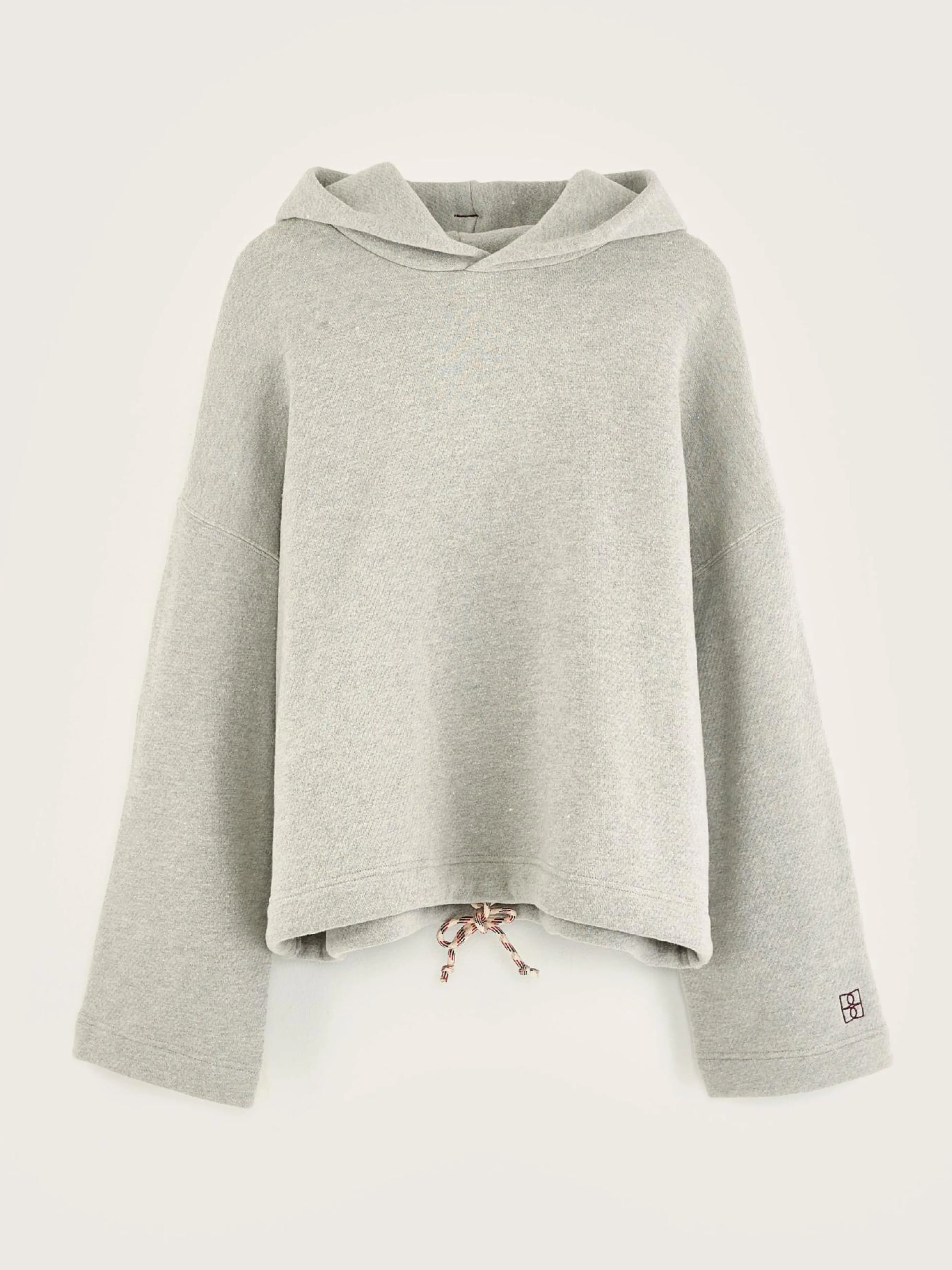 Grijs gemêleerde, oversizede hoodie met wijde mouwen, van katoenjersey.