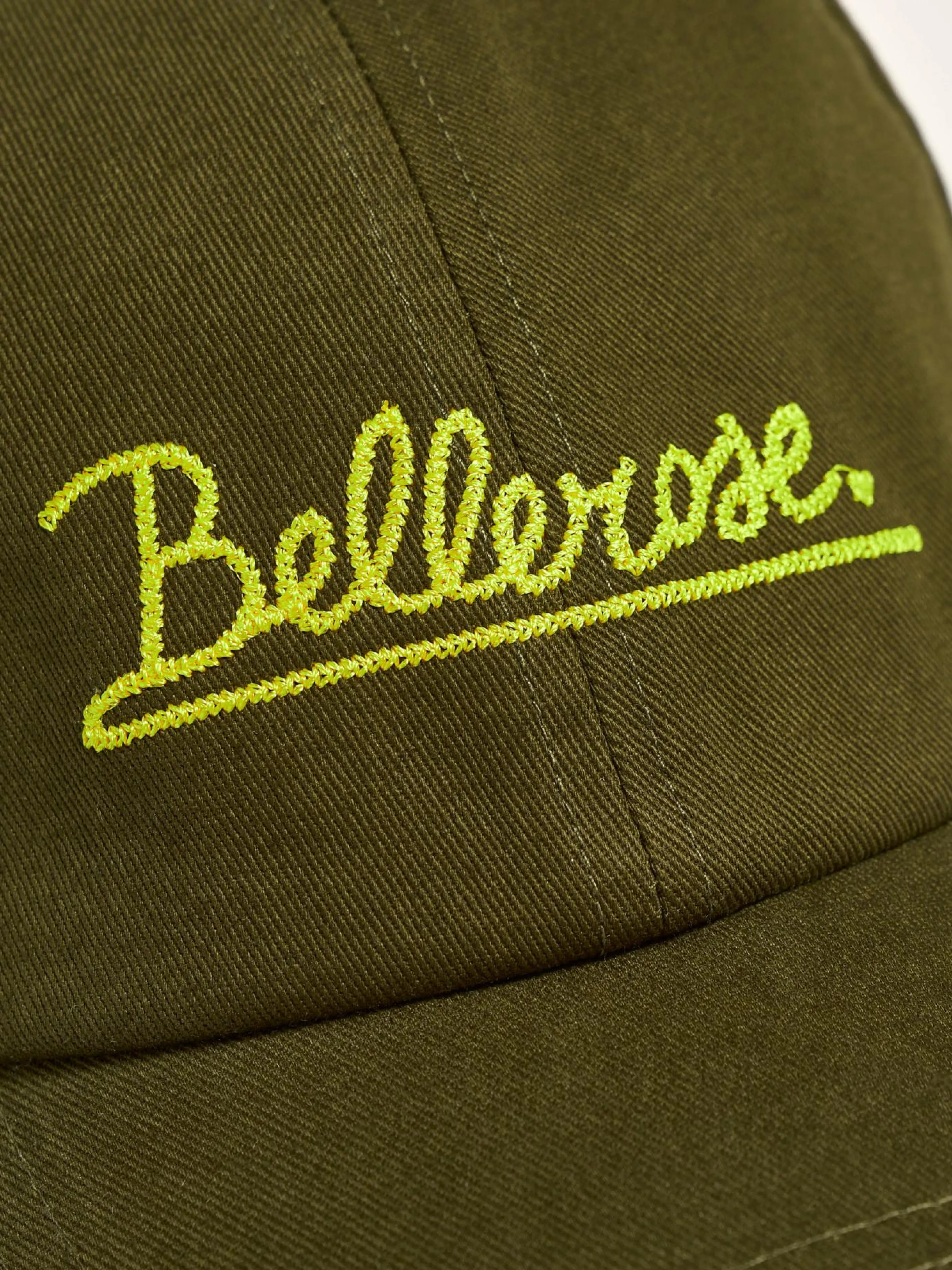 Klassieke pet met 6 panelen in kaki katoen met Bellerose geel borduursel op de voorkant.