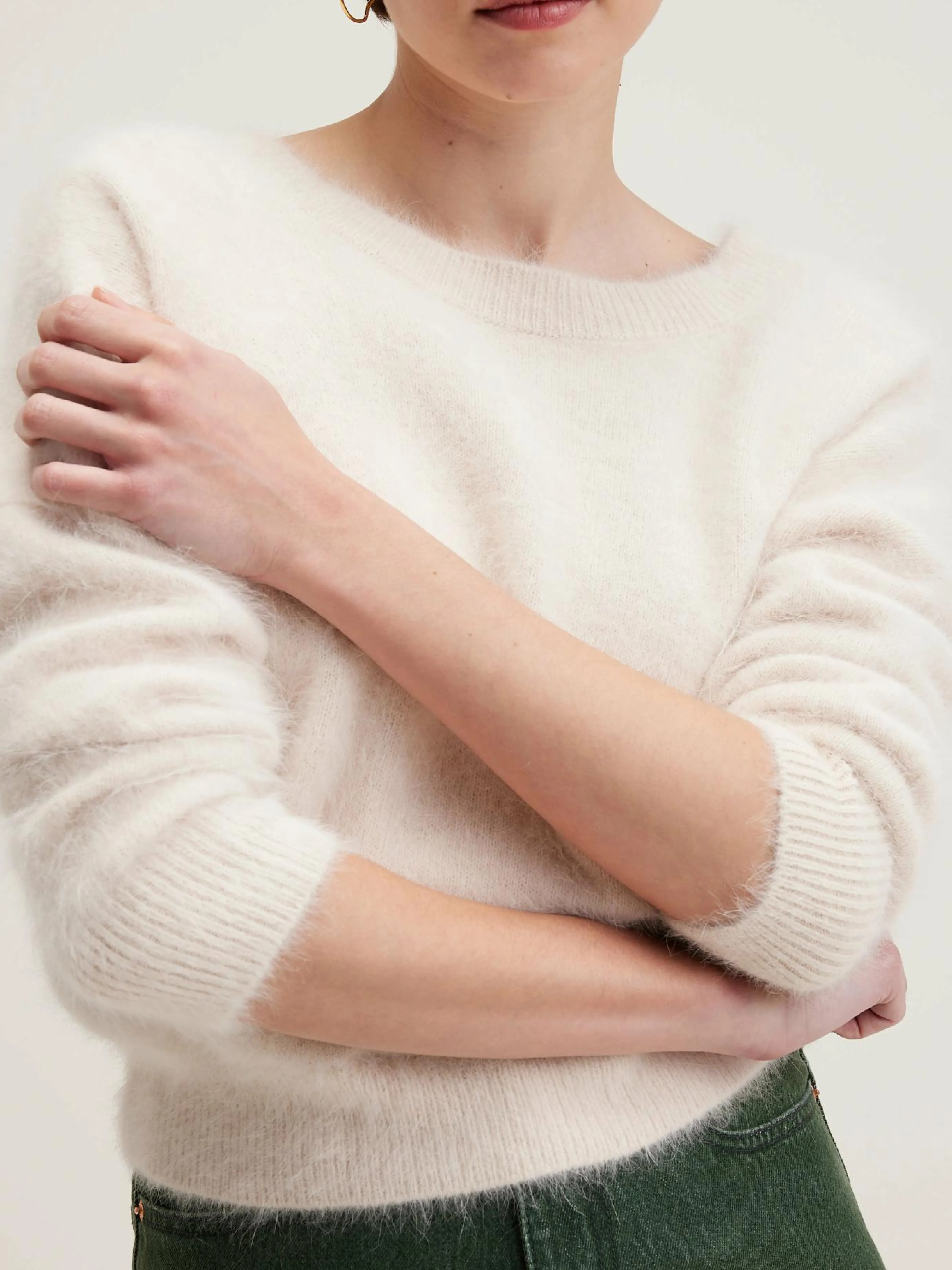 Omkeerbare crèmekleurige trui met V-hals, van angorablend.