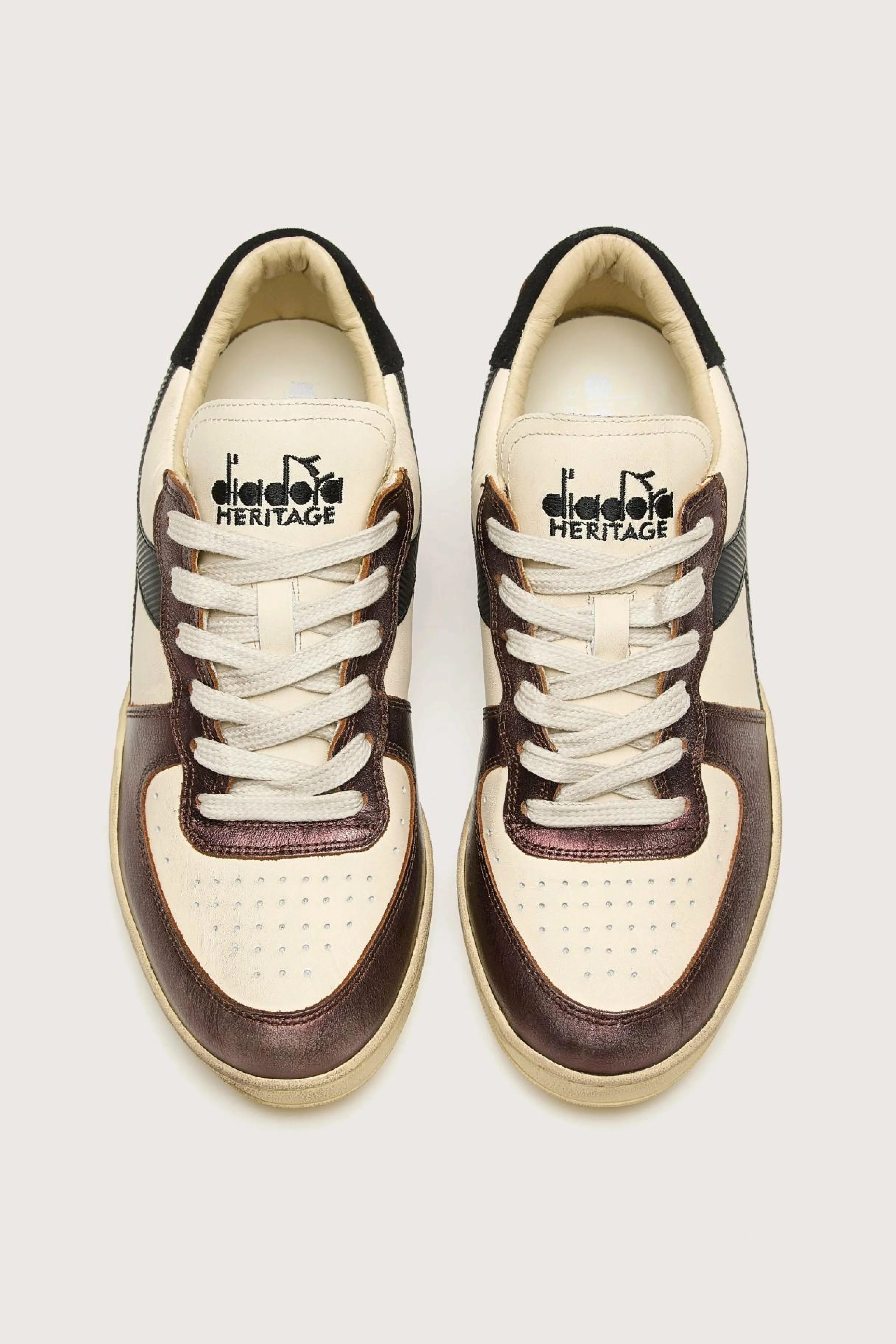 The Diadora Mi Basket Low Metallic Dirty heritage sneakers feature oiledpremiumfull-grainleather withsuede,stonewashedandwaxeddetails.