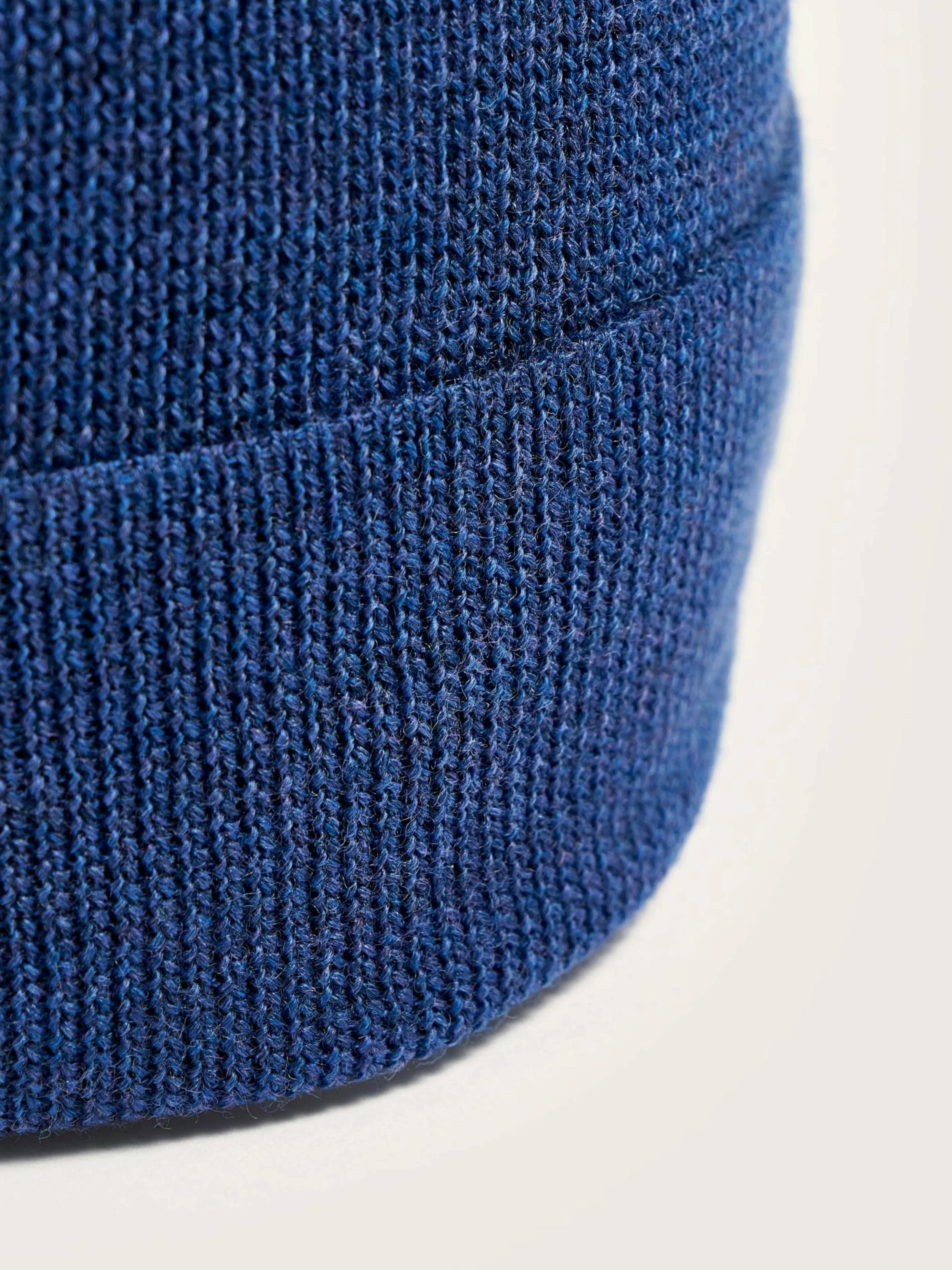 Klassieke geribbelde beanie van gemengd blauwe, superfijne merinowol.