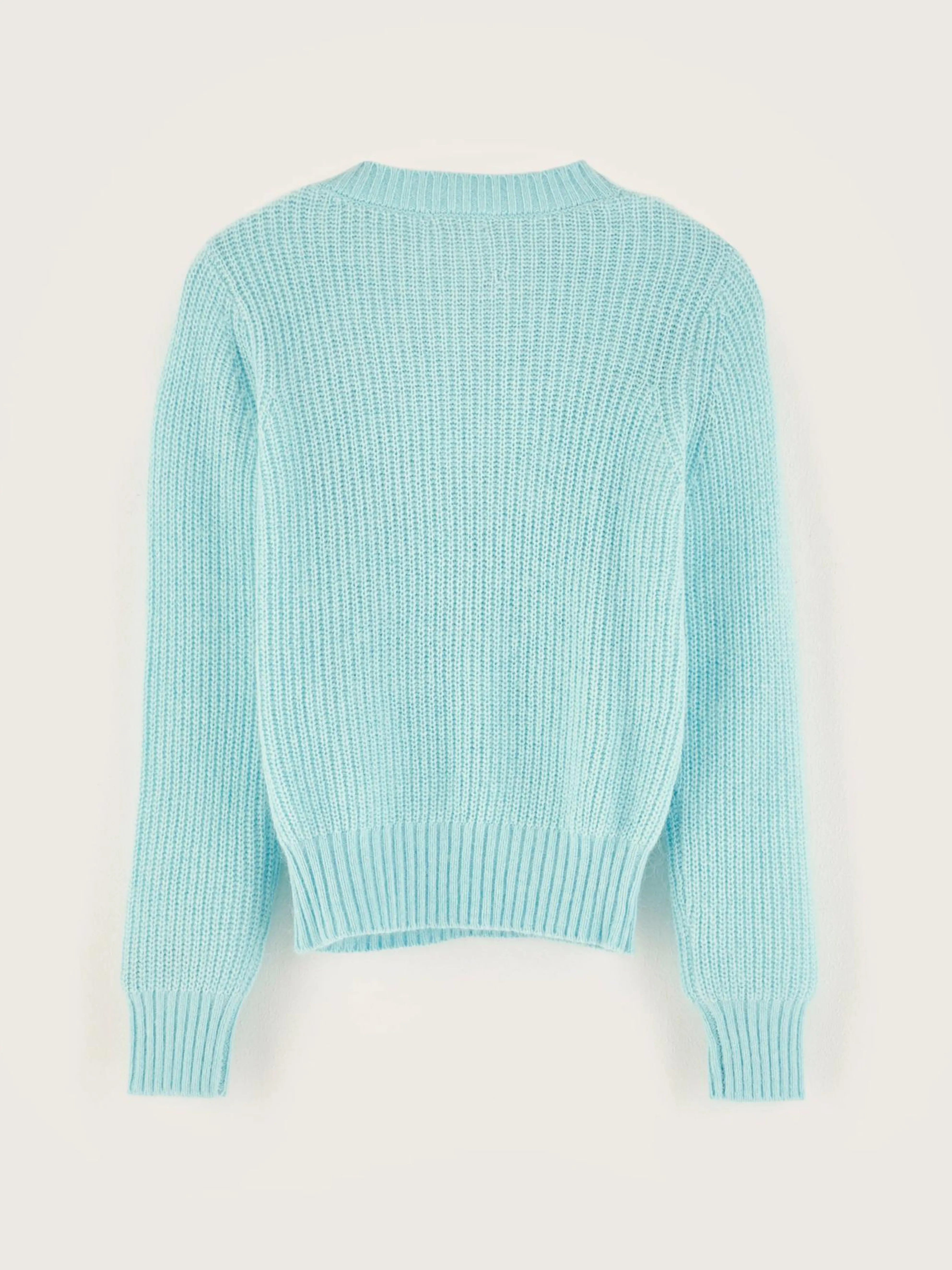Lichtblauwe klassieke trui met ronde hals.