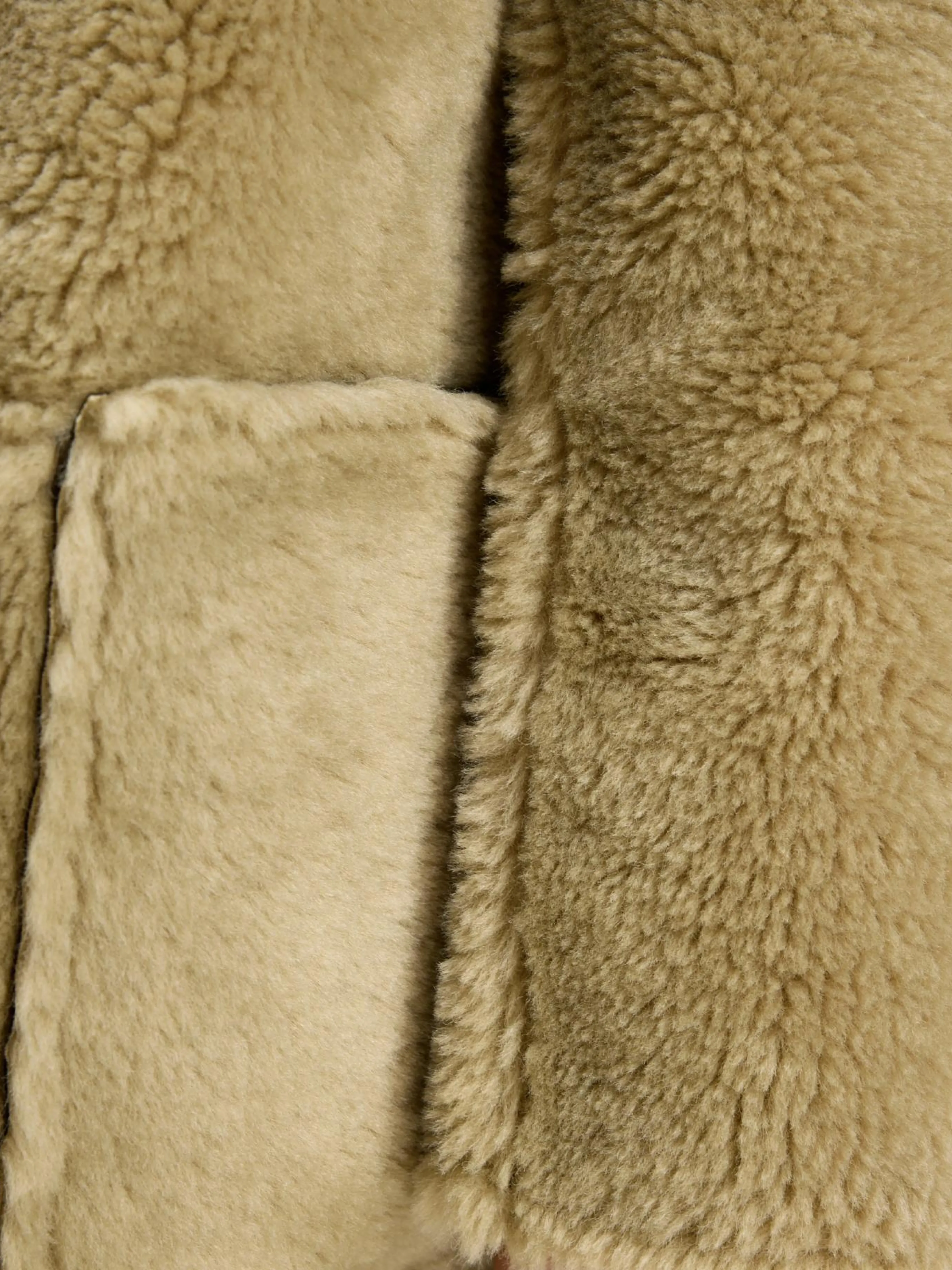Omkeerbare mantel met capuchon, met ritssluiting en klepzakken vooraan, van mosgroen imitatie-shearlingleer.