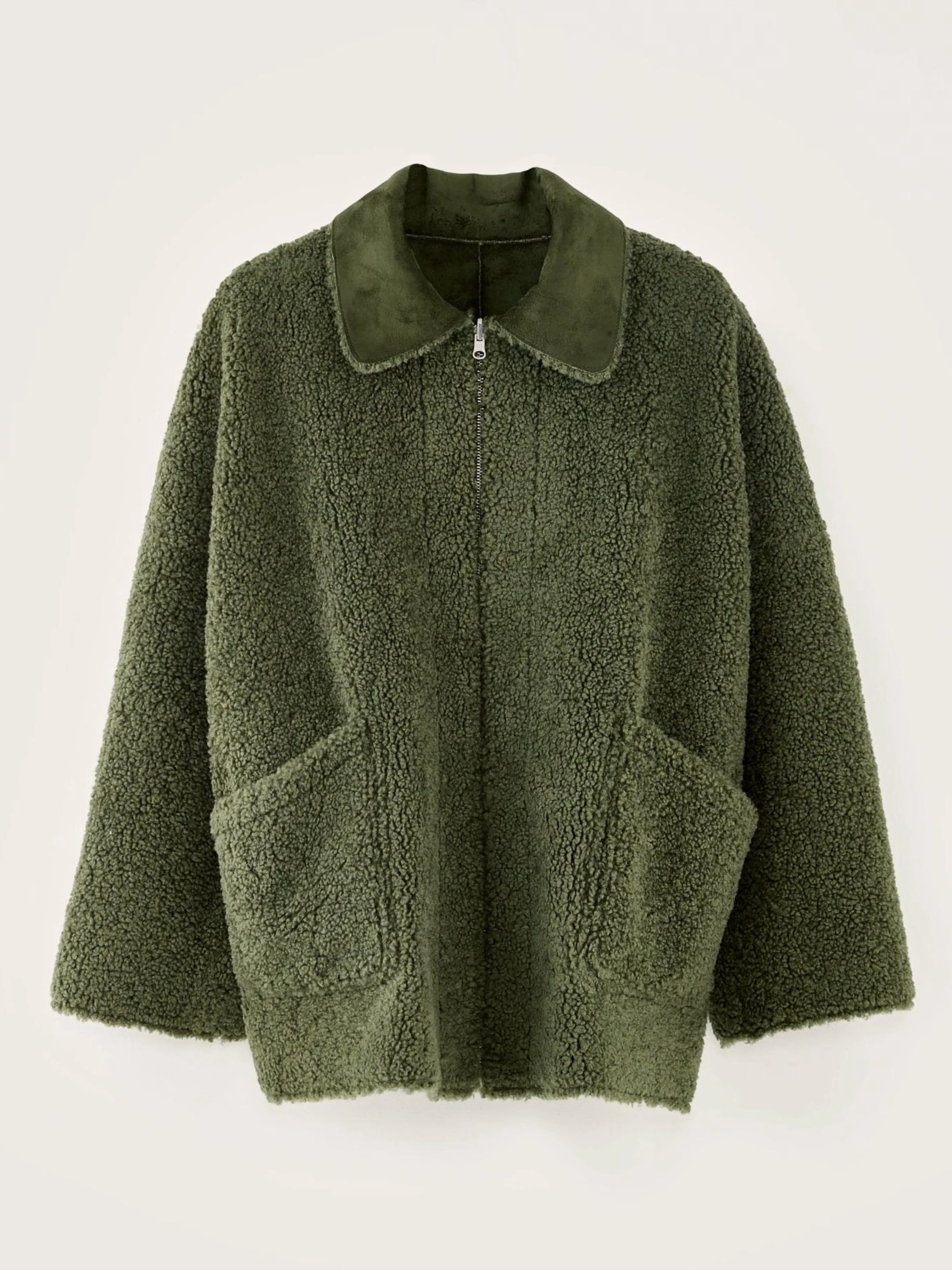 Omkeerbare oversizede jas, hemdmodel, met opgestikte zakken.