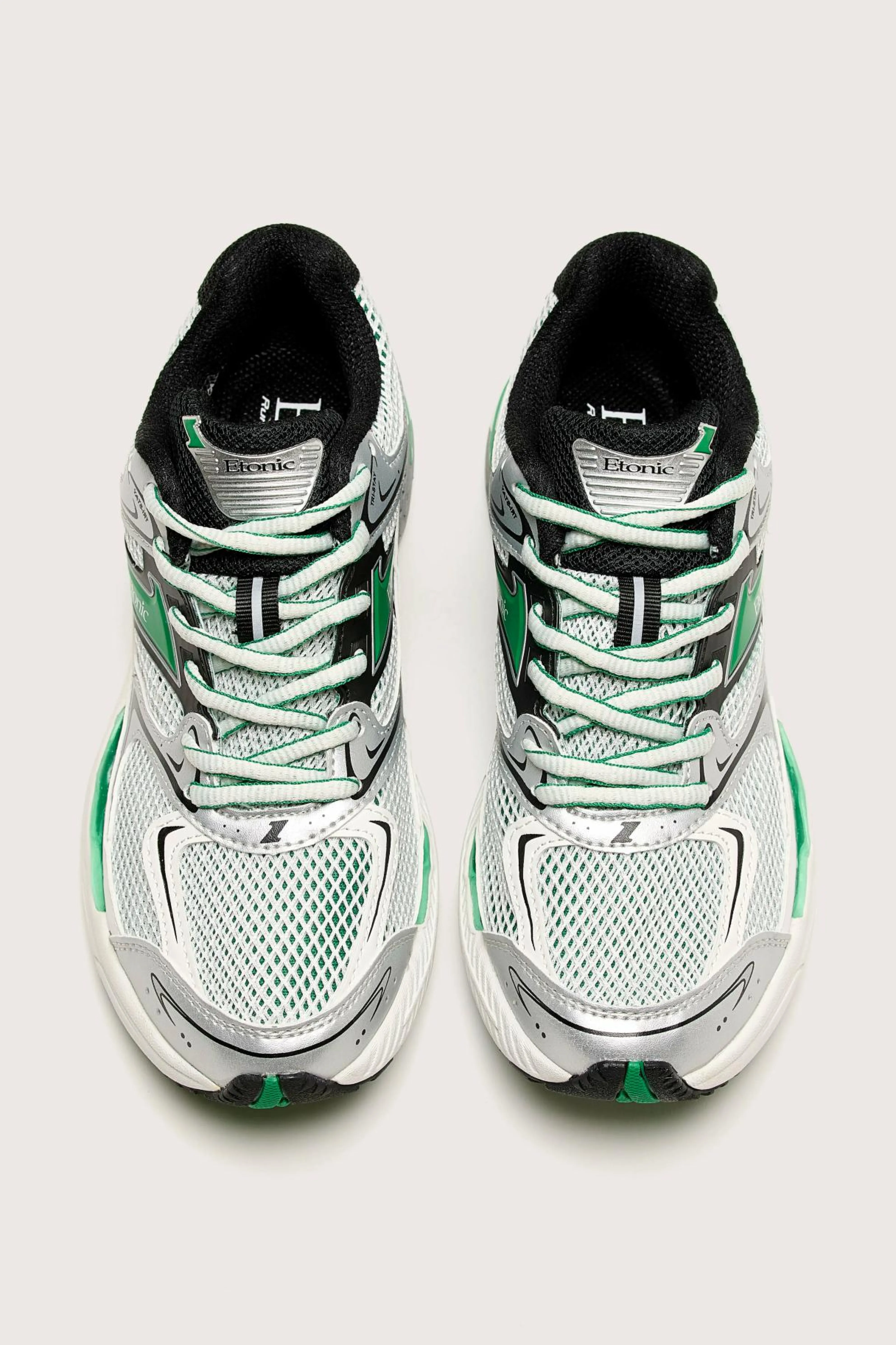 The Etonic Evolution sneaker has a technical textile and mesh upper, tonal laces, and a durable rubber outsole designed for running.