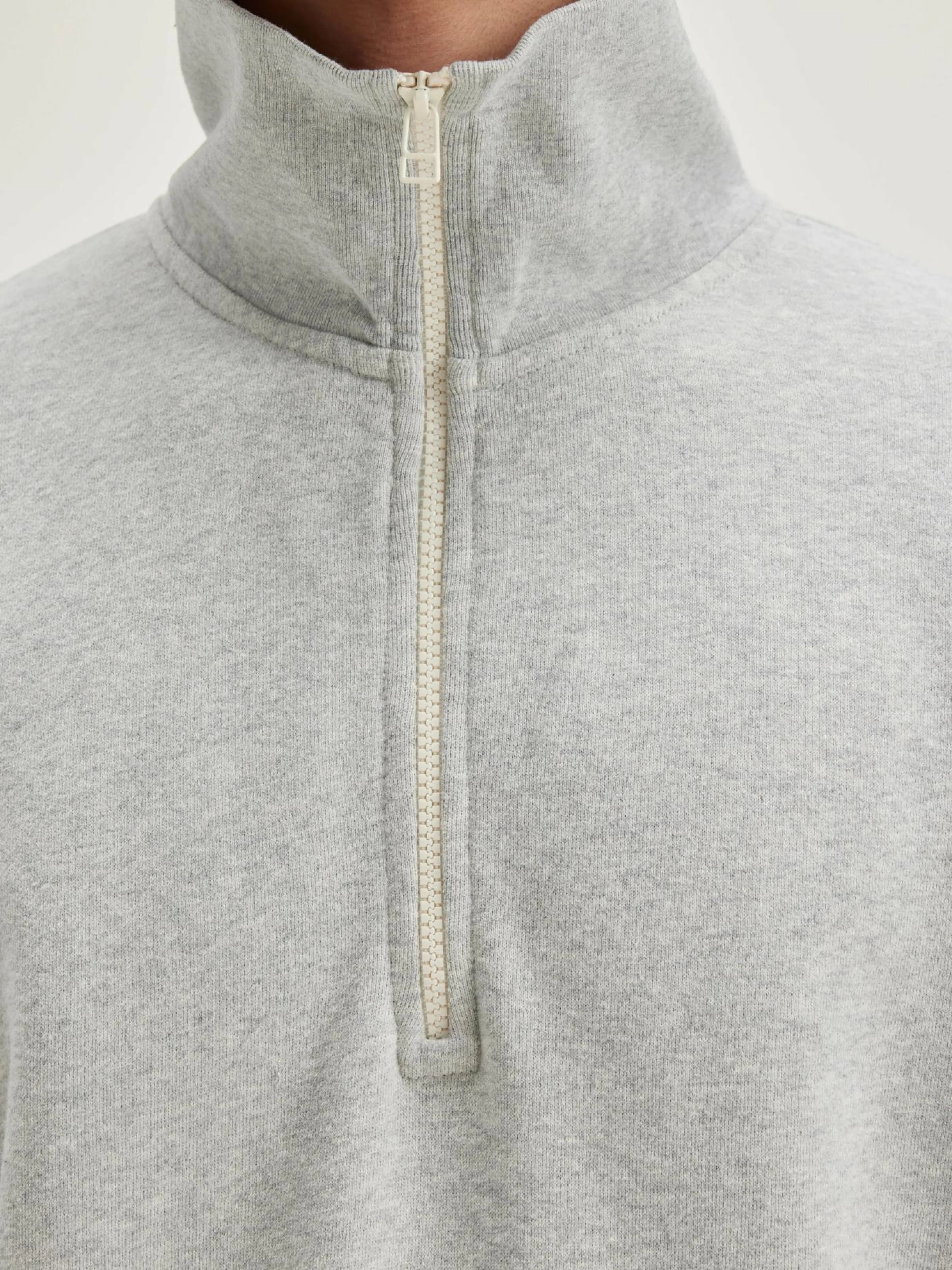 Oversized sweatshirt met opstaande kraag en halve ritssluiting, van heidegrijze katoenjersey.