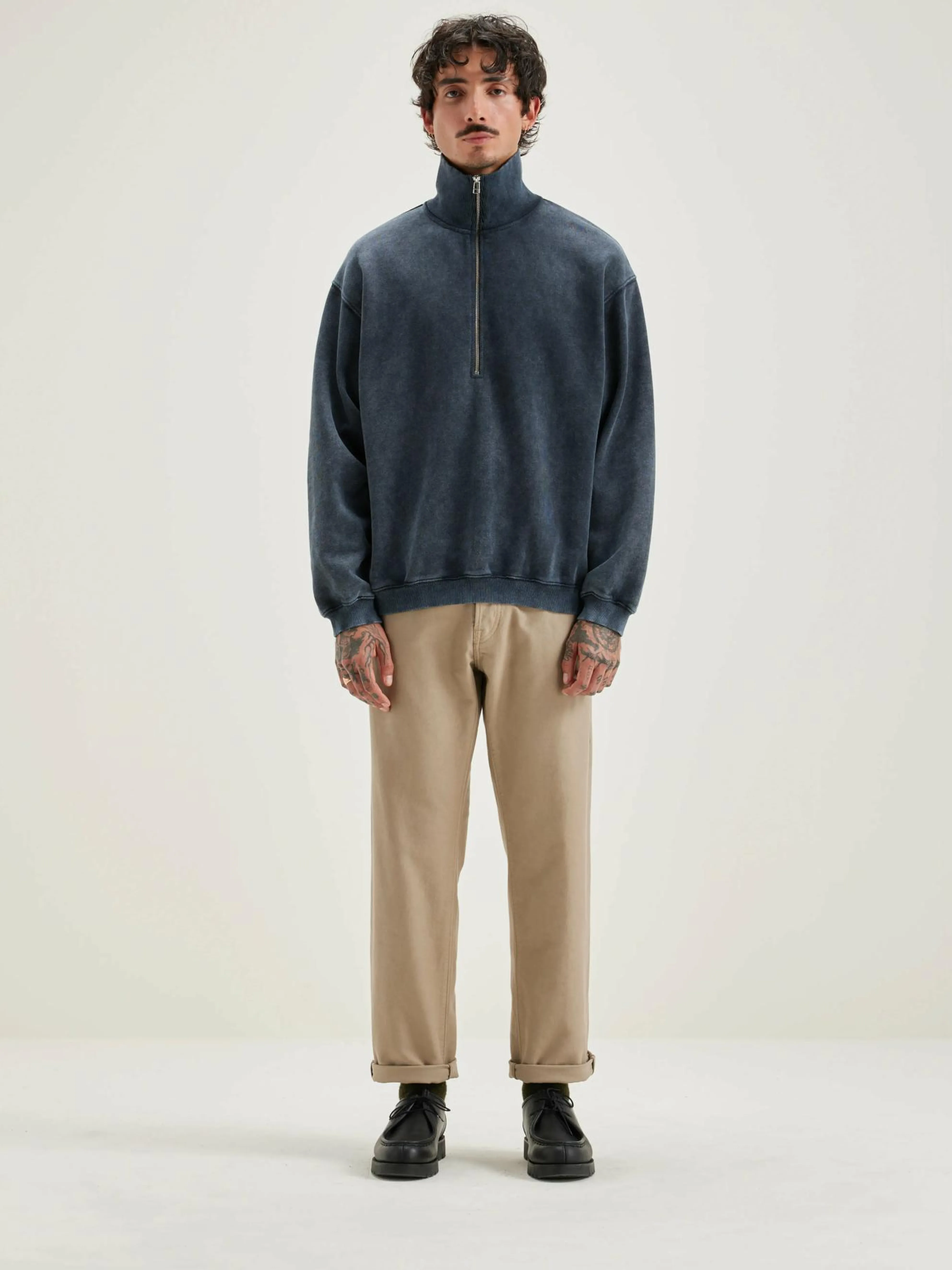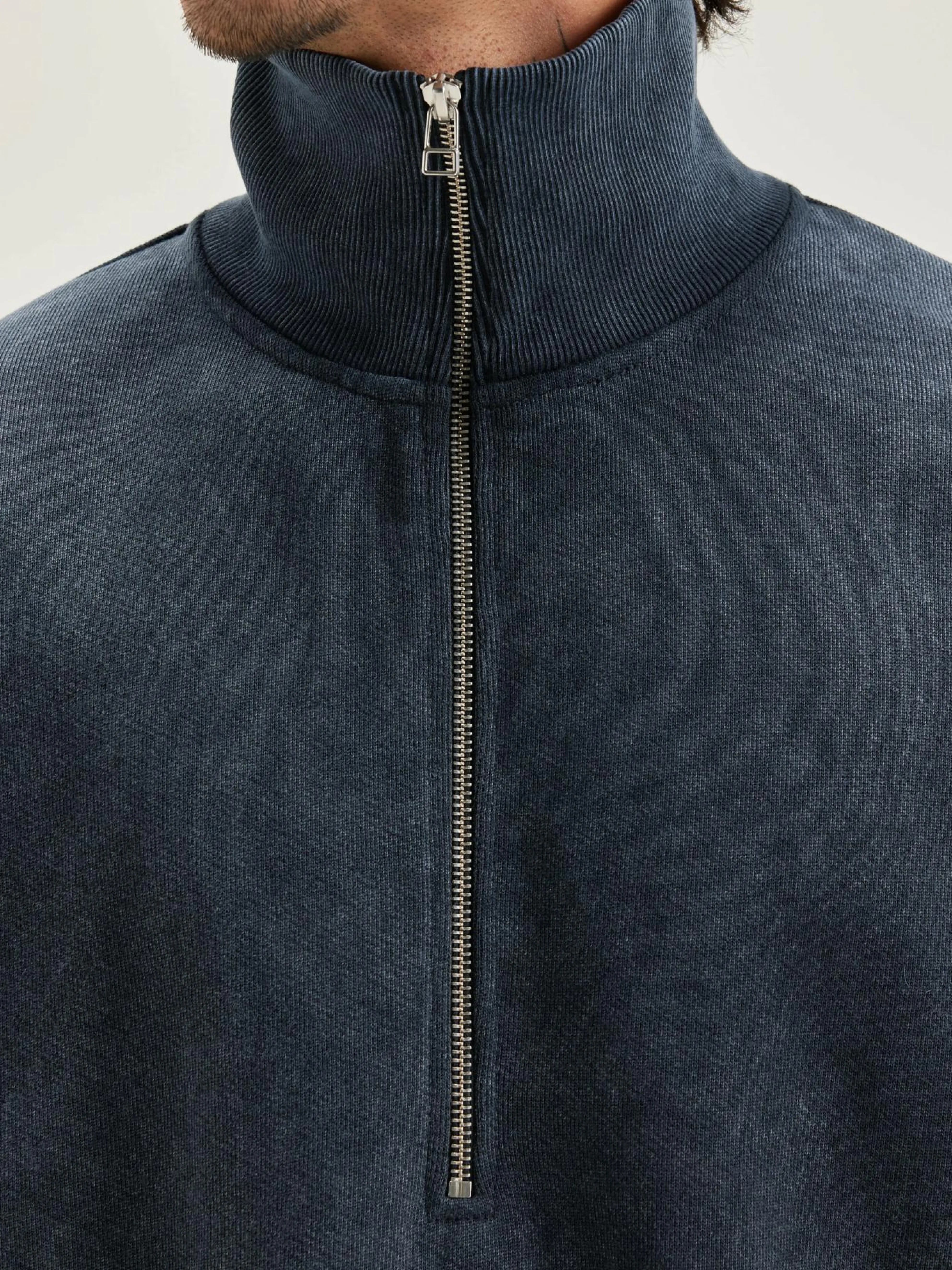 Relaxed sweatshirt met opstaande kraag en halve ritssluiting, van zwartblauw katoenjersey.
