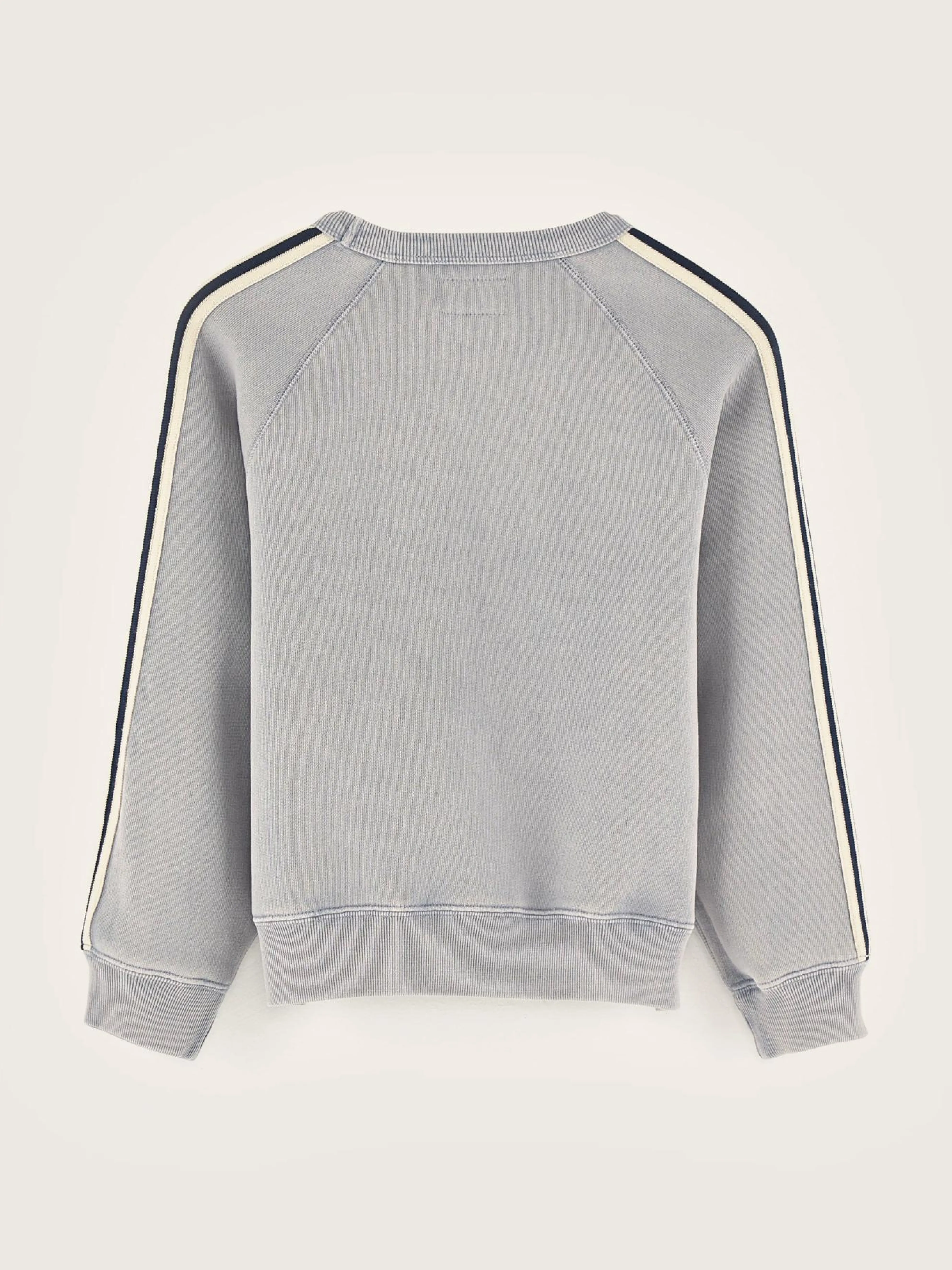 Klassiek grijs sweatshirt met contrasterende strepen langs de mouwen.