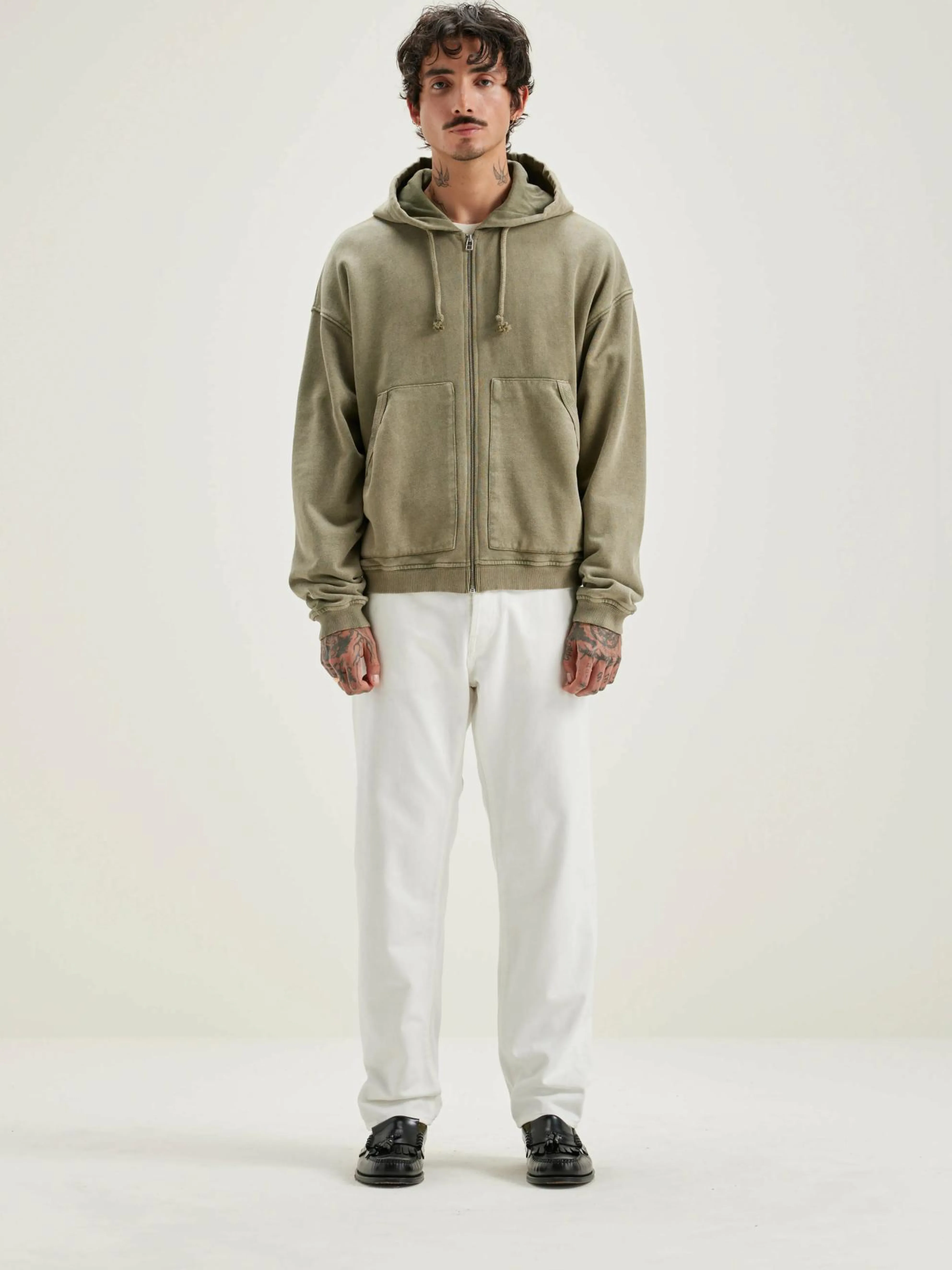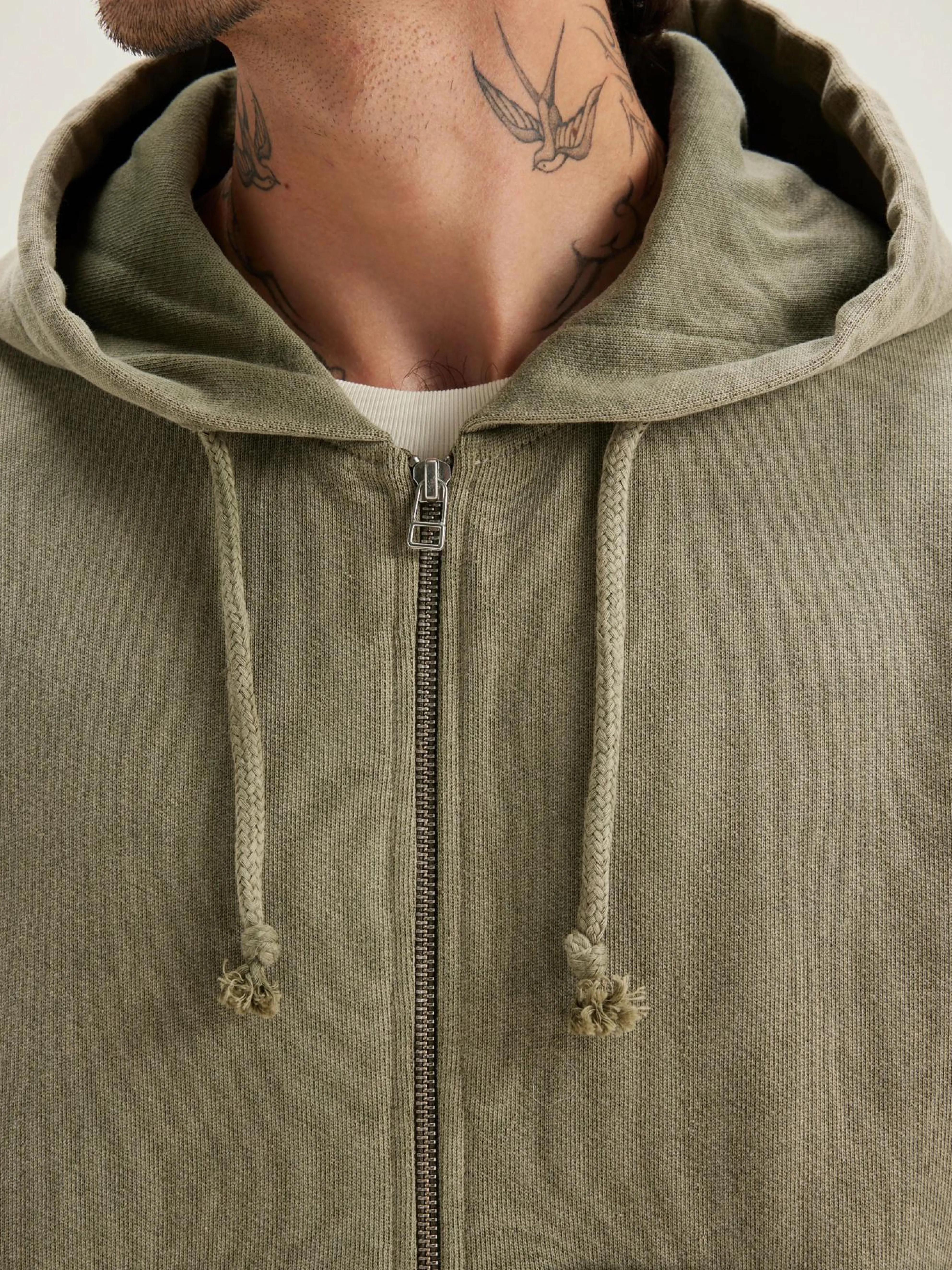Oversizede hoodie met ritssluiting vooraan, van kakigroene zware katoenjersey.