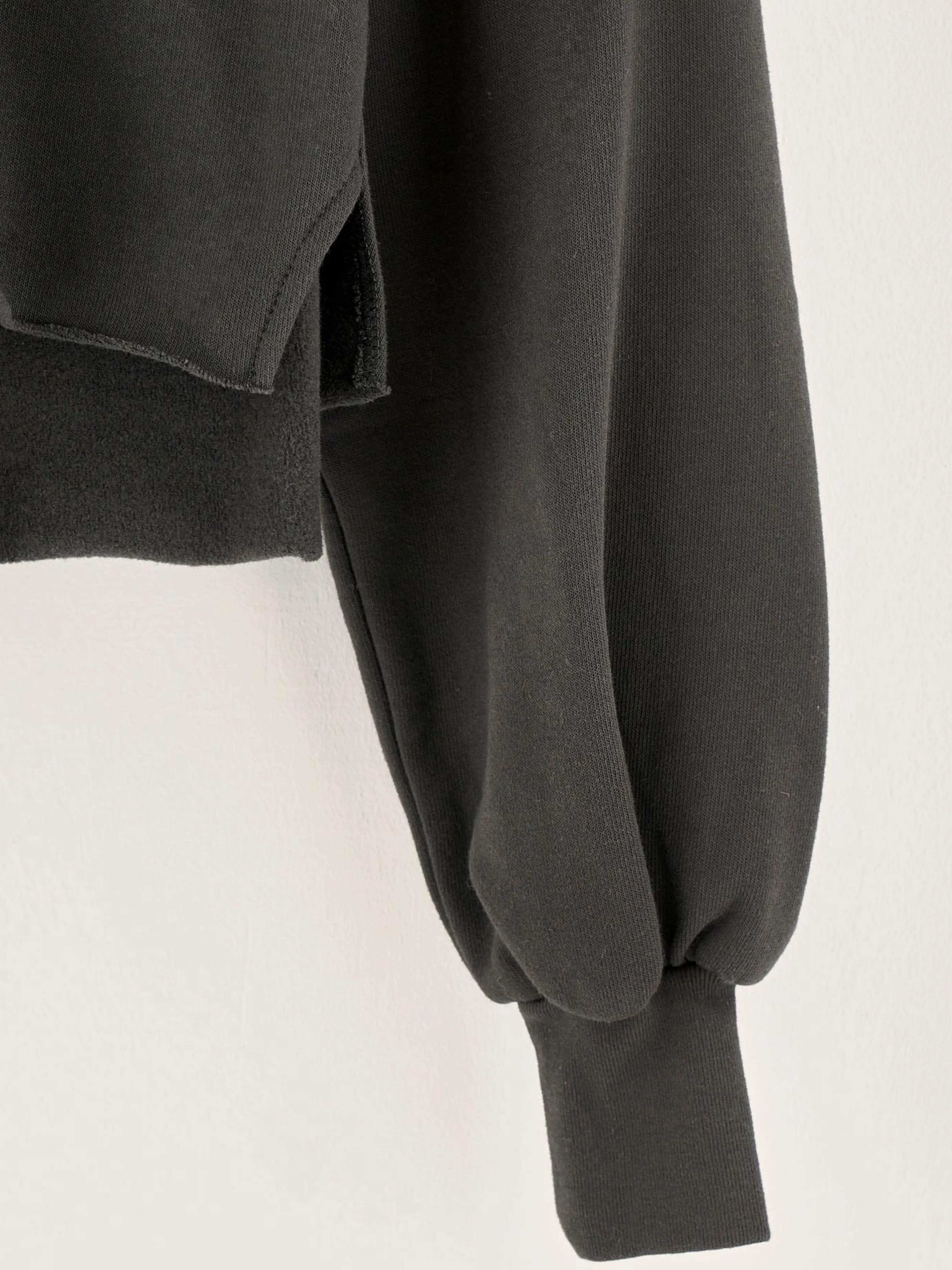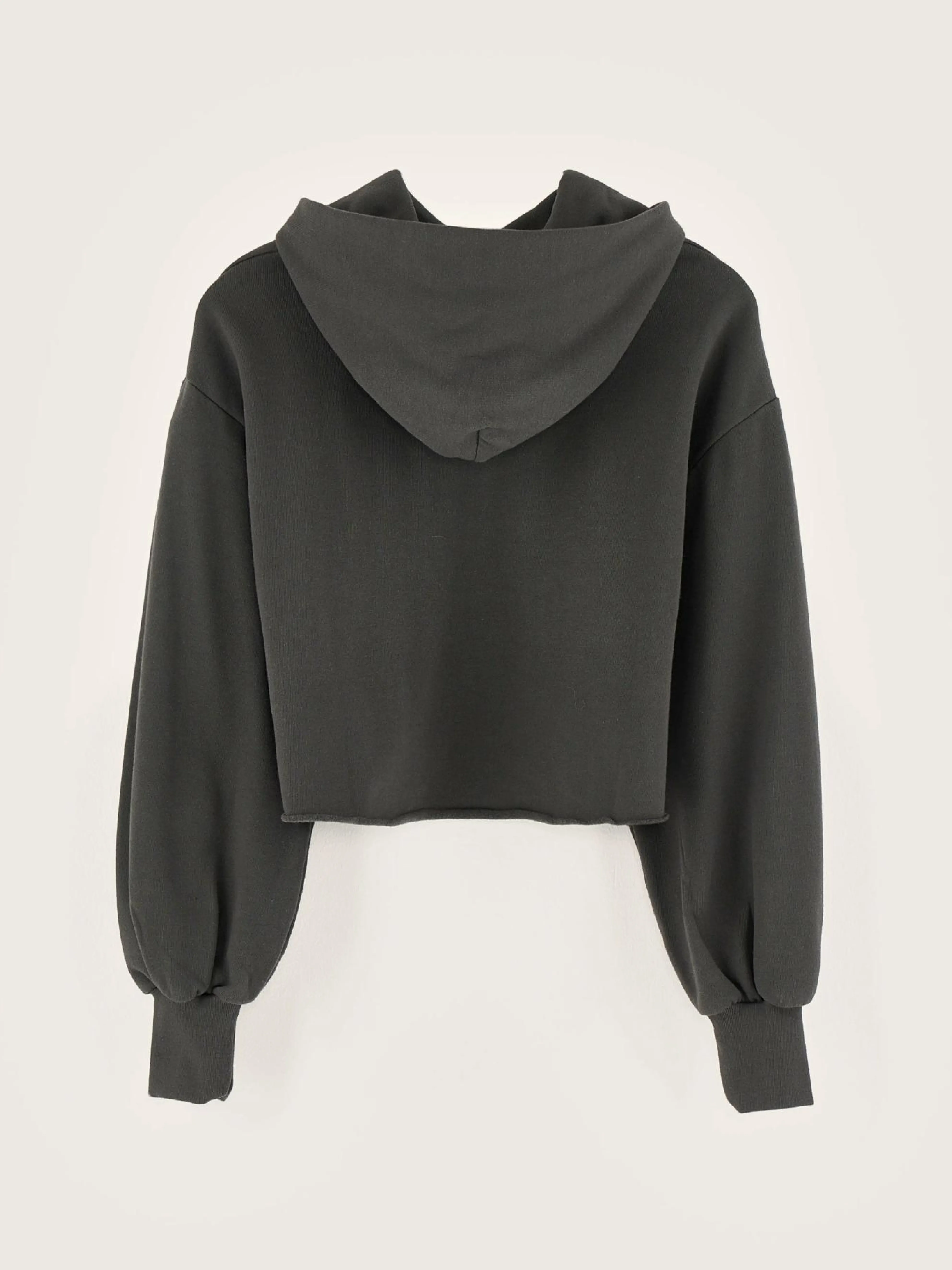 Losse, zwarte cropped hoodie van sponsfleece.