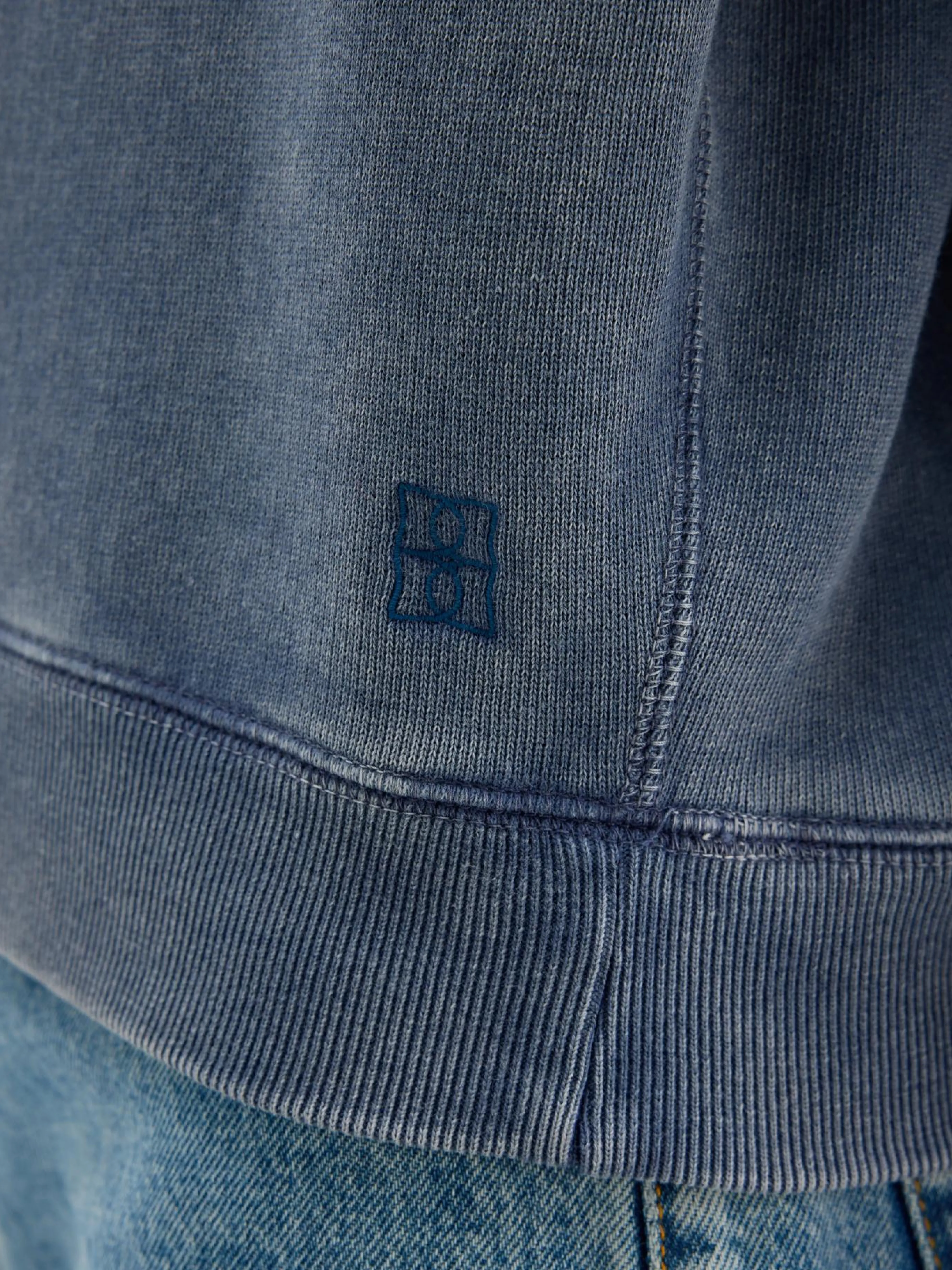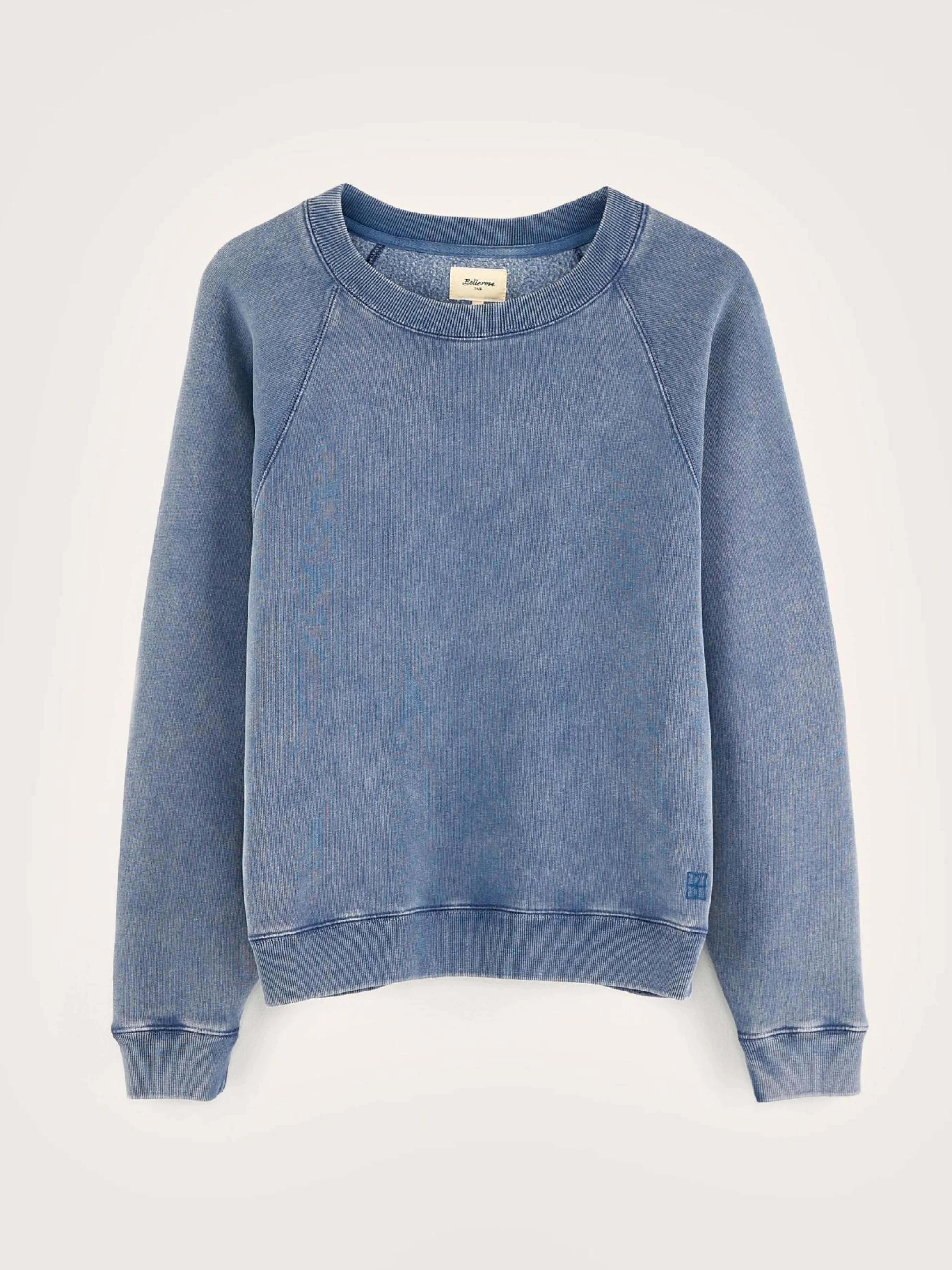 Relaxed sweatshirt van blauwe fleecestof, met raglanmouwen.