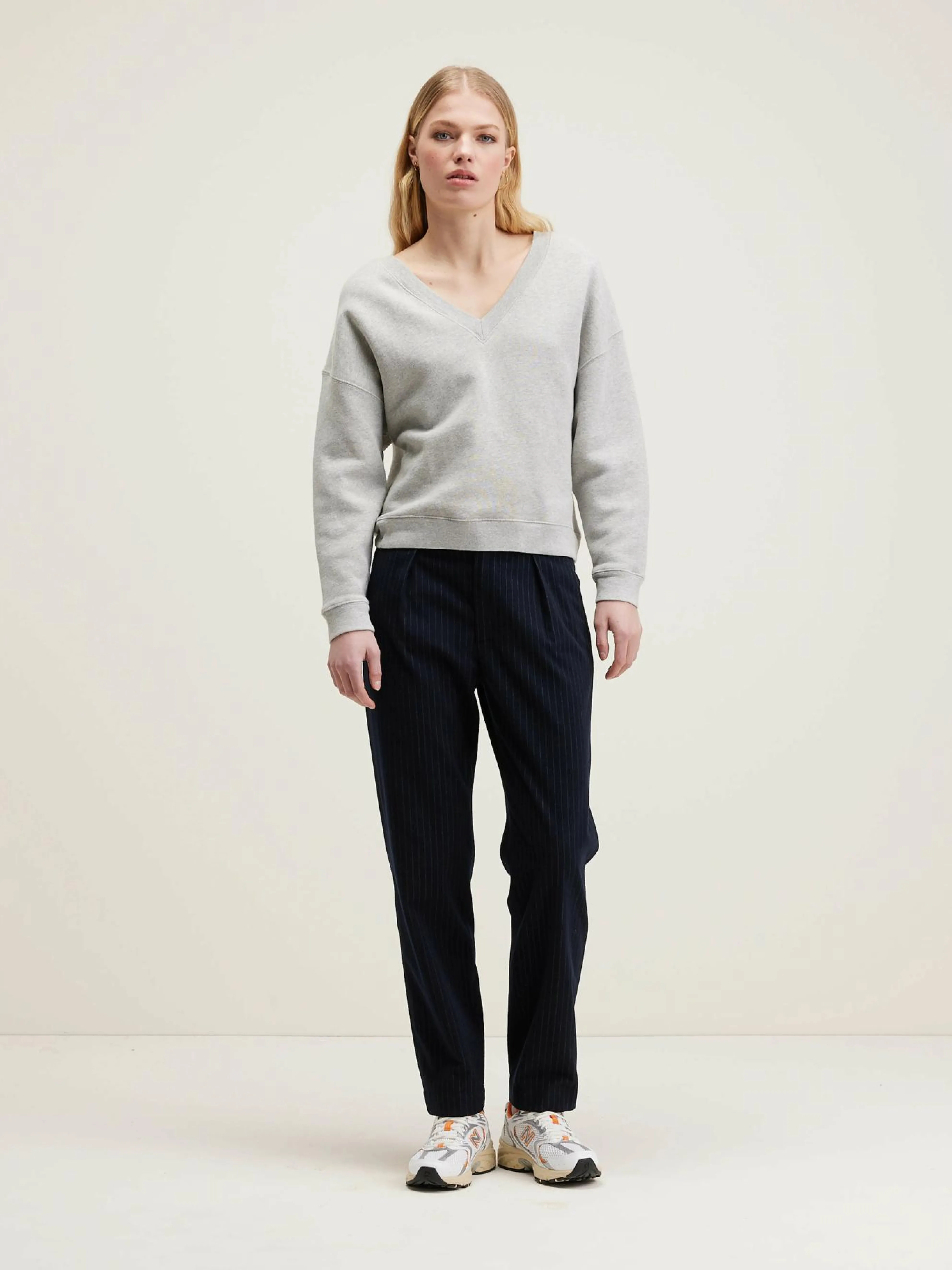 Relaxede sweatshirt met v-hals in heidegrijze fleece.