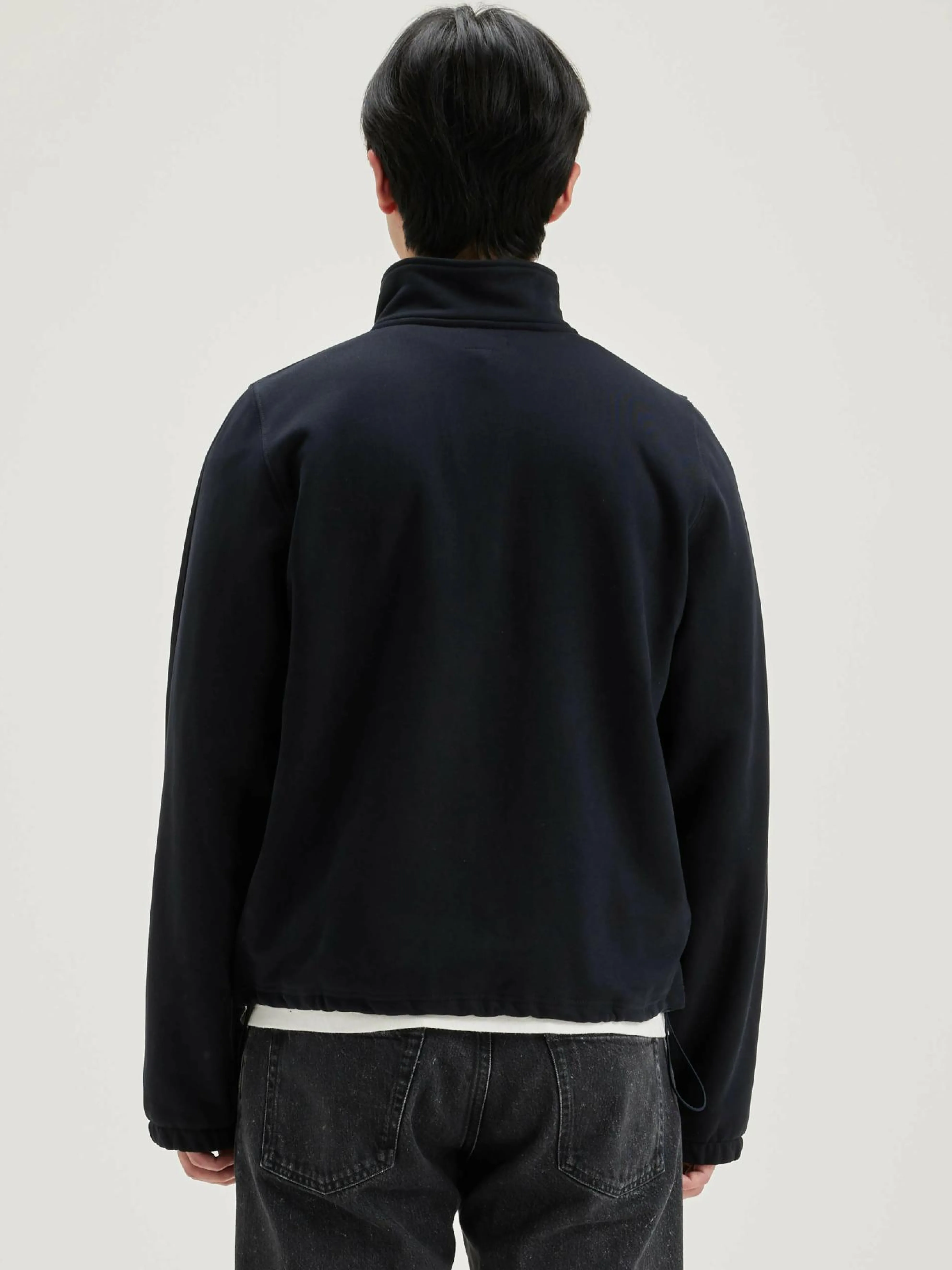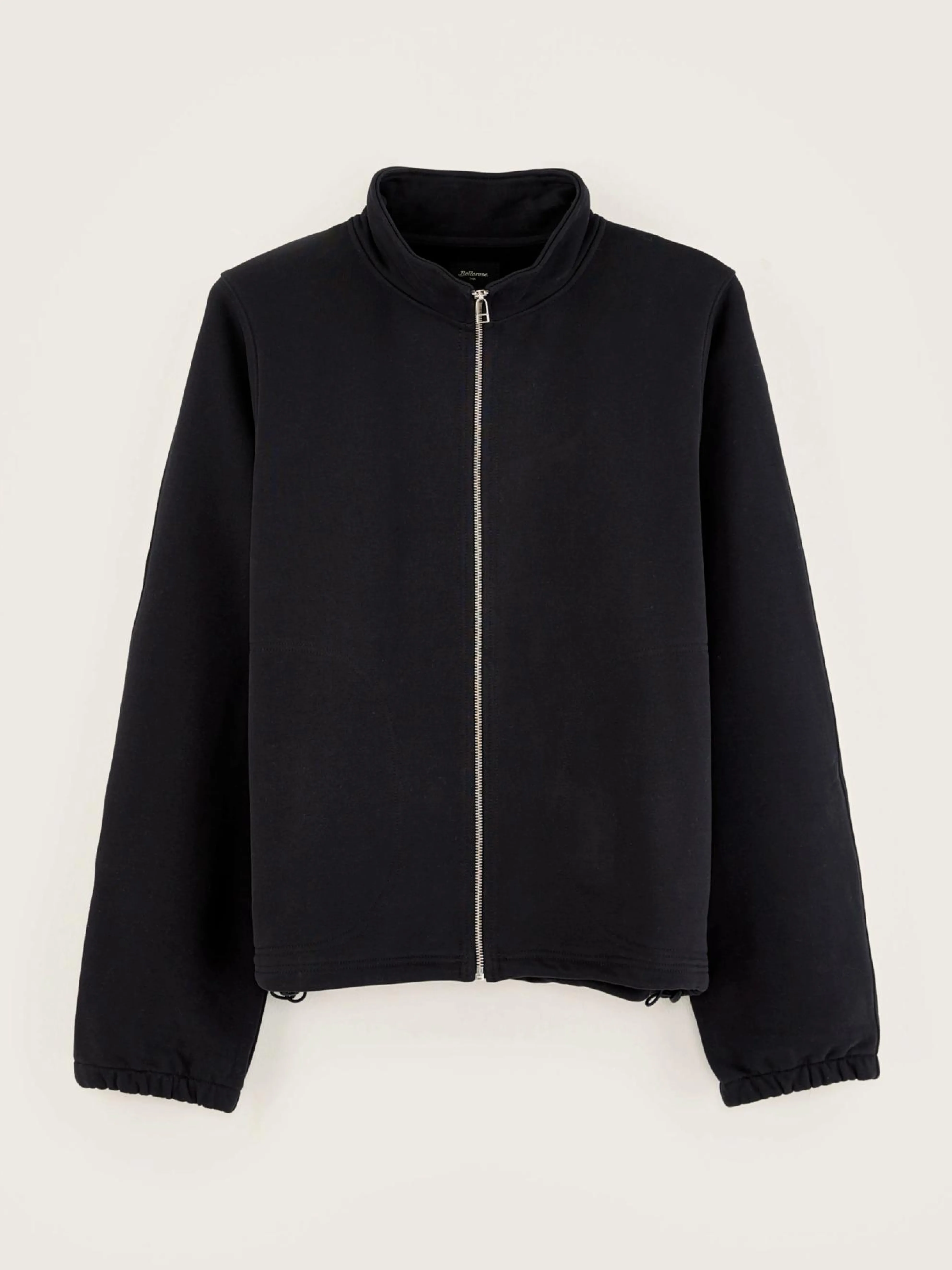 Relaxed sweatshirt met ritssluiting vooraan, van zwartblauwe jersey met neopreeneffect.