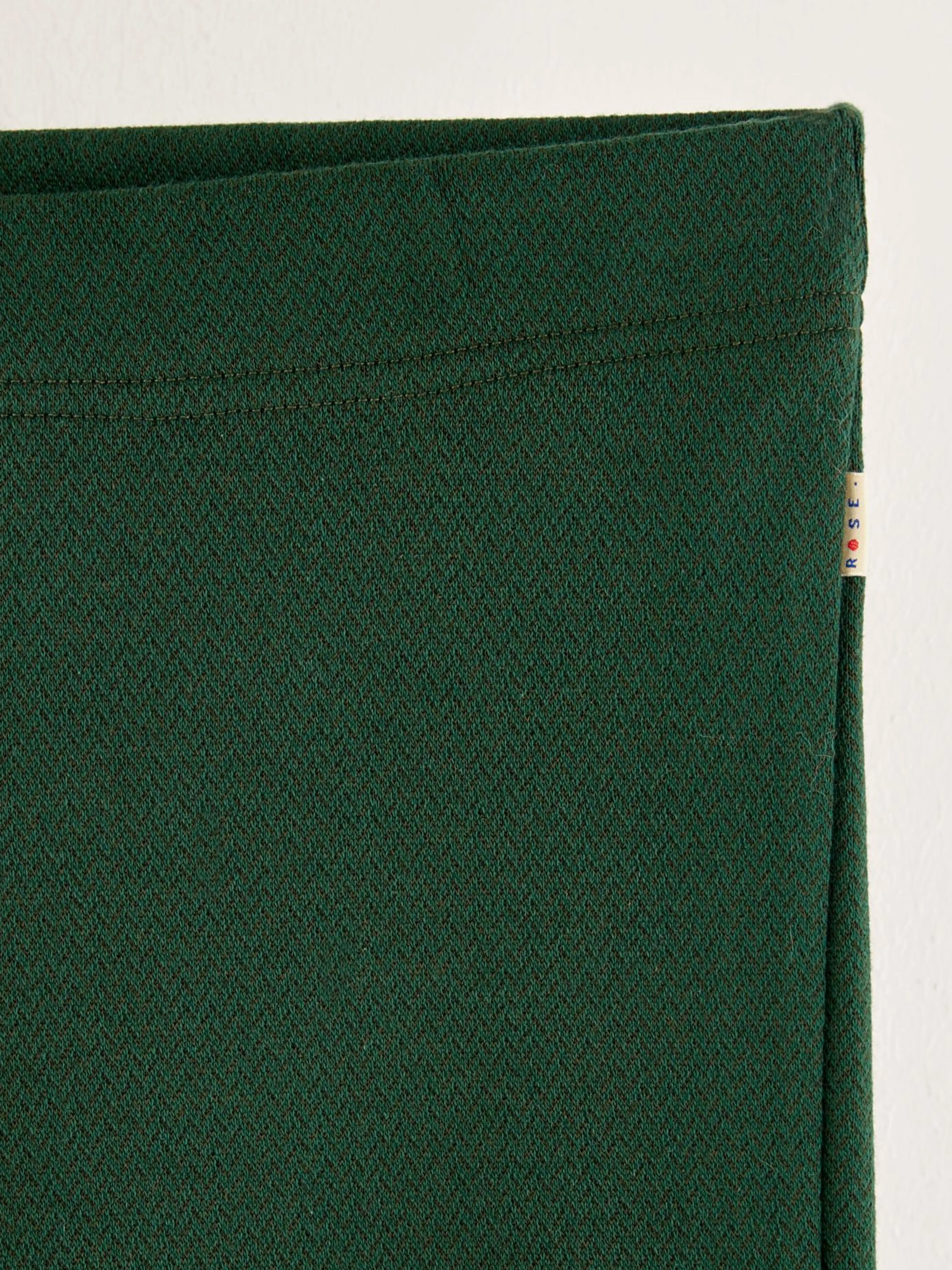Flesgroene broek met flared pijpen en elastische tailleband.