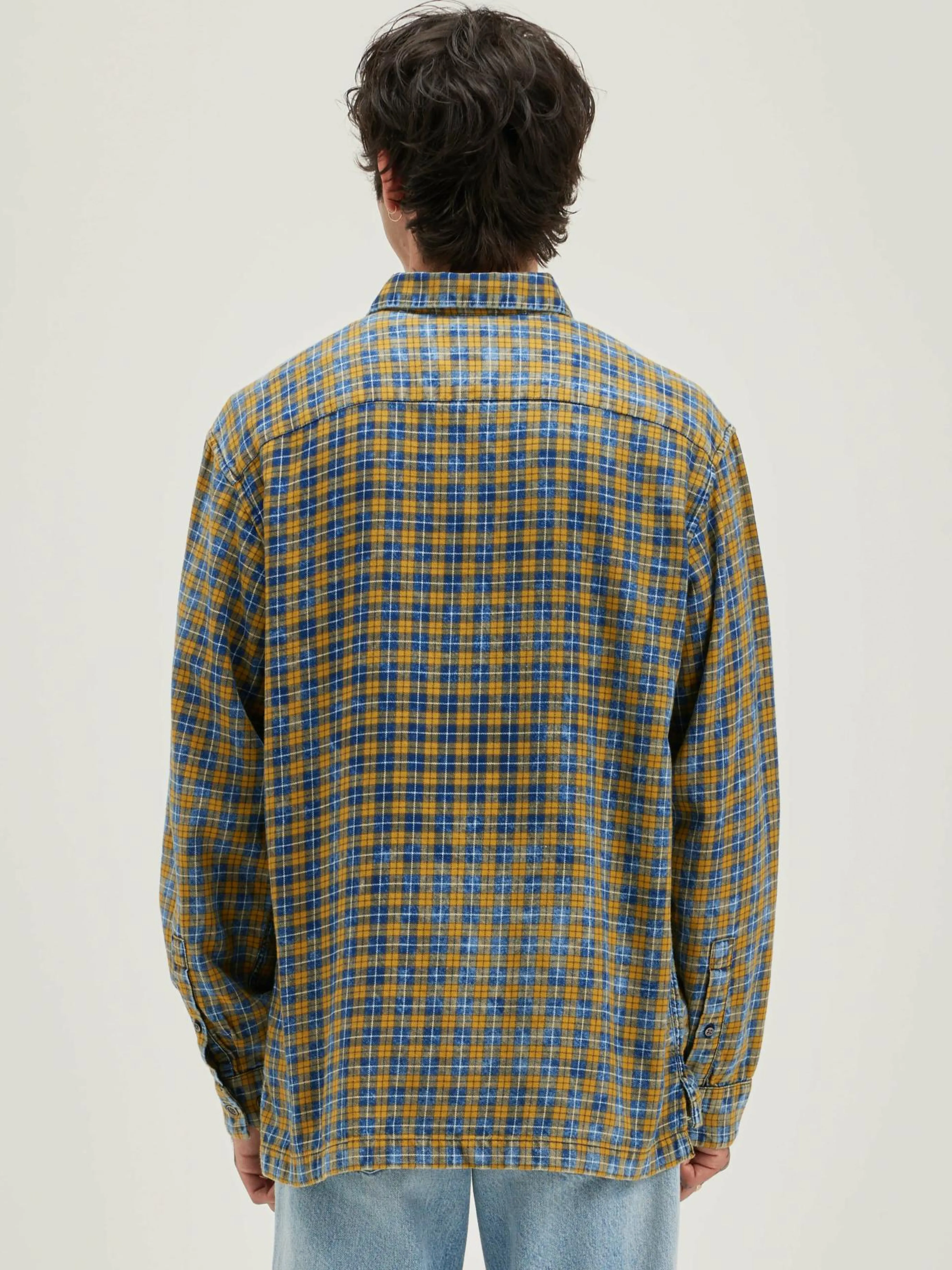 Relaxed overhemd van popeline katoen, met indigo ruitjes.