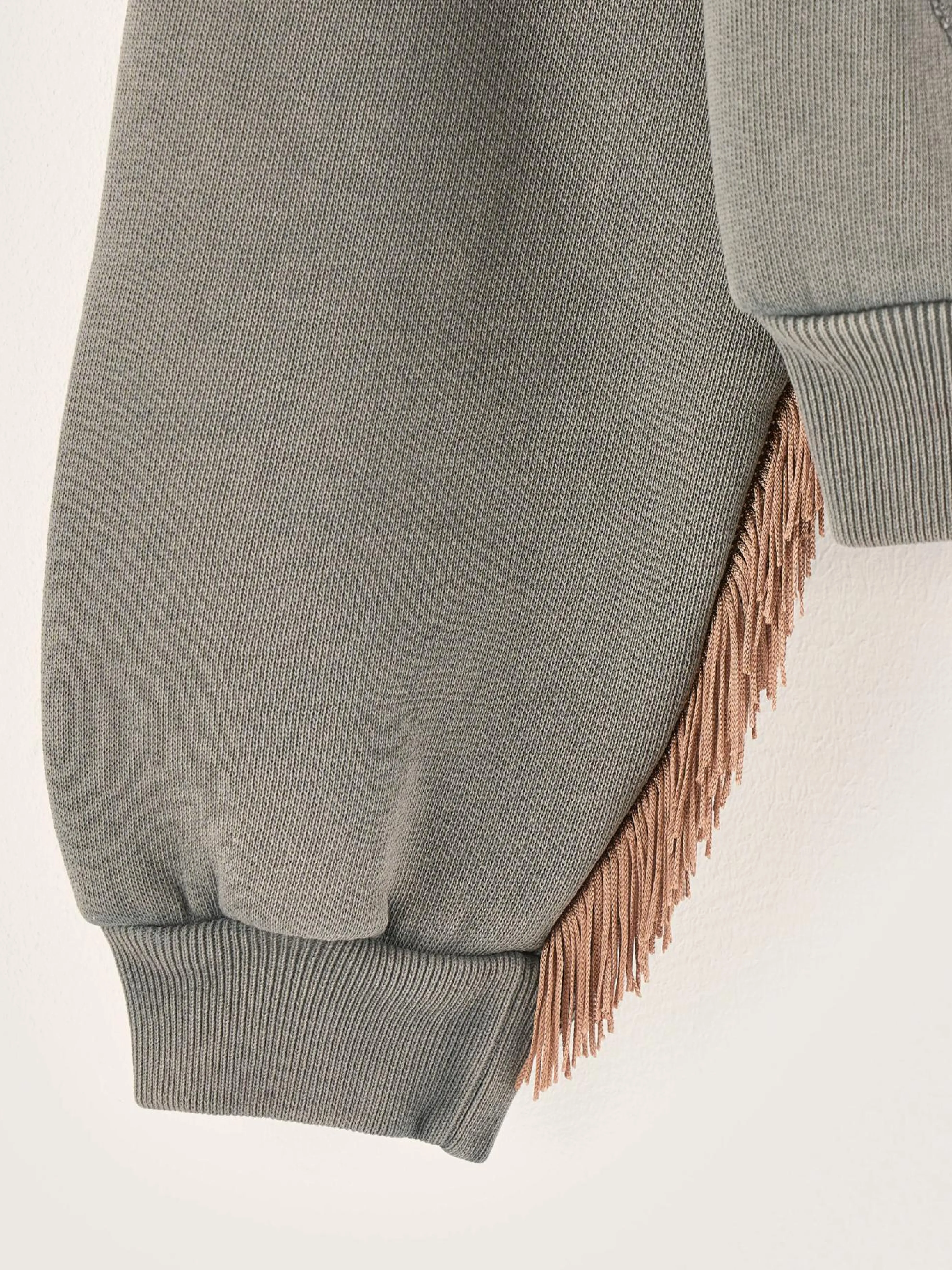 Donkergrijs, comfortabel sweatshirt met franjes en een opstaande kraag.