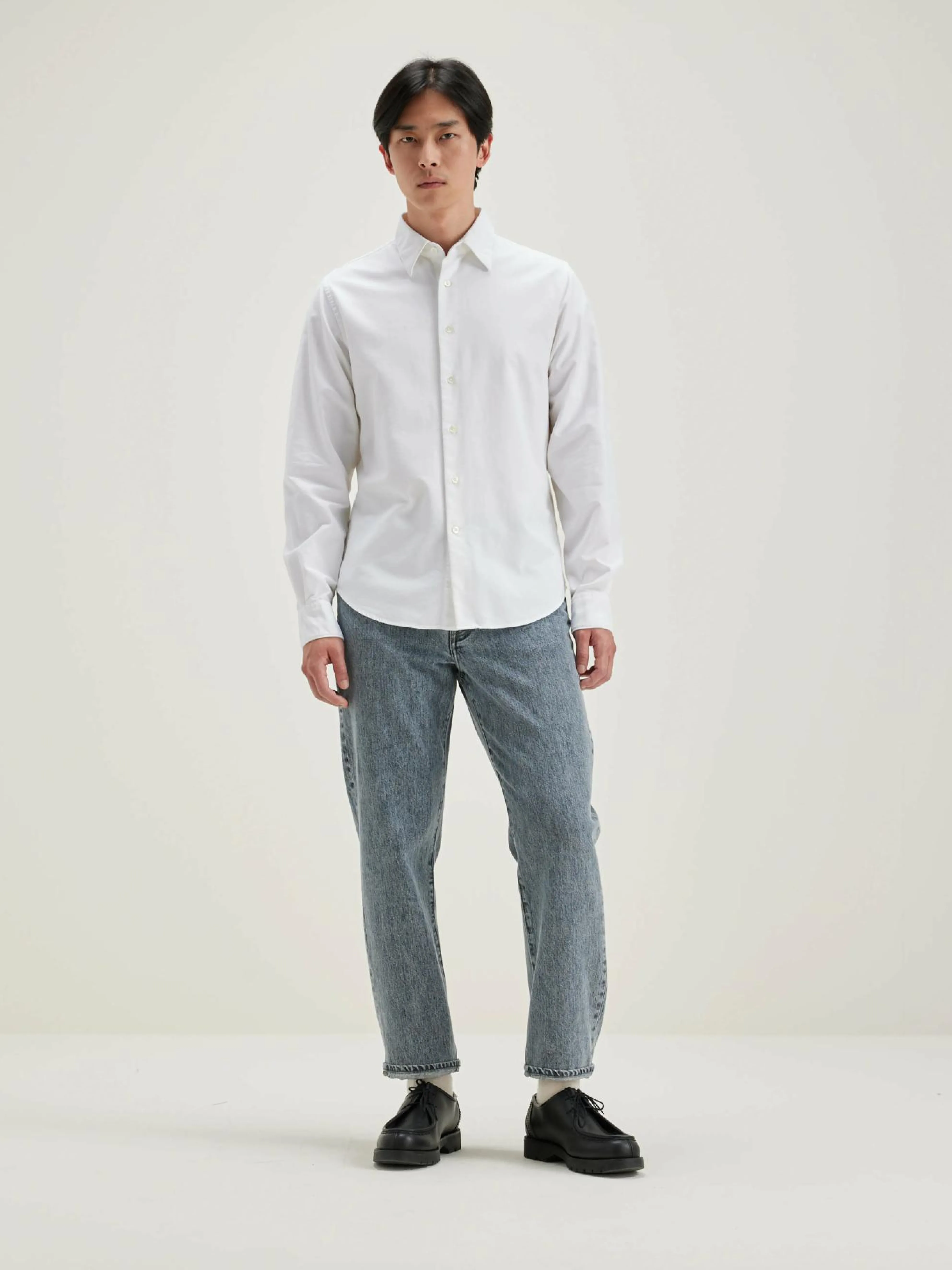 Klassiek overhemd van wit popeline katoen.