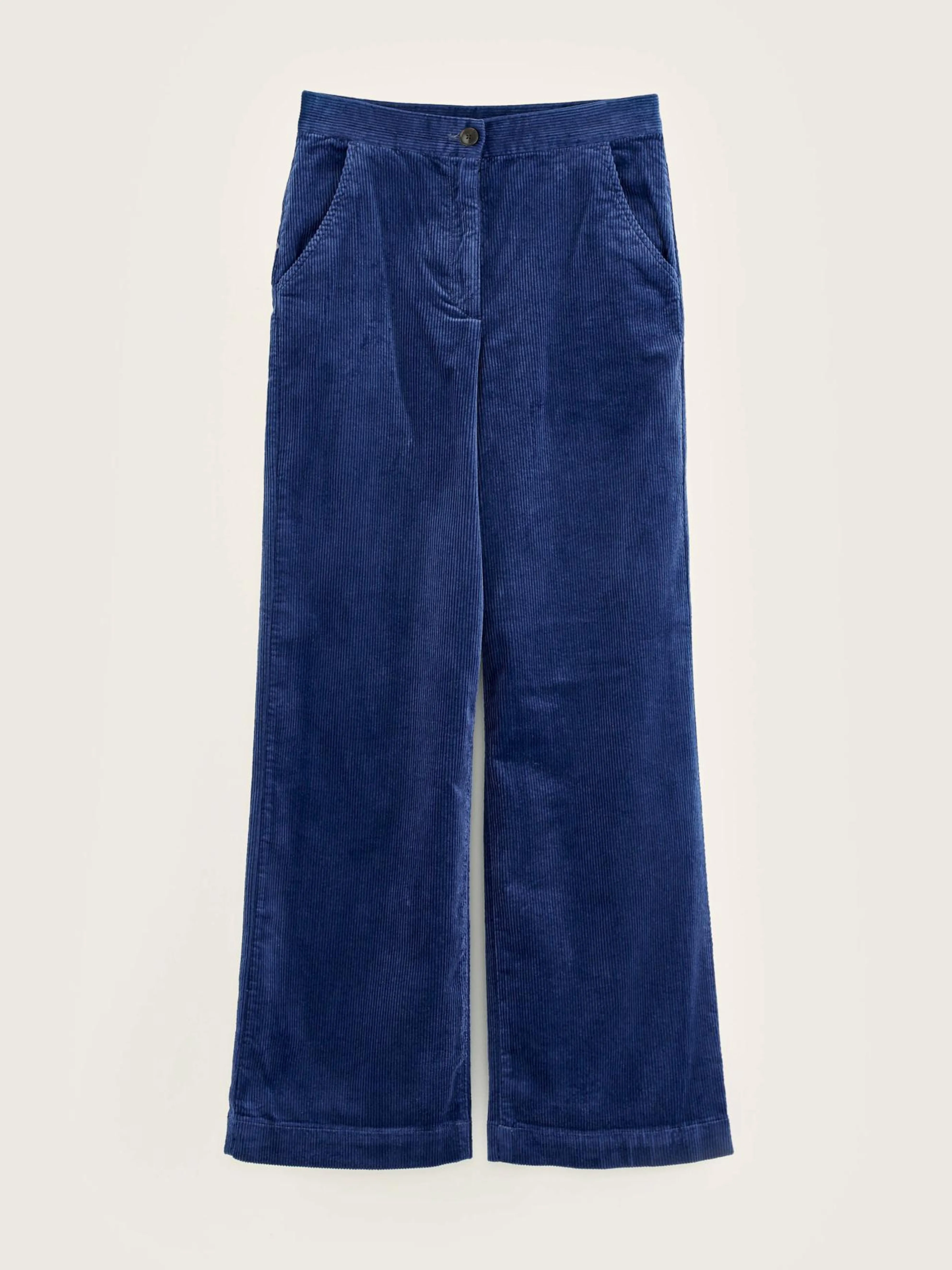 Corduroy high-waist broek met rechte, wijde pijpen in blauw.