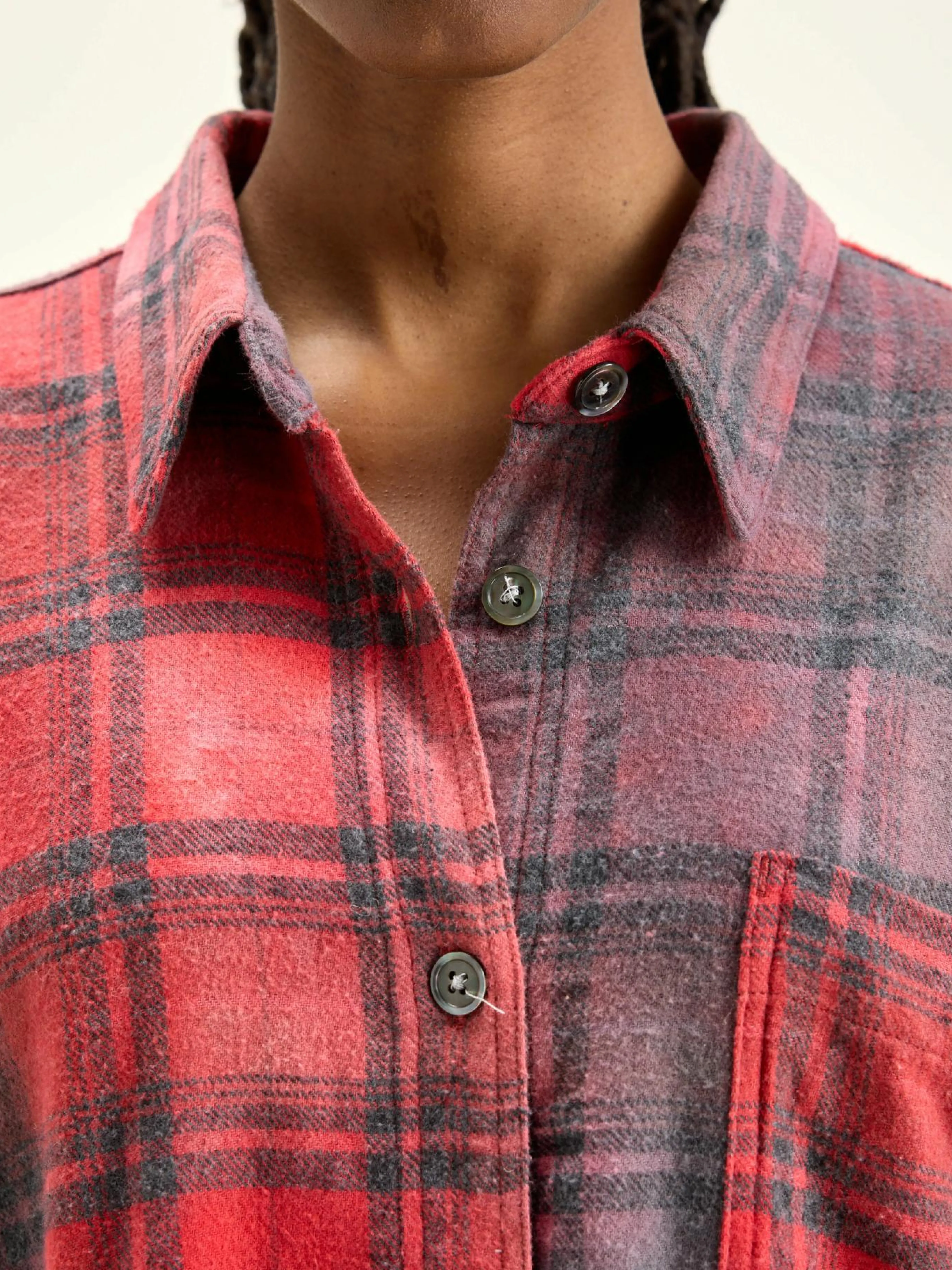 Oversizede hemdjurk van geborsteld katoen, met rode en zwarte ruiten en een gebleekte look.