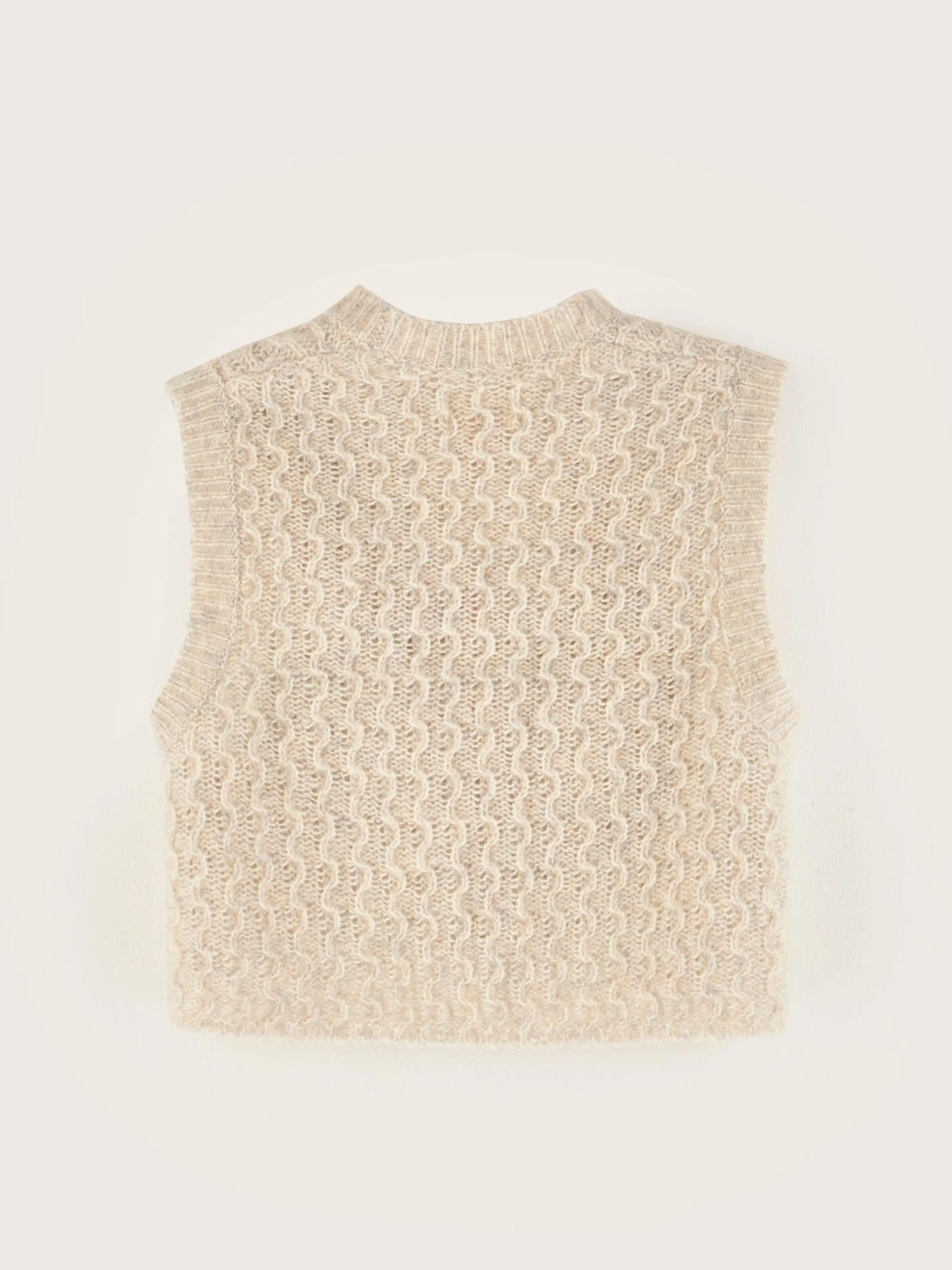 Oestergrijs mouwloos, comfortabel, gebreid vest.