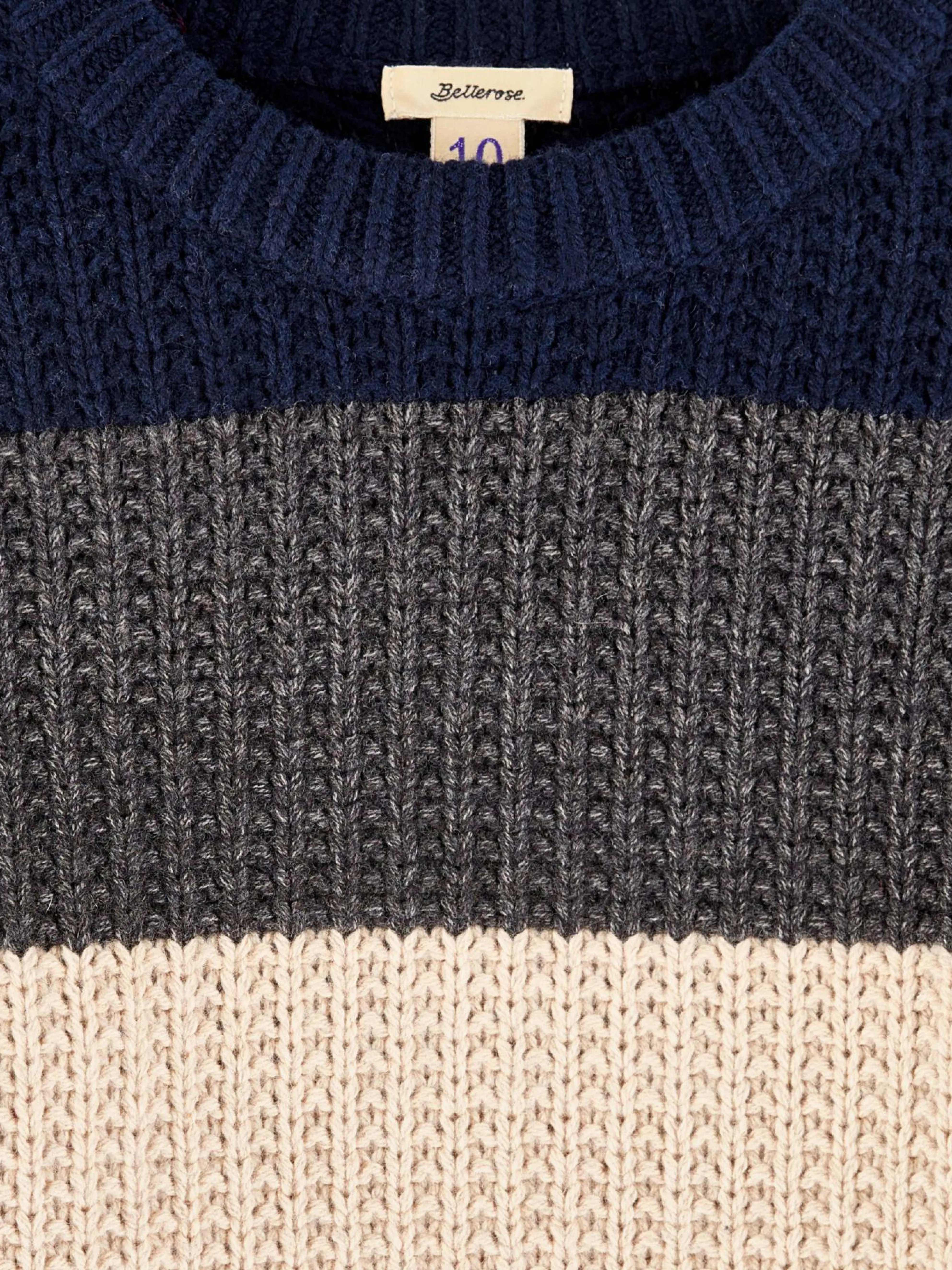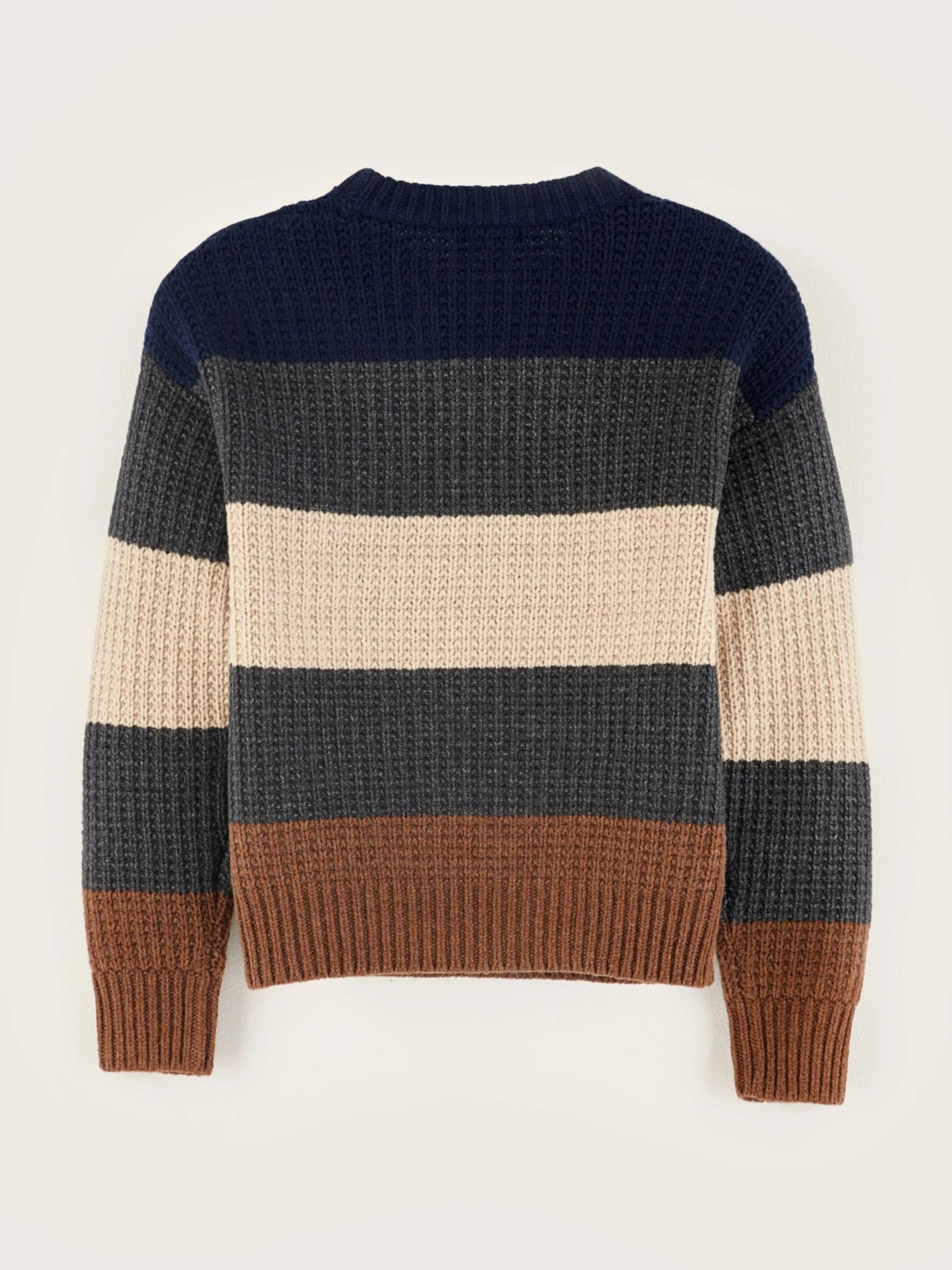 Comfortabele sweater met V-hals, van wafeltricot met brede strepen.