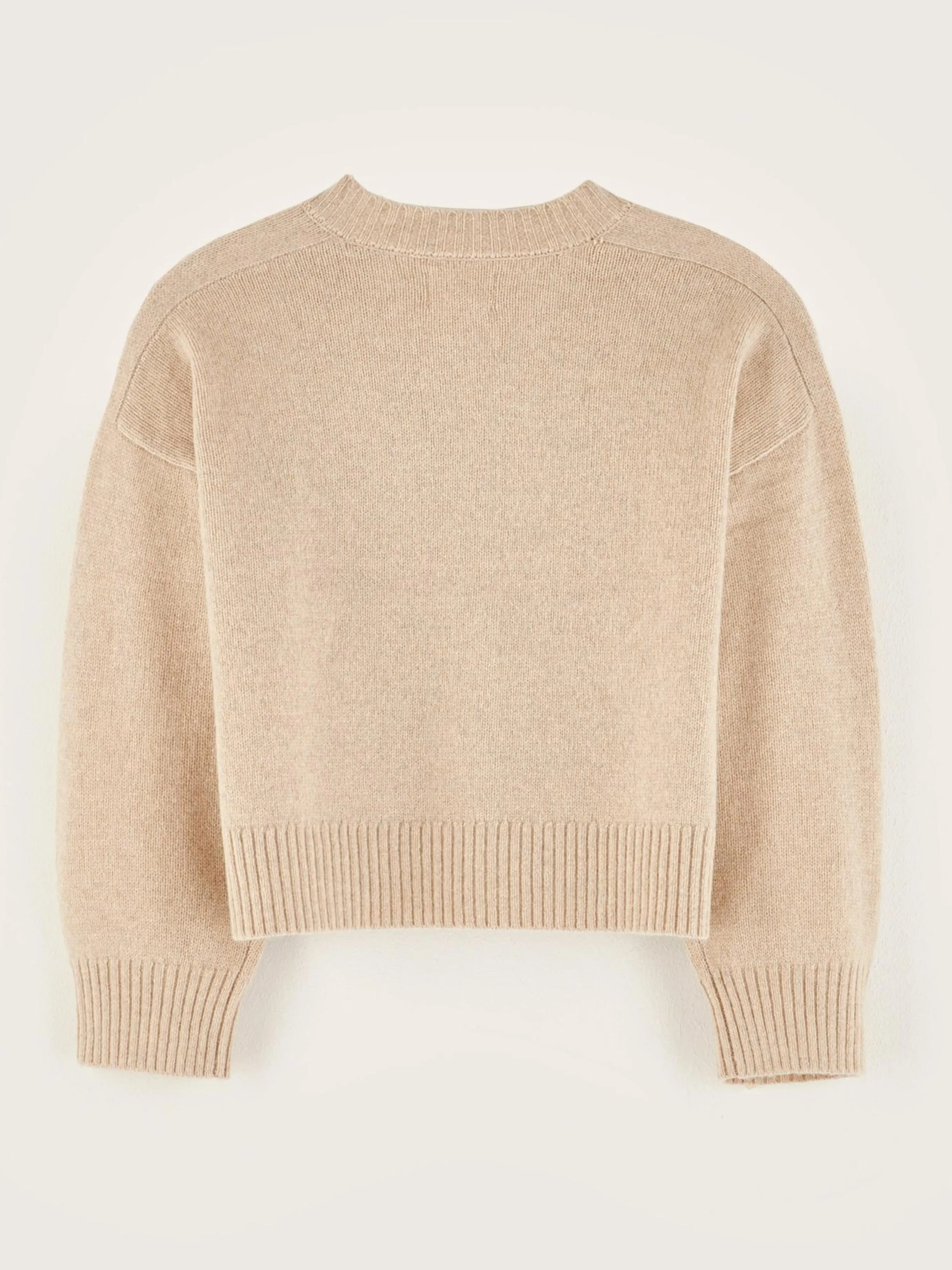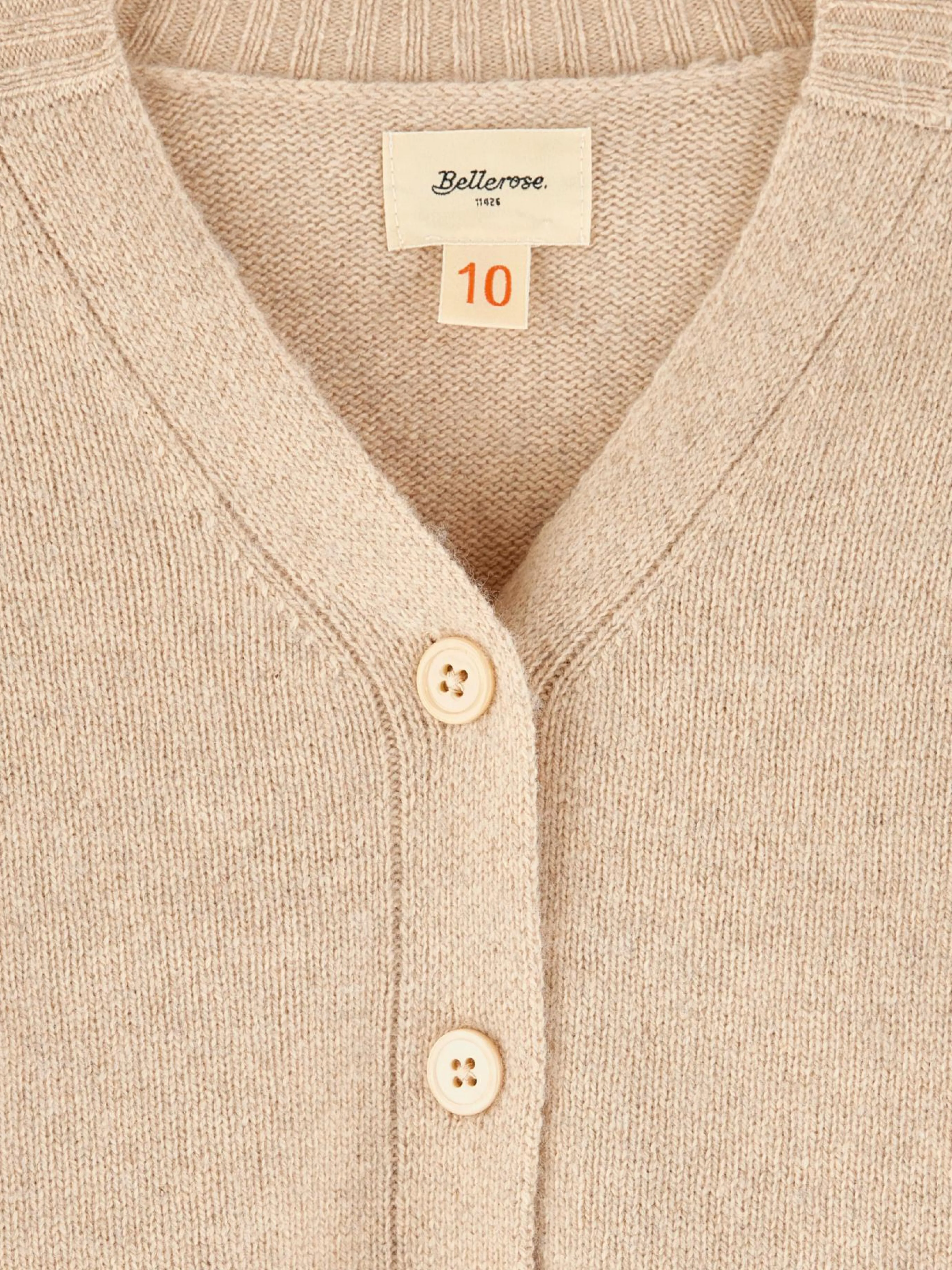 Beige, oversizede cardigan met V-hals van een superfijne merinowolmix.