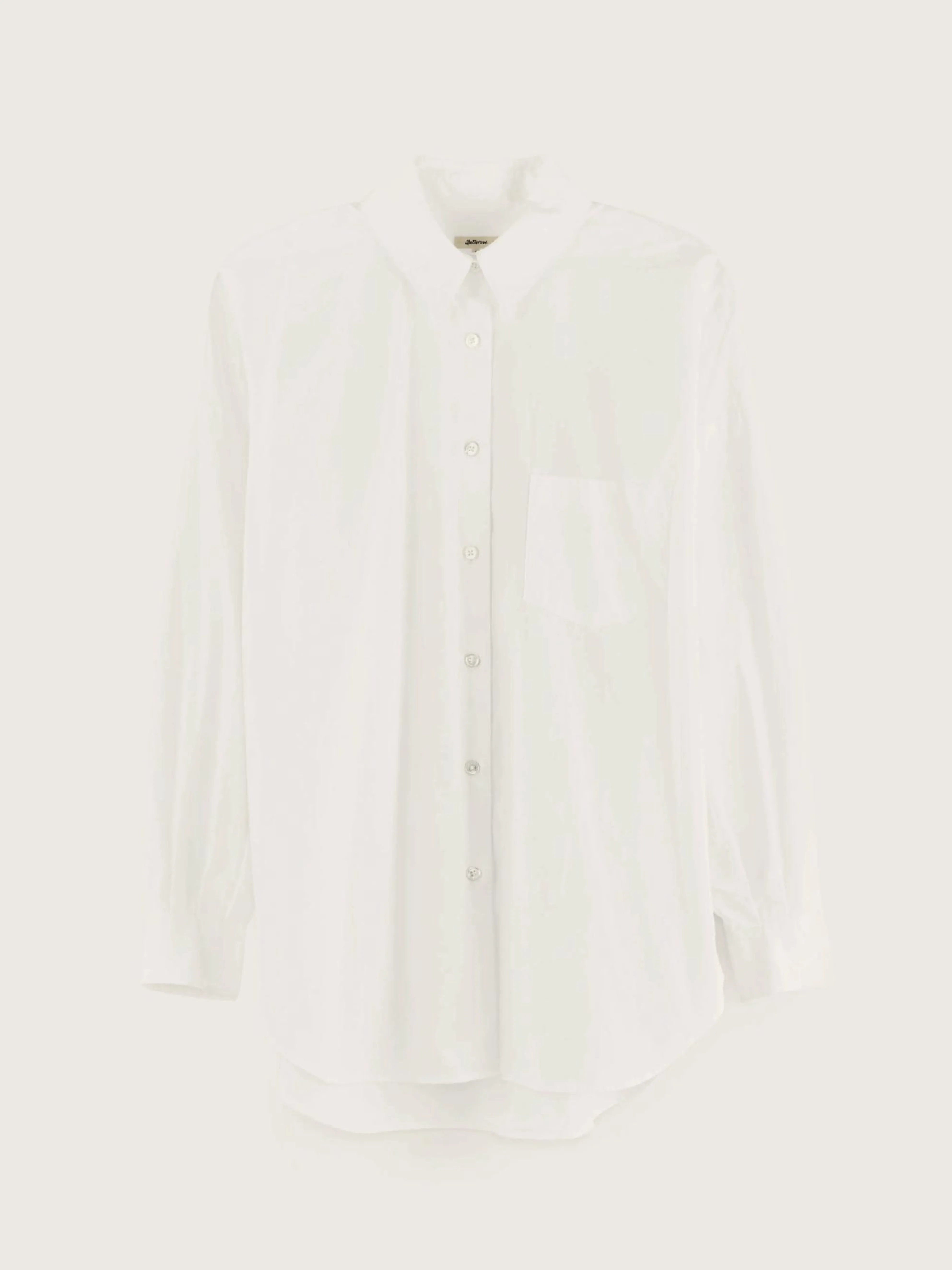 Fris wit oversized hemd met kraag, een lage schouderlijn en een borstzak, van katoenpopeline.