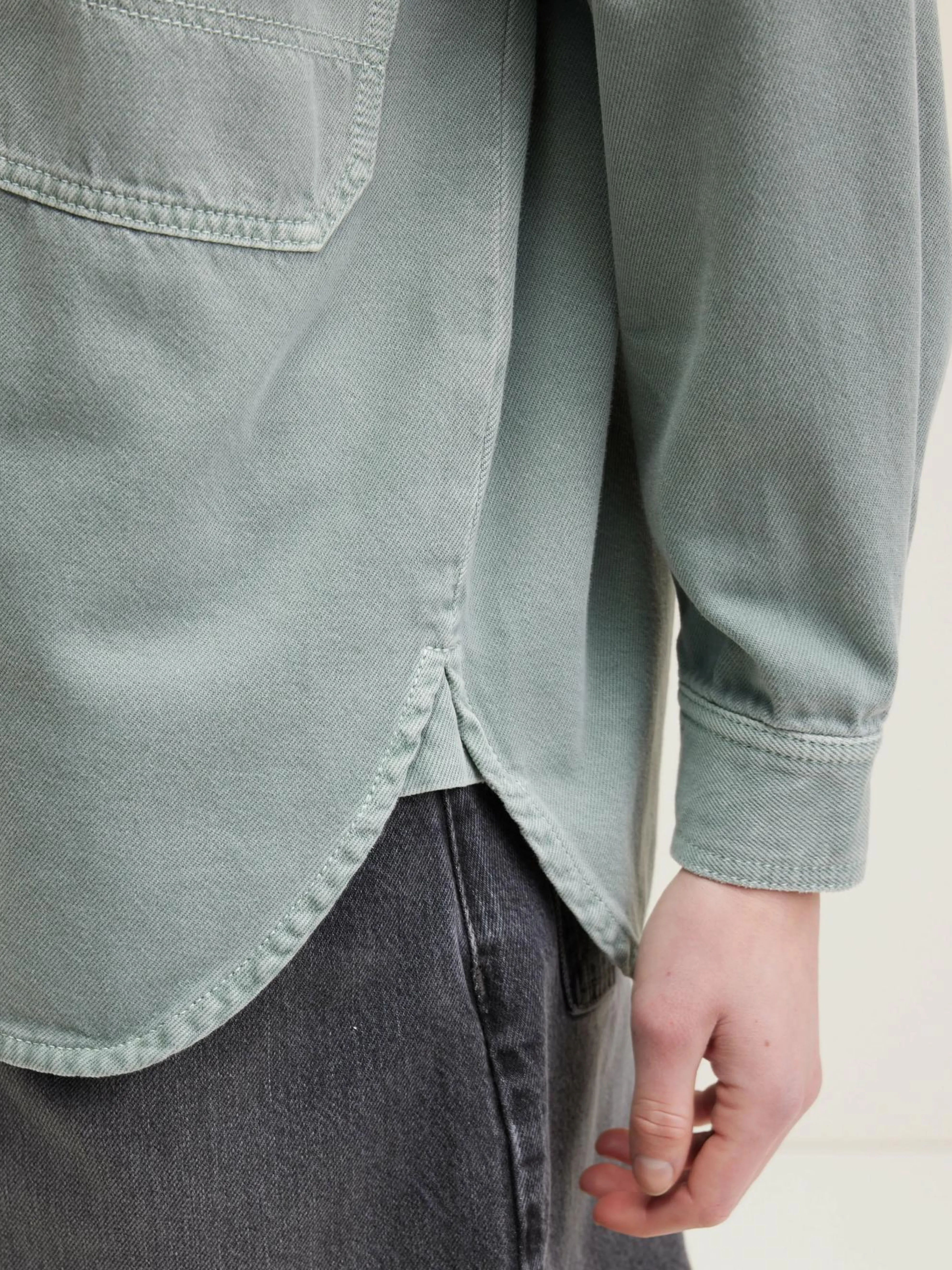 Aquagroen overshirt met workwear-look van katoenkeper.