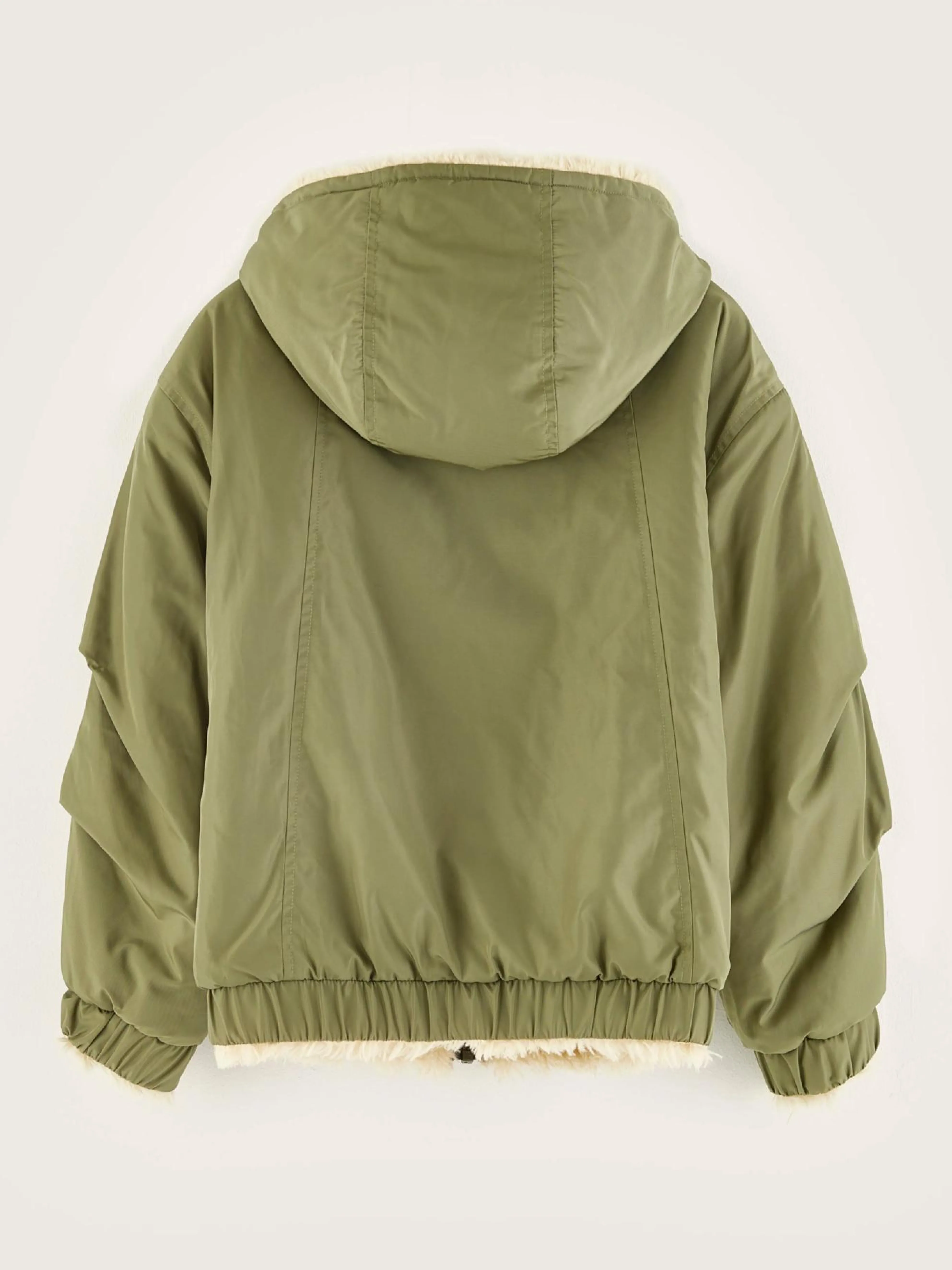Omkeerbare kakigroene jas in bomberstijl met voering van nepbont.