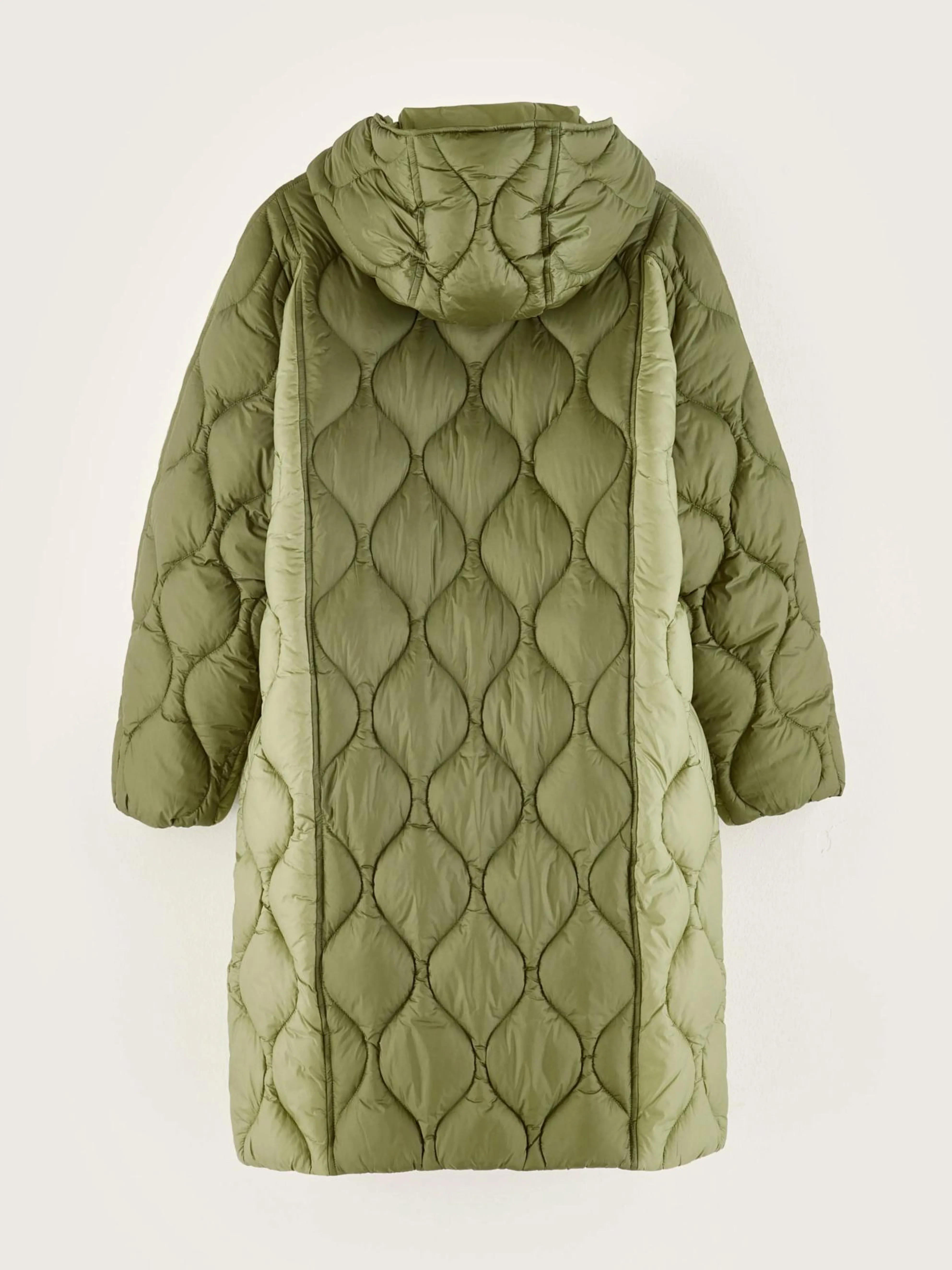 Tweekleurige, gewatteerde, kakigroene oversizede parka met capuchon.