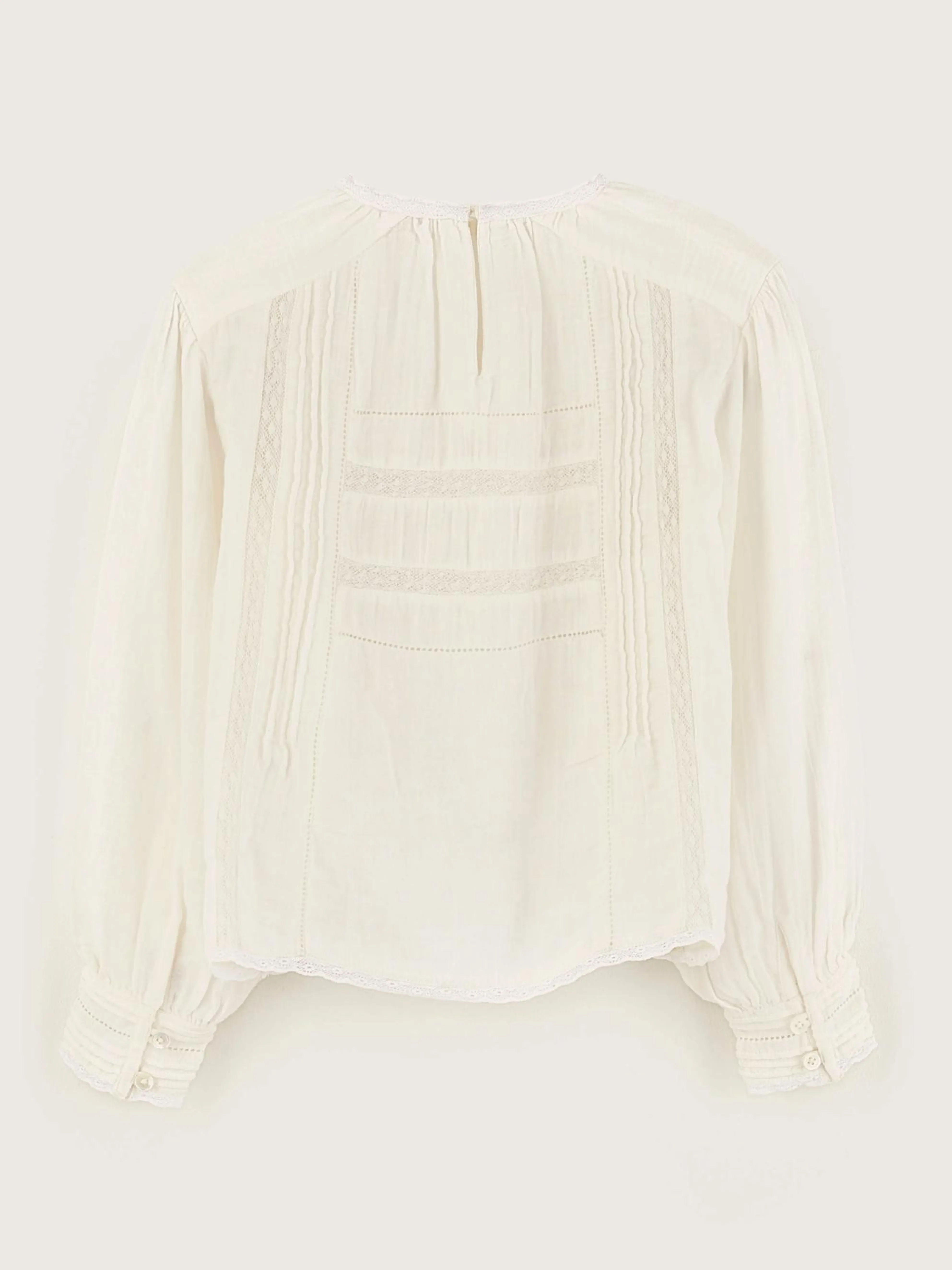 Romantische ecru blouse van katoen, met ingezette kanten details.