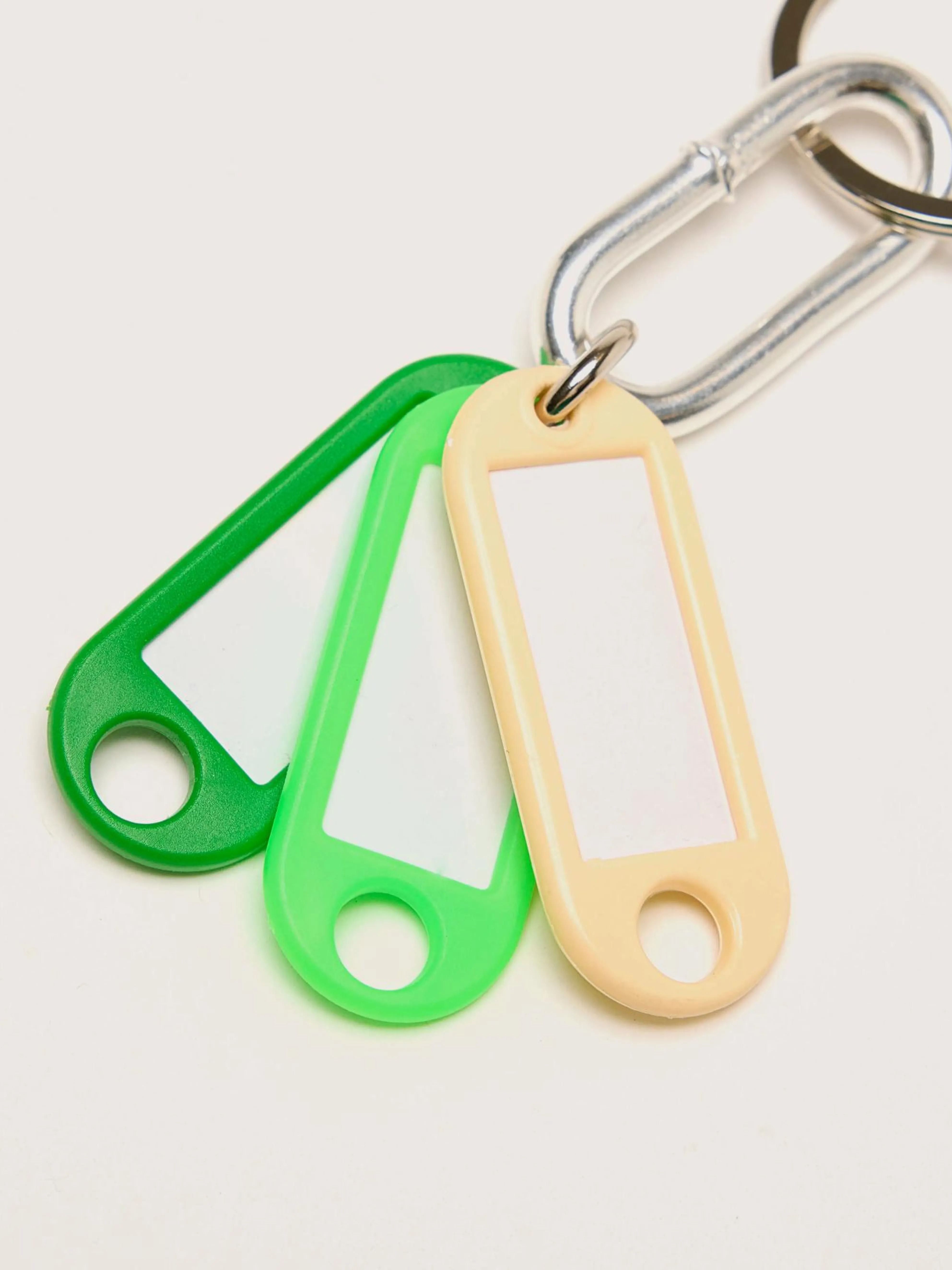 Keep your keys organized with the Ina Seifart Etiketten keyholder, featuring plastic tags with blank labels and a silver-plated ring.