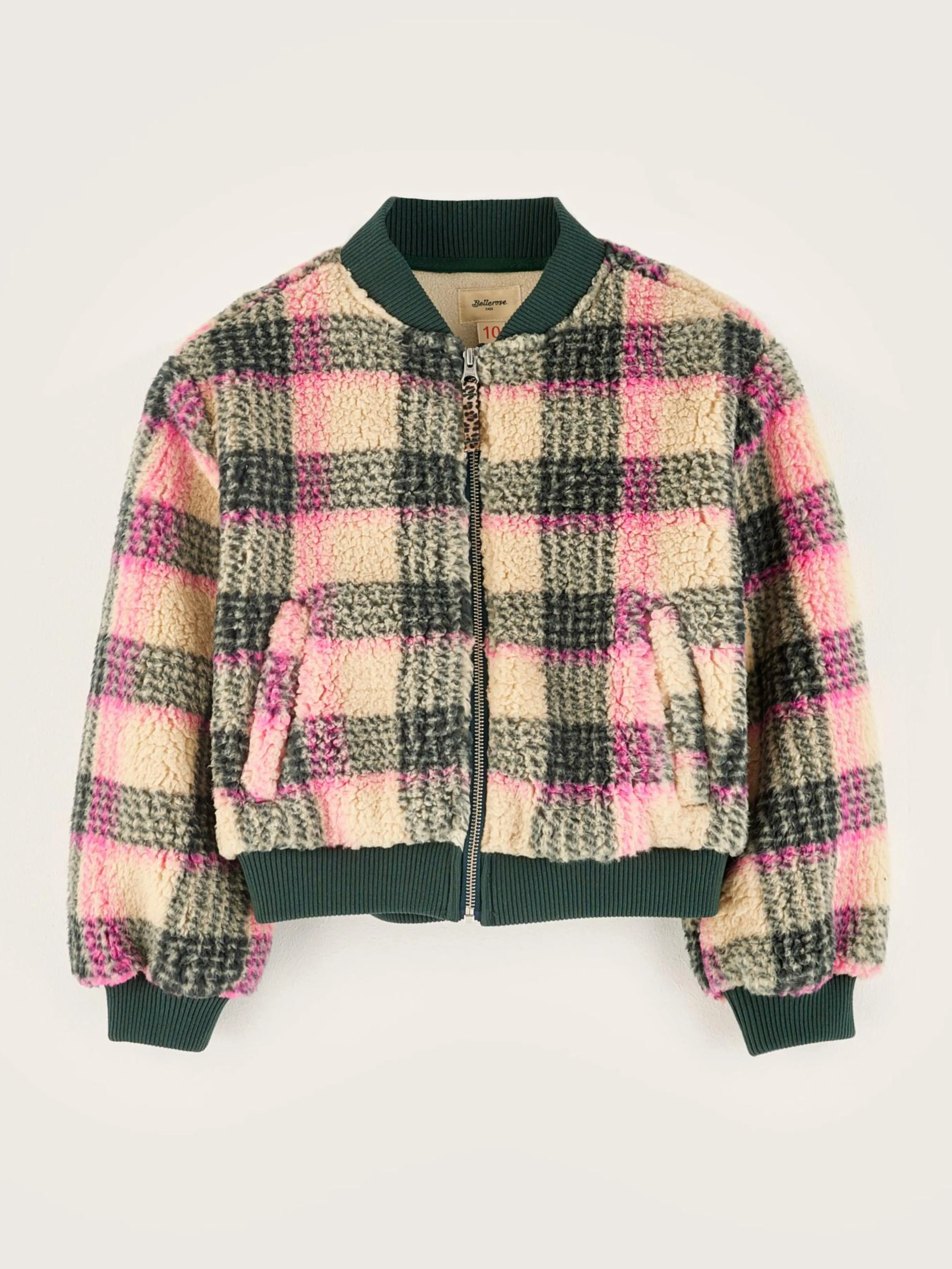 Comfortabel sweatshirt in bomberstijl, van geruite teddystof.