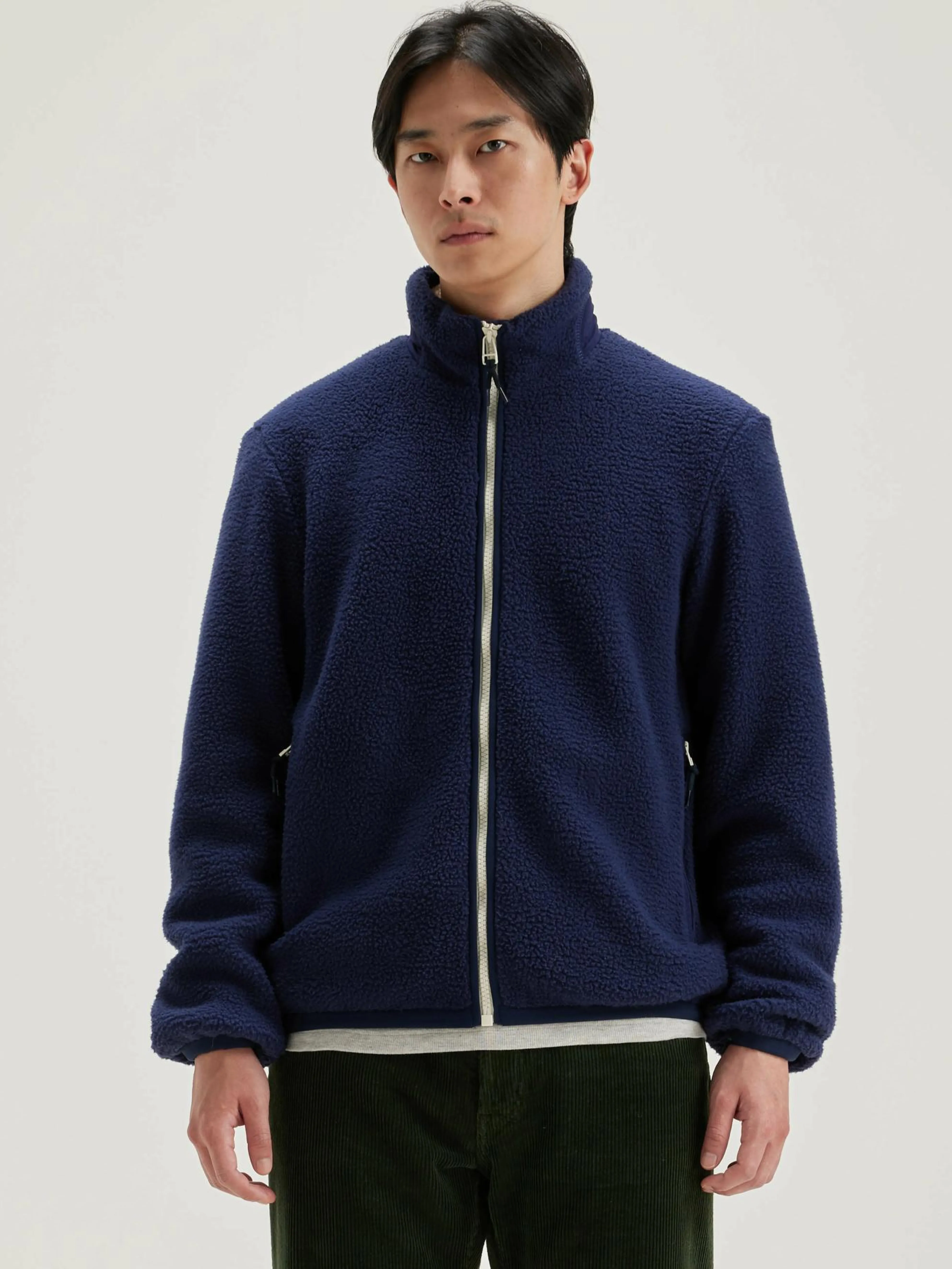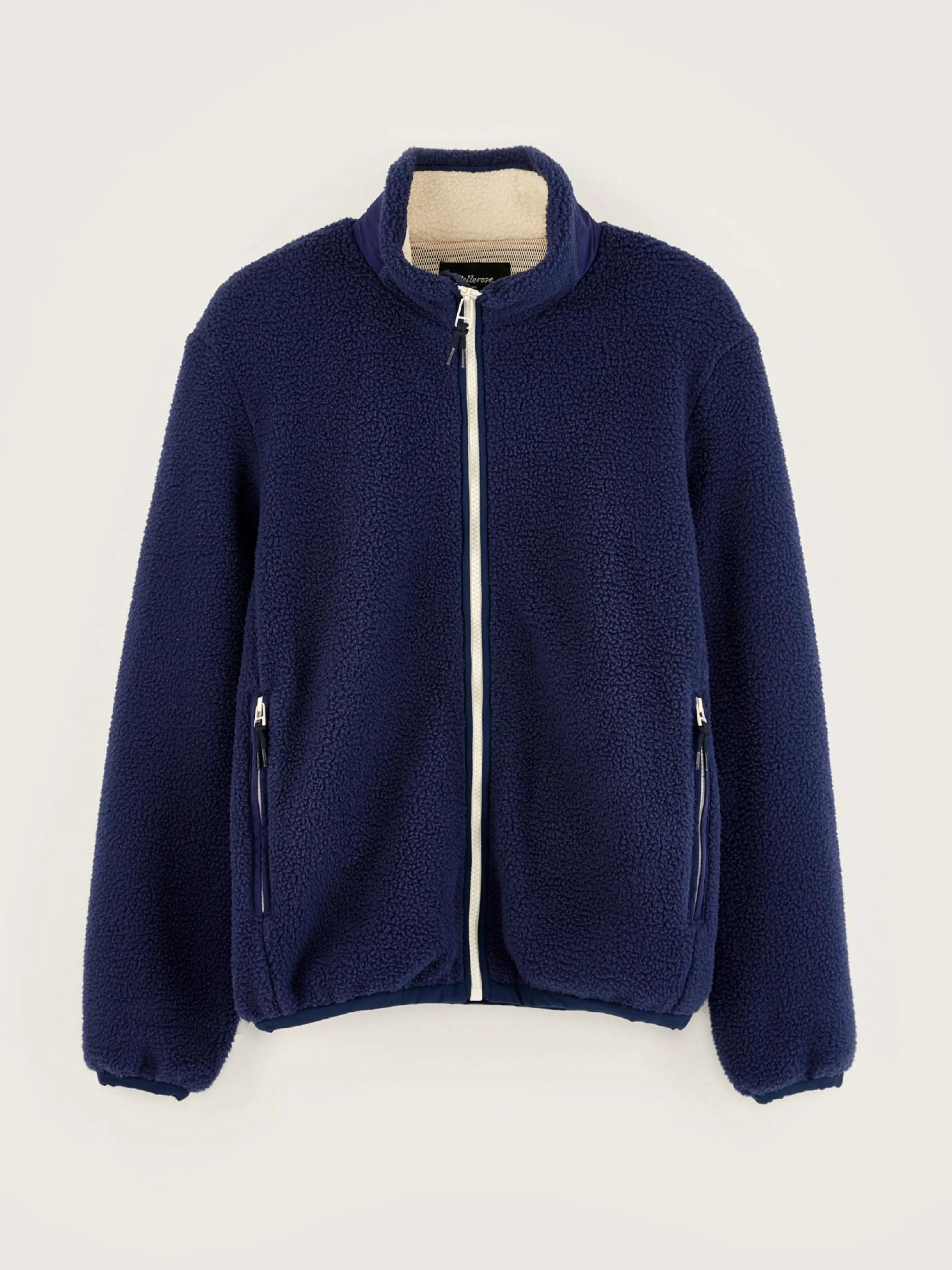Klassiek sweatshirt jas met rechte pasvorm, met ritssluiting vooraan, in inktblauwe teddy.