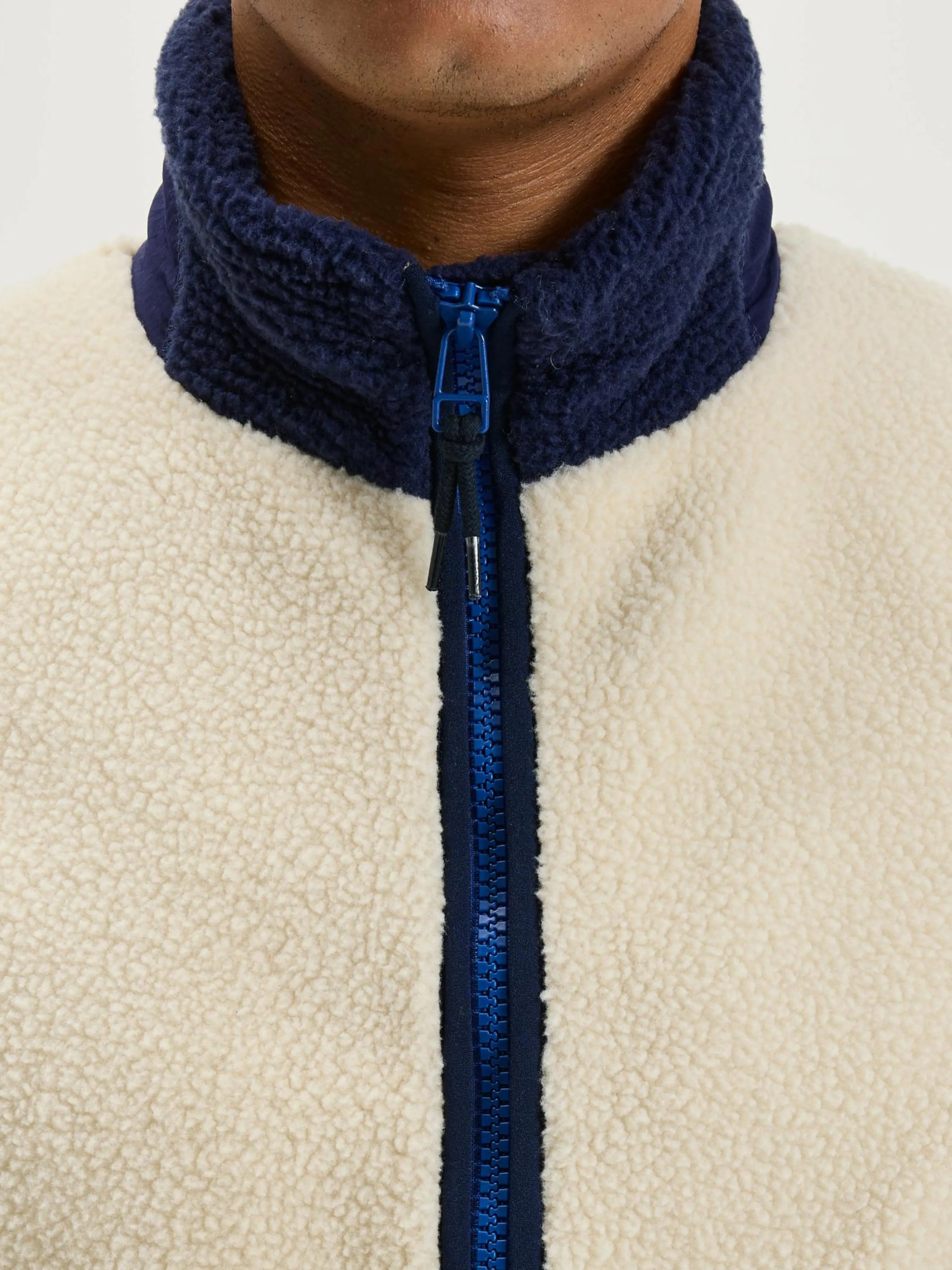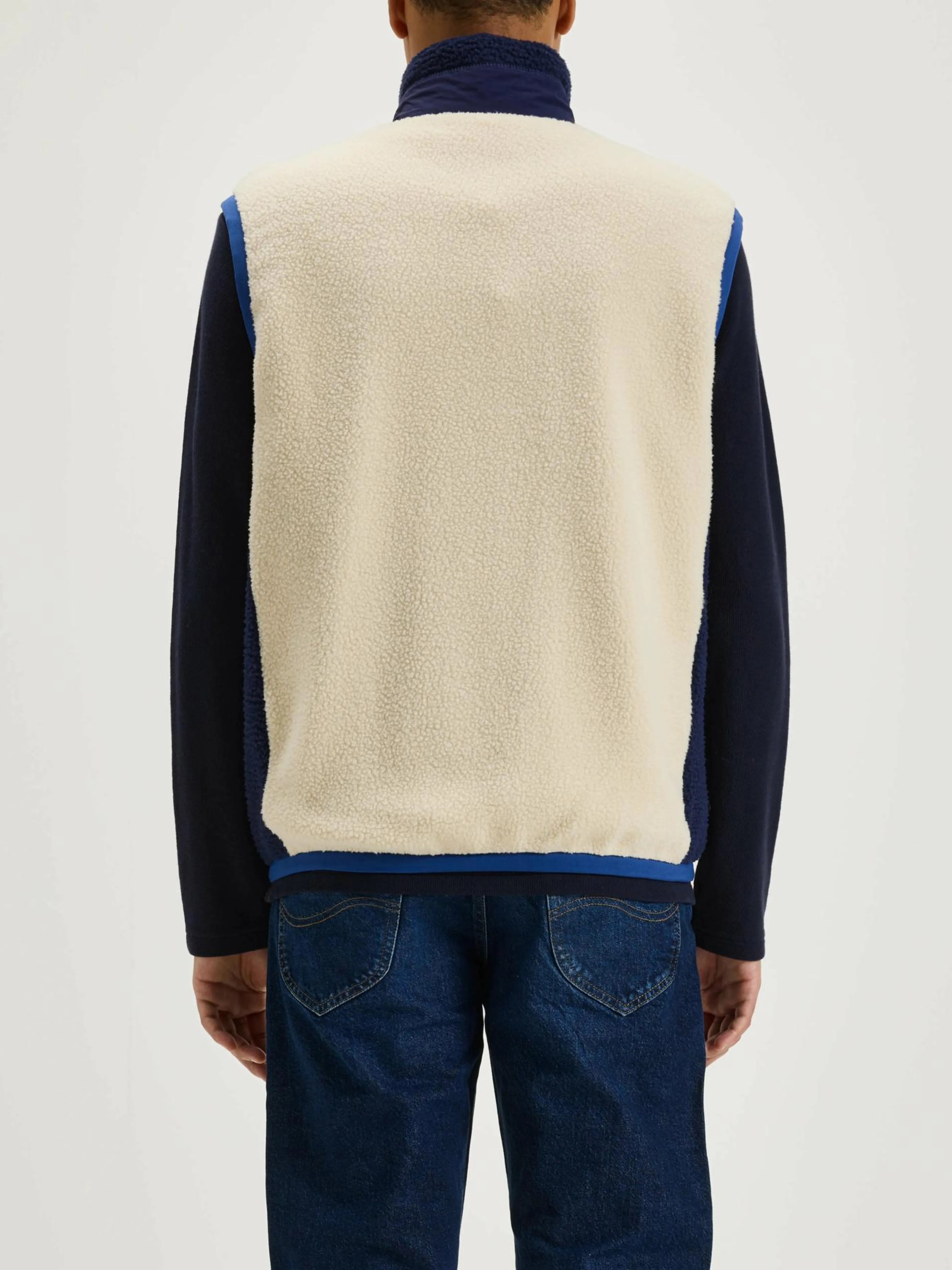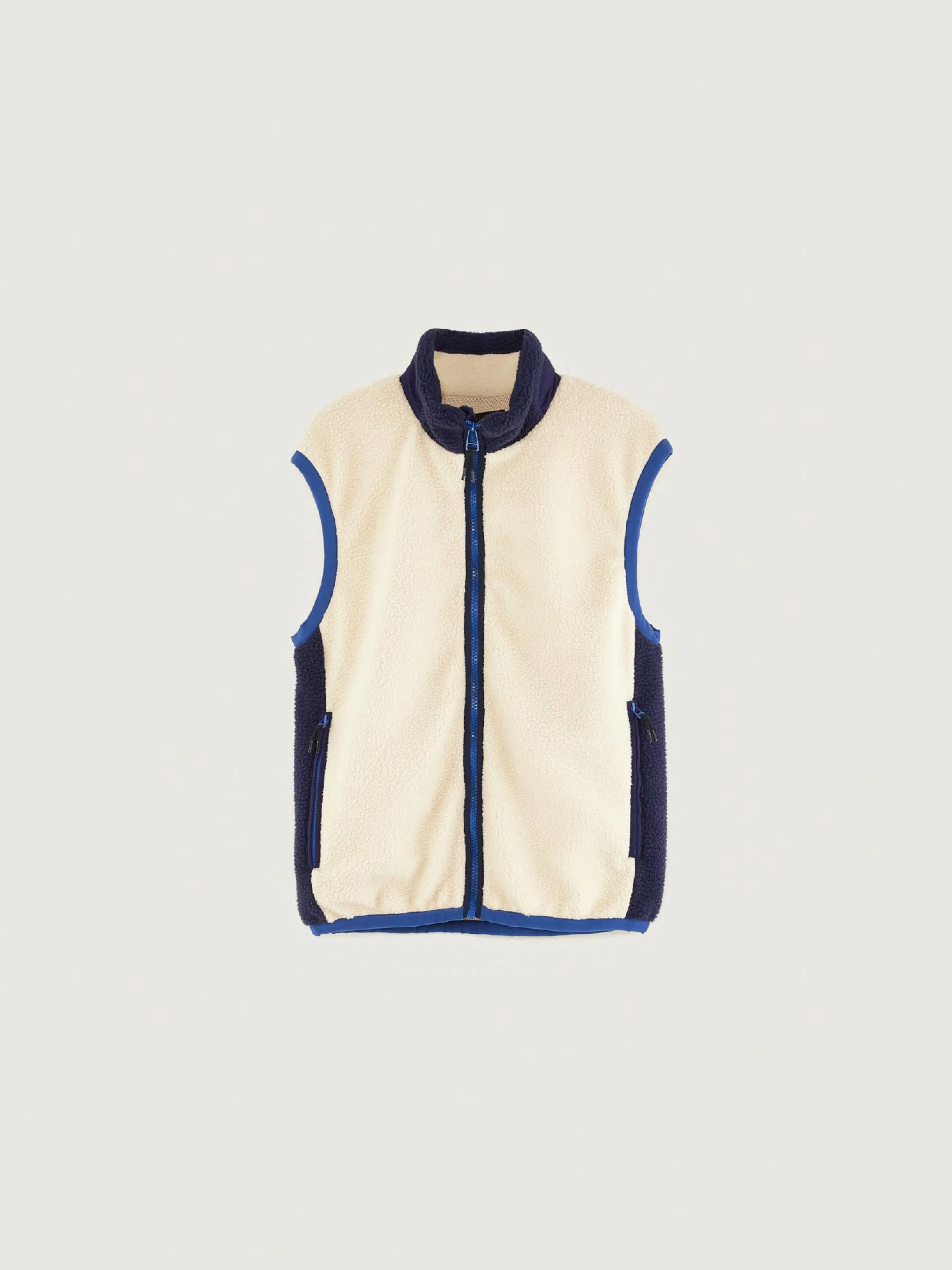 Mouwloos sweatshirt bodywarmer met rechte pasvorm en ritssluiting vooraan, van kalkwitte teddy.